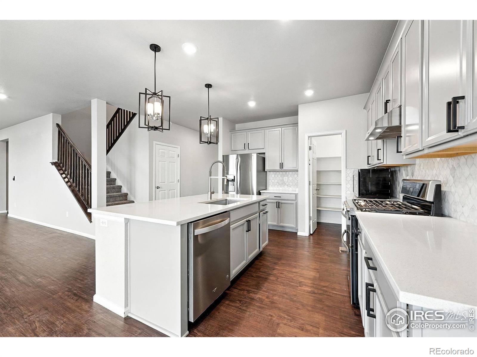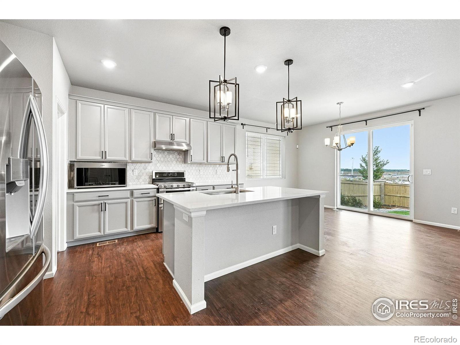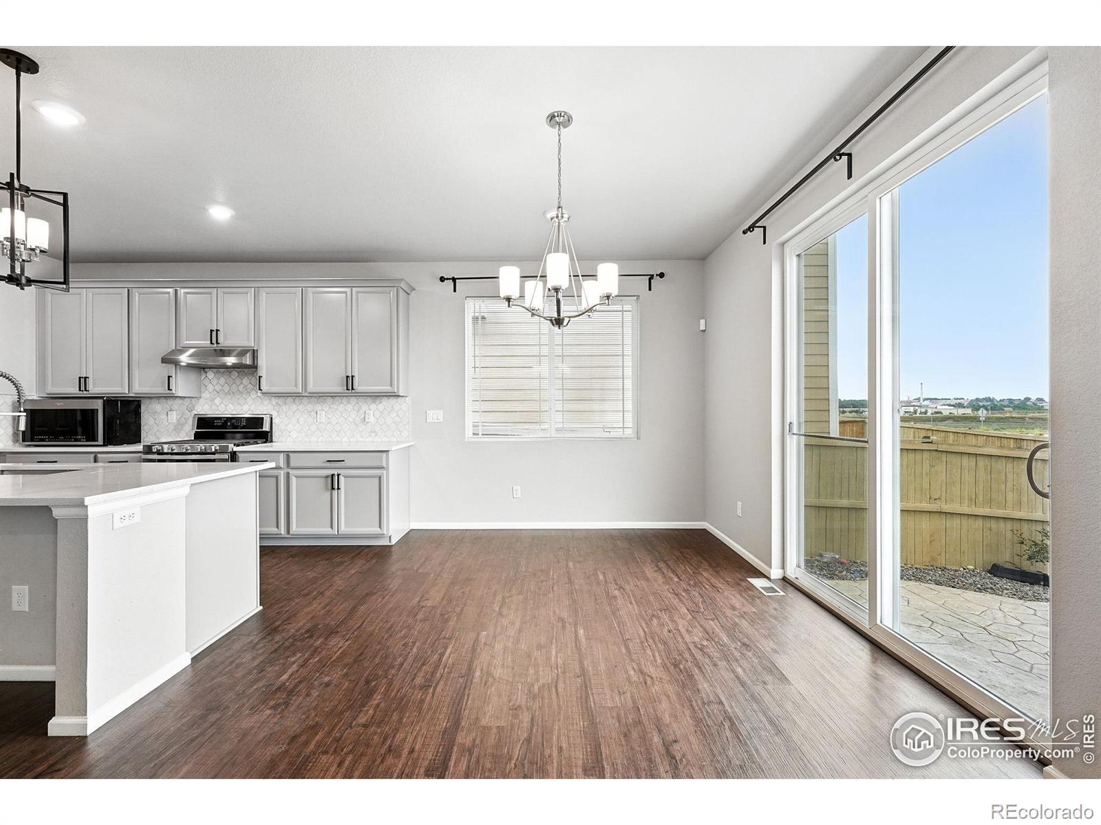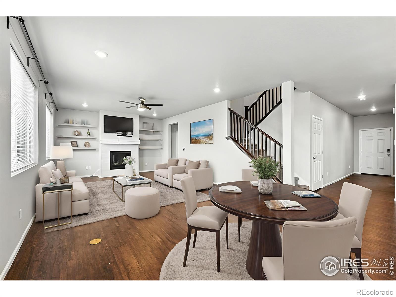 Sleek and efficient, this 2021 Harvest Junction home pairs modern design with smart energy features! Just minutes from restaurants, Costco, and the Longmont Rec Center, as well as quick access to 287, the location is ideal for convenience and access to surrounding areas. The home features soaring 9ft+ ceilings, LVP flooring, and an open layout. French doors off the entry open to a spacious office, offering an ideal work from home space. Sink into the living room and relax around the gas fireplace!. The bright kitchen is a highlight, offering a large island with seating, gas range, walk-in pantry, and access to the landscaped backyard. A mudroom off the two-car garage adds everyday functionality. Upstairs, the spacious primary suite includes a spa like bathroom with generous shower, double vanity and light-filled walk-in closet. Three additional bedrooms, a full bath and laundry, complete the level. The unfinished basement is ready for storage, fitness, or future finishing. Upgrades include a tankless water heater plus Meritage's energy-efficient design with UV-blocking windows, spray-foam insulation, and sealed ducts for comfort year-round. This home is not in a metro district - enjoy the benefit of a new home without the added cost!