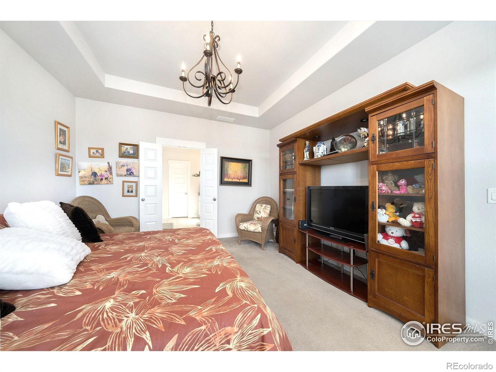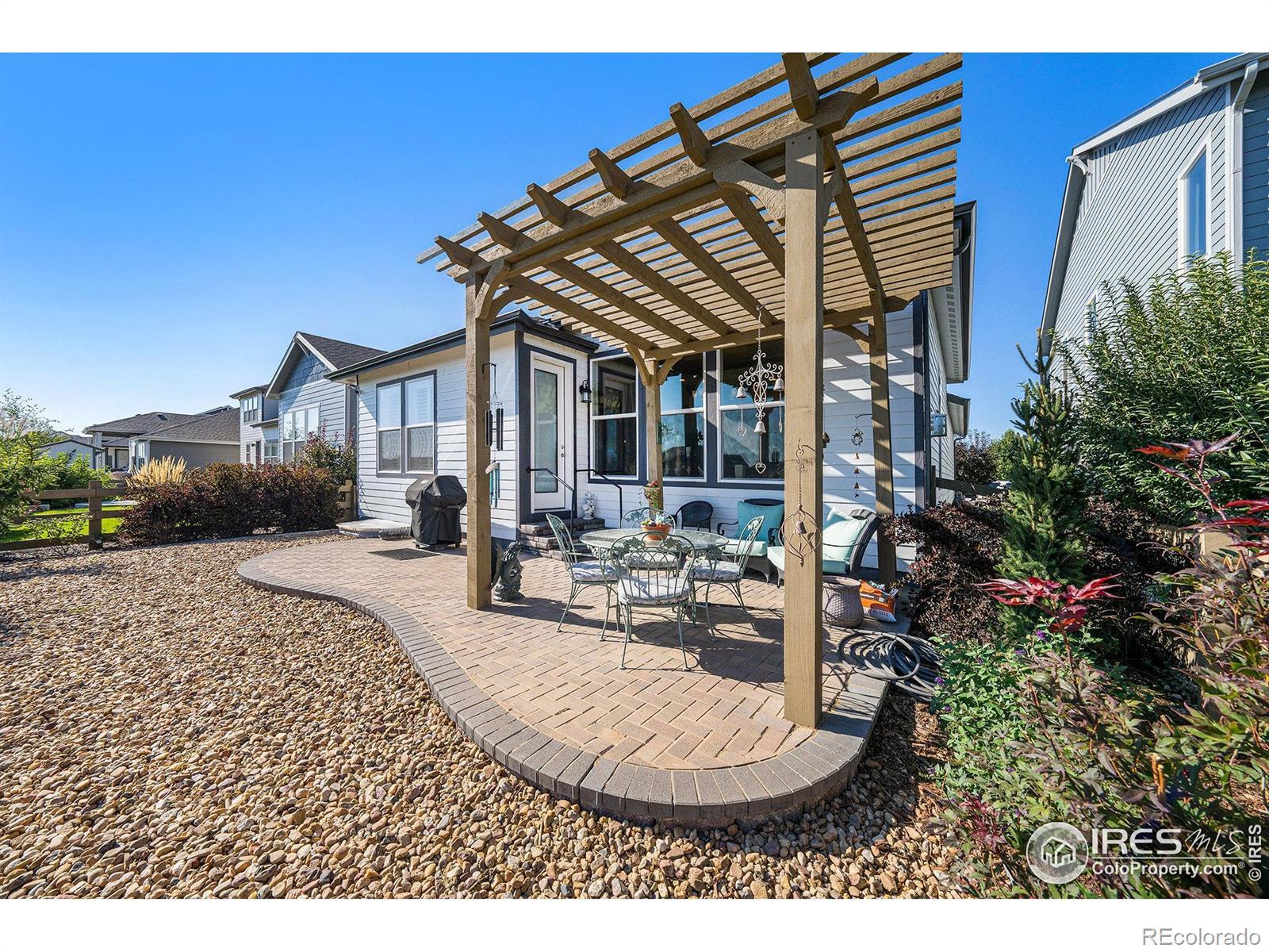 Look no further! Better than new! This bright & open ranch w/ high-end finishes will not disappoint! Main level living at it's best. Located west of Loveland near Mariana Butte Golf Course & a block away from beautiful Boedecker Reservoir. The open floor plan greets as you enter. Many upgraded finishes throughout the home. The kitchen is a chef's dream! Huge center island, Quartz counters, upgraded cabinets, pantry, stainless steel appliances, & gas range. The kitchen opens up to a comfortable living room w/ gas fireplace & tons of windows. The generous primary suite offers a luxury bath & large walk-in closet. The other bedroom has a full bath and is well-appointed to function as an office. Huge unfinished basement to expand into. All of the light fixtures have been upgraded, there is a passive radon sys, A/C, nice blinds throughout the home. The outdoor living space is awesome! Enjoy fall days on the back patio under the pretty pergola in the fully fenced backyard w/ beautiful landscaping backing to a greenbelt area & path. This home is better than new because the window coverings, landscaping, sprinkler system, & fencing are already there! No out of pocket expenses. There is 5 years left of the structural builder's warranty as well. Make this wonderful home yours today!