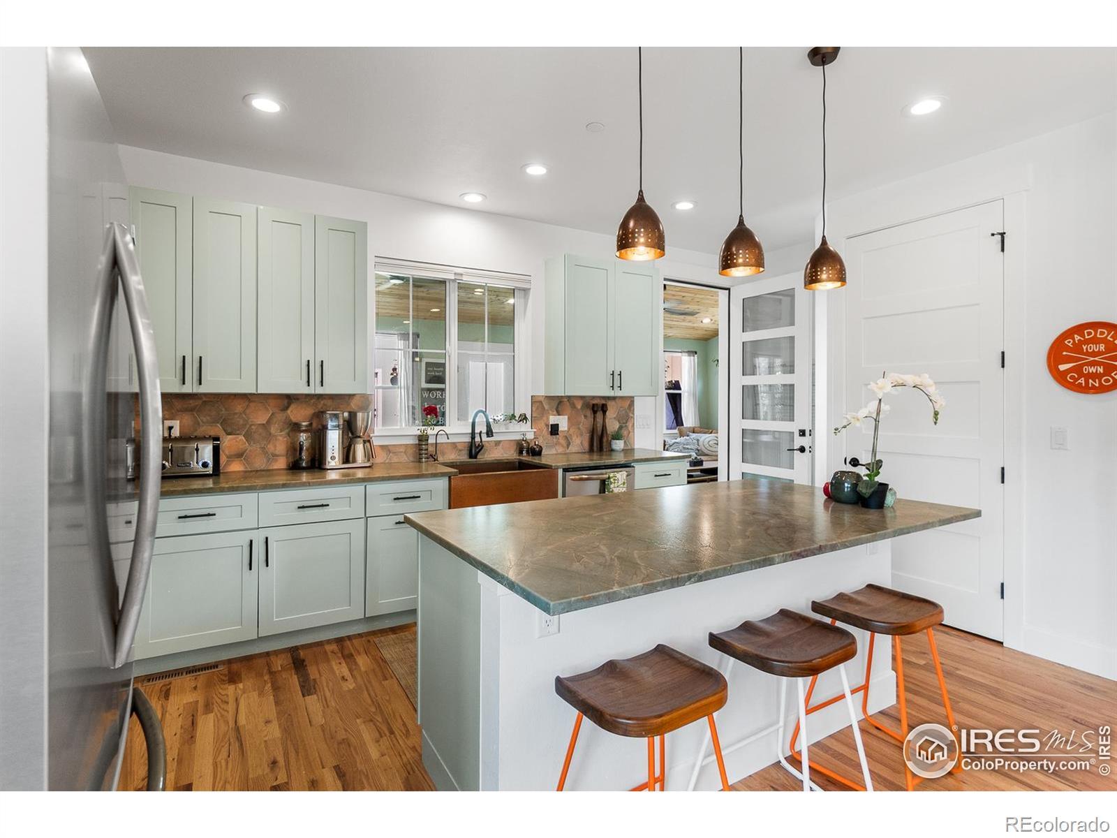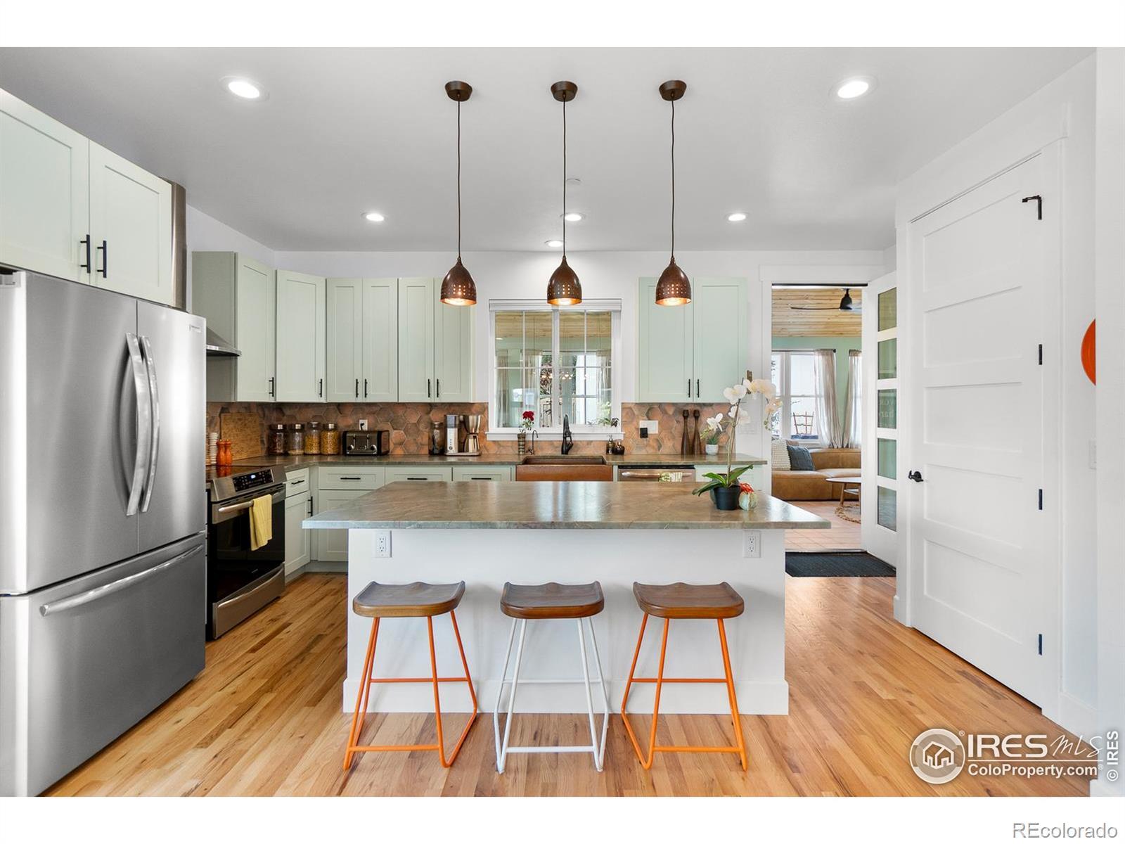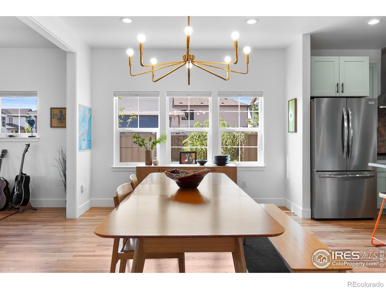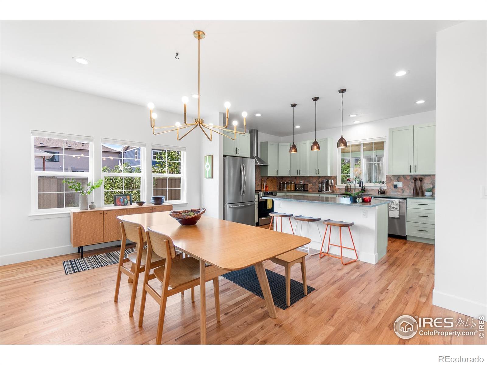 Living in Original Town Superior means enjoying the best of charm and convenience, and this 2022-built home captures both. Sitting on a sunny corner lot with wide southern exposure, it combines modern efficiency with character you won't find in new developments. Inside, you'll find fresh paint, natural stone countertops, white oak hardwood flooring, and Karastan wool carpet upstairs. The main level is designed for easy living with a bedroom, bath, and laundry all on the same floor. The open kitchen, dining, and living spaces flow seamlessly together and include a gas stove as the rooms centerpiece. This main area connects to a light-filled sunroom with a cedar plank ceiling and walls of windows, bringing the outdoors in. Upstairs, the primary suite features mountain views, an ensuite bath, and warm, earthy finishes. Two additional bedrooms and a full bath with double sinks complete the layout. The thoughtful details throughout are endless but include a copper sink, upgraded lighting, and high-quality fixtures throughout. This all-electric, green-energy home is built for savings and comfort with an induction range, heat pump HVAC, solar panels with Tesla inverter, fire sprinklers, and upgraded insulation. The EV-ready detached oversized two-car garage has ADU potential. Outdoors, you'll enjoy a flagstone patio, gated parking for an RV or boat, and colorful xeriscaping that changes with the seasons while remaining low-maintenance and fire-resistant. A covered front porch creates the perfect spot to connect with neighbors, and there's no HOA. All of this is just minutes from shopping, dining, and events in Downtown Superior, plus hiking, biking, and open space in Boulder County. A true Superior lifestyle with a modern, efficient edge.