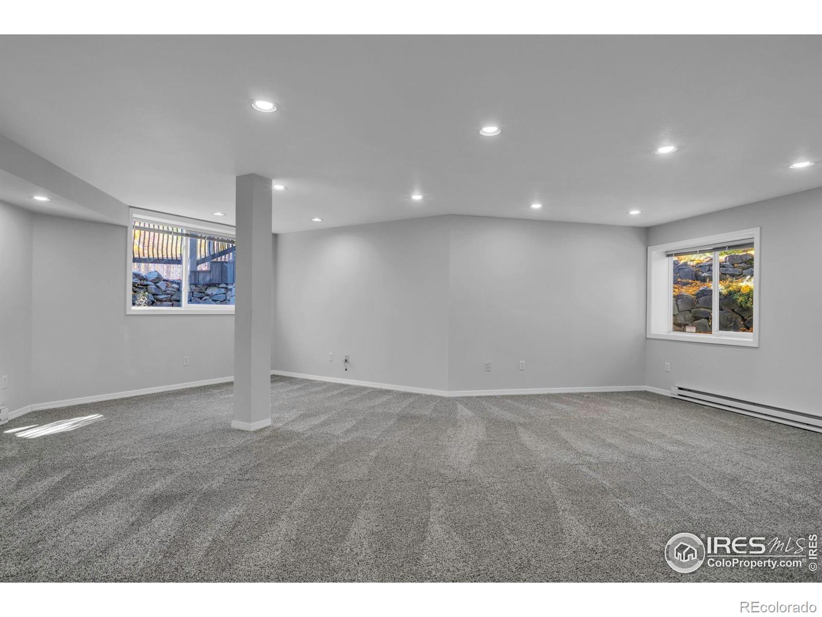 This pristine, spacious North Boulder two-story blends classic design with modern updates, featuring a brand-new kitchen with high-end appliances, a custom pantry, and an eat-in area that connects seamlessly to the sunken living room and formal dining room. Beautiful wood floors, custom finishes, a formal living area and a bright private office complete this functional main level layout. Upstairs are four generous bedrooms and three remodeled baths, including a primary suite with a designer spa-like five-piece bath, and a large walk-in closet. The finished basement is filled with natural light from egress windows and offers its own bedroom area, full bath, and flexible living space. Additional highlights include a three-car garage with epoxy floors and beautiful windows and built in storage, newer composite decking and fencing, and a large fenced yard on a desirable corner lot with mature trees. Thoughtful landscaping and custom deck railings complete this residence that captures the essence of North Boulder living.