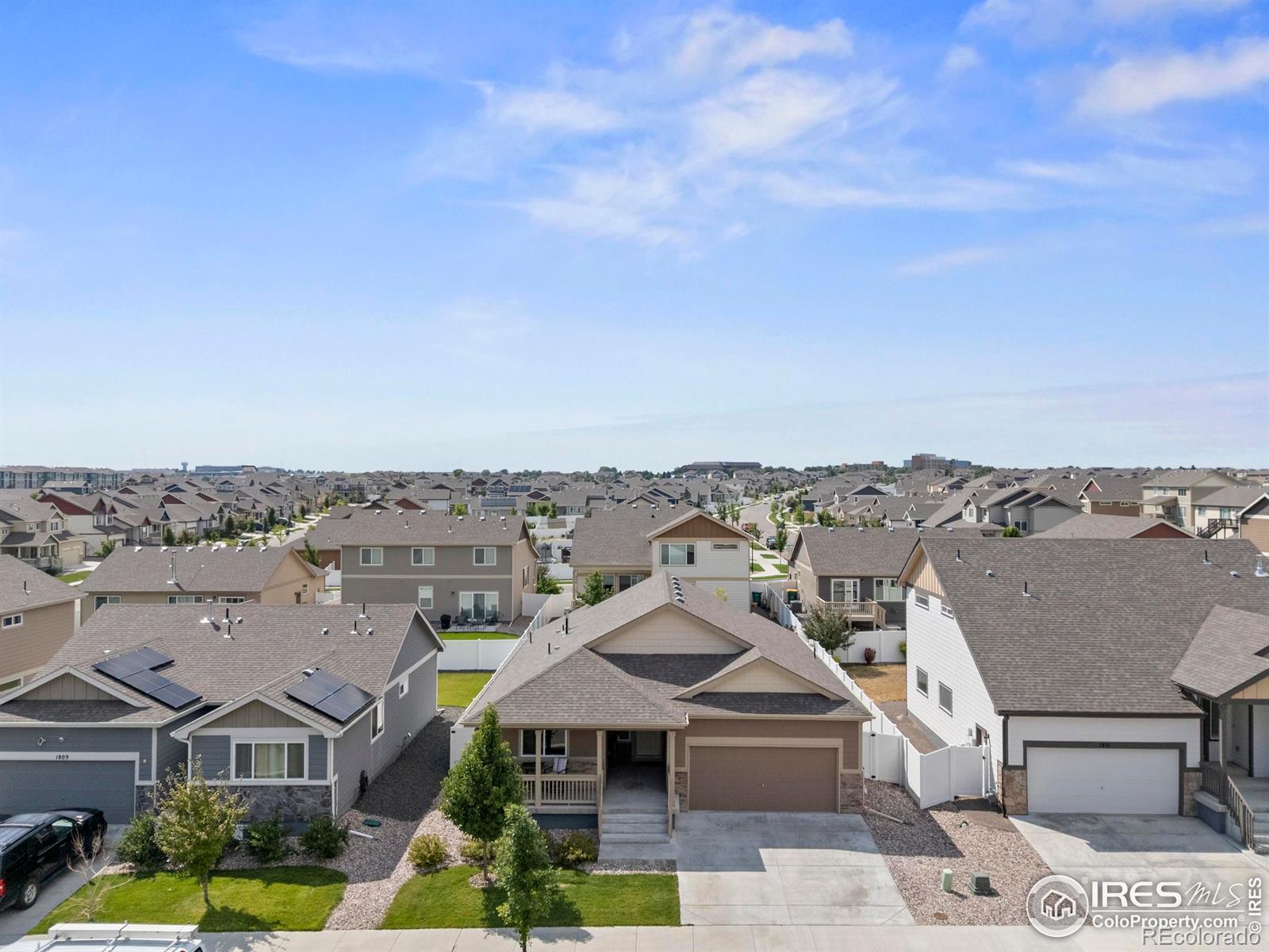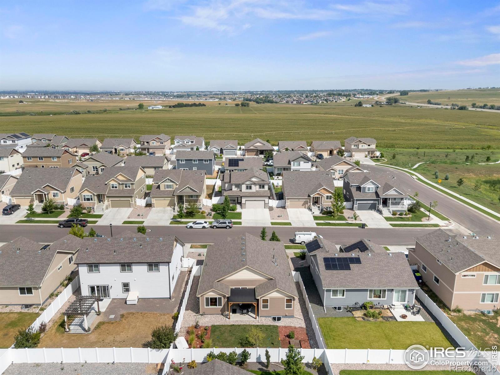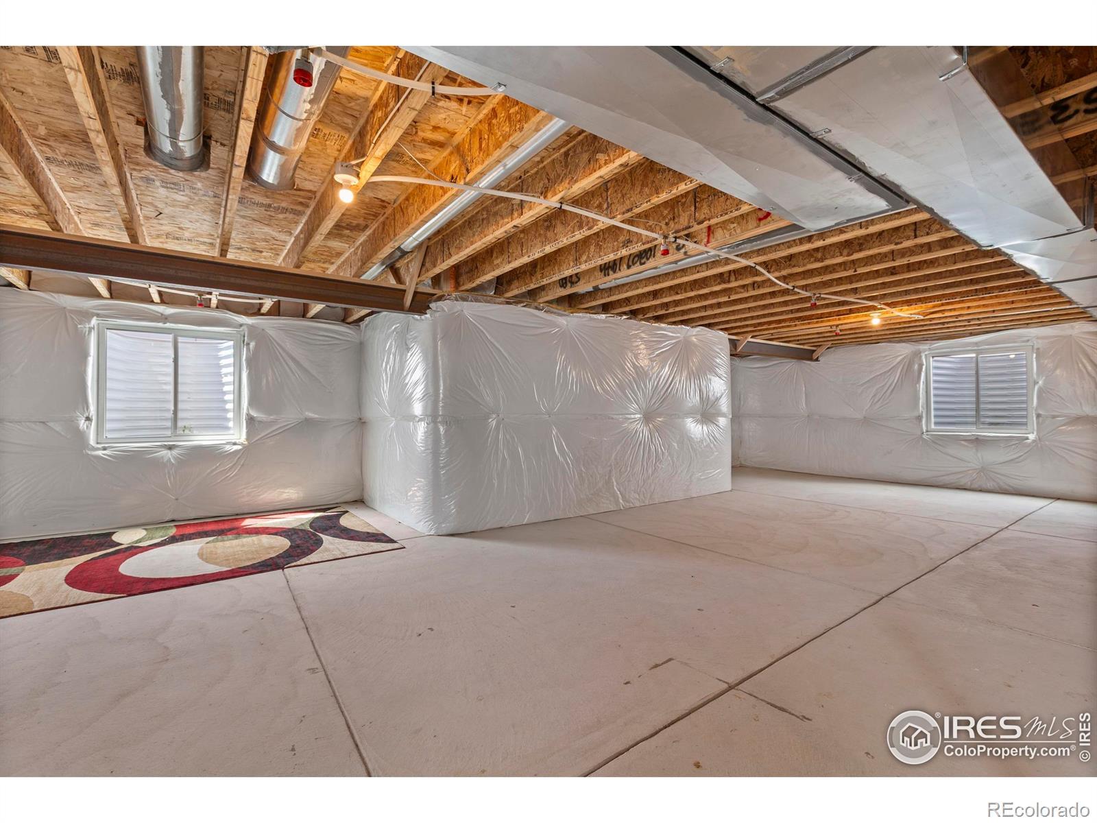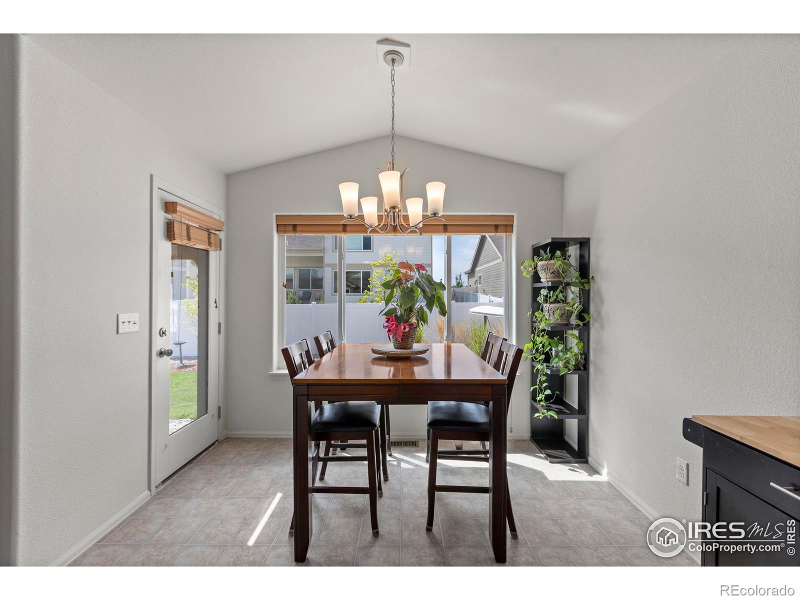This ranch brings together open indoor living and outdoor space designed to be enjoyed. The main level offers 10-foot ceilings that make the kitchen, dining, and living areas feel even more spacious and connected. Three bedrooms and two full baths, including a primary suite with walk-in closet, keep daily life convenient. A full unfinished basement adds another 1,465 sq. ft. to use for storage now or finish later to suit your needs. A covered front patio welcomes you to the home, giving shaded space to relax. Out back, the fully fenced yard extends your living space with a custom pergola over an expanded patio, neatly landscaped with planters and a raised garden beds. It's a comfortable setting for both quiet evenings and gatherings. The neighborhood adds to the appeal with nearby Promontory Park's walking trails, ponds, and recreation, plus quick access to Windsor and Greeley for shopping, dining, and commuting.