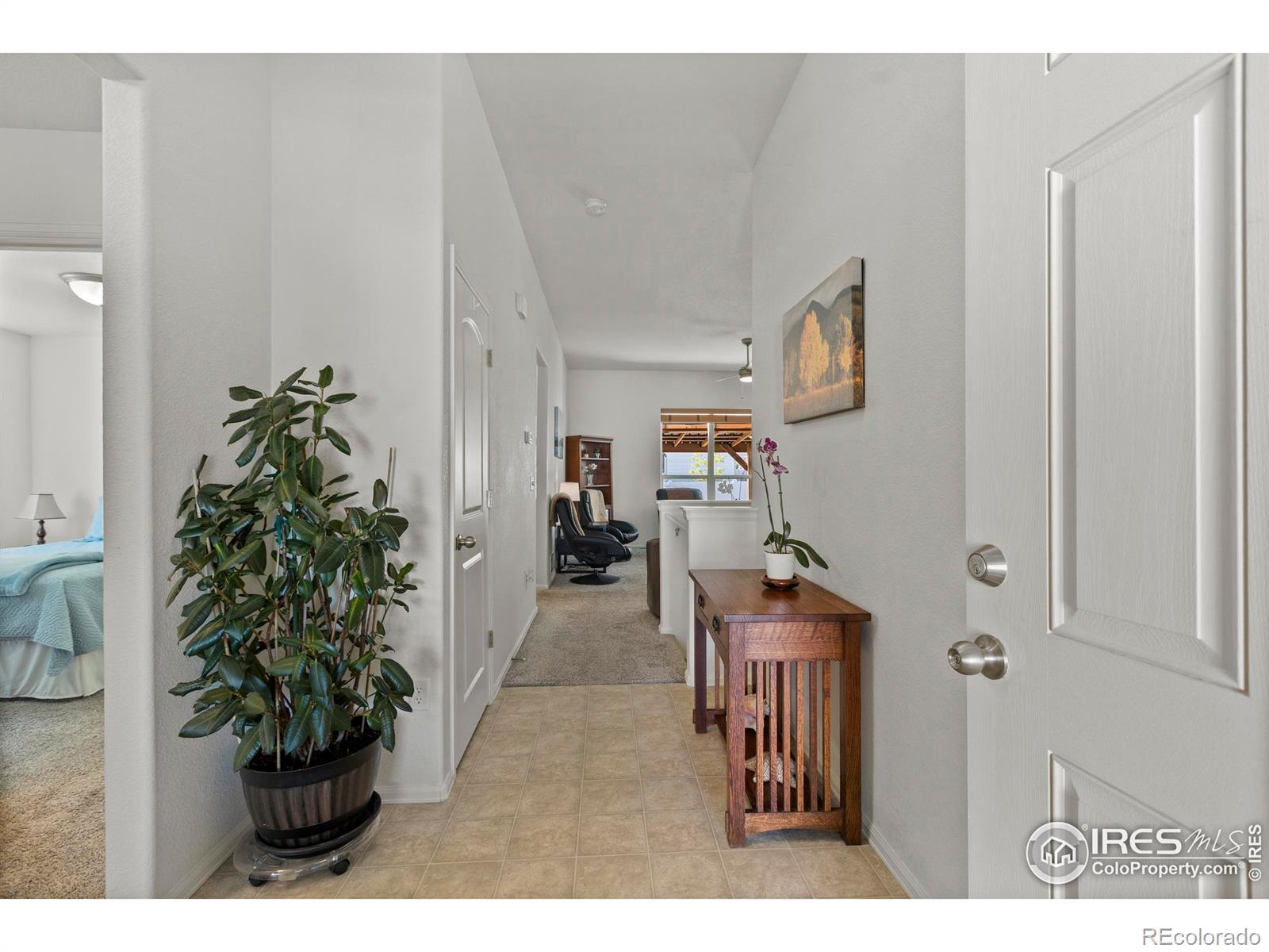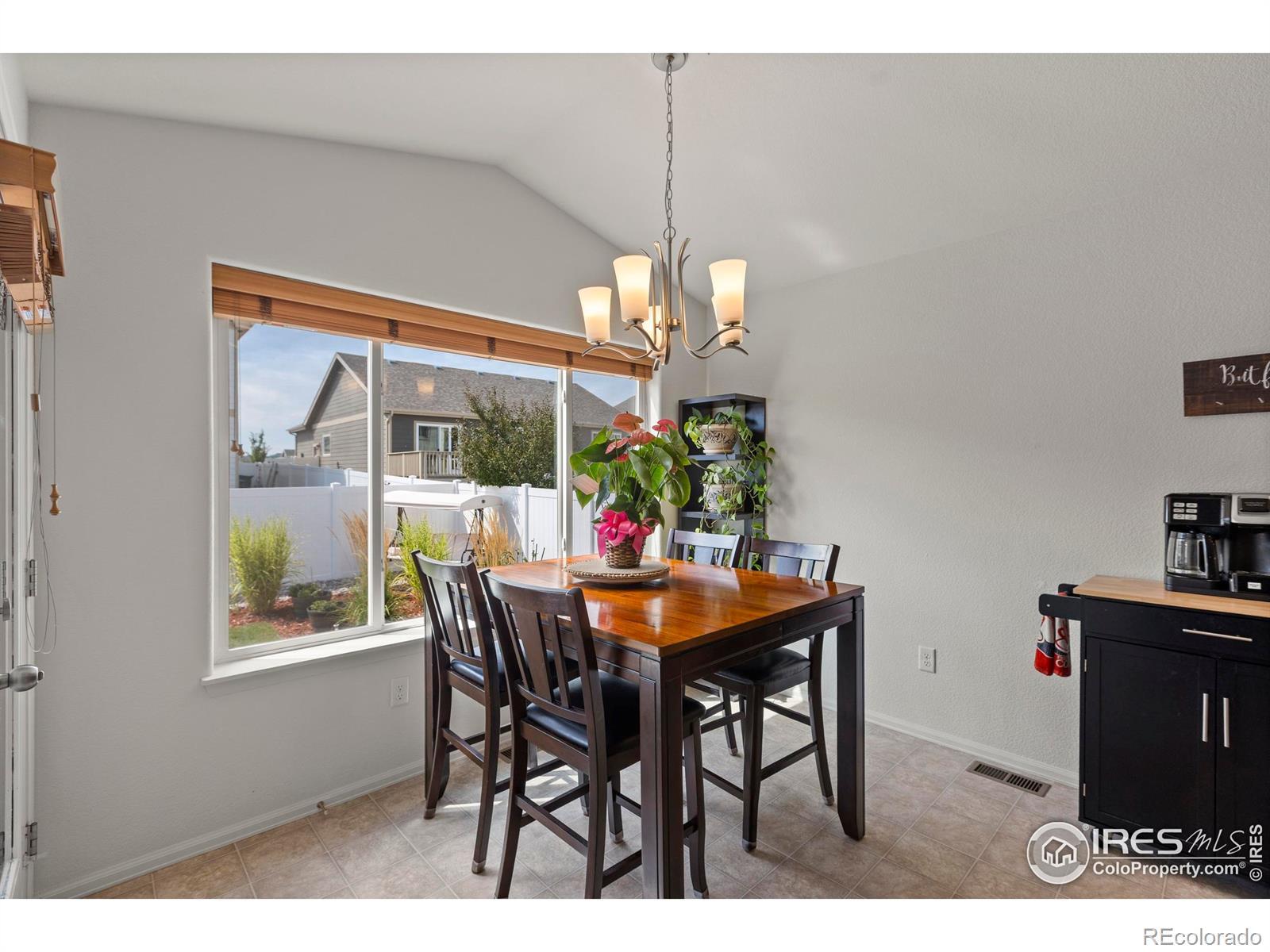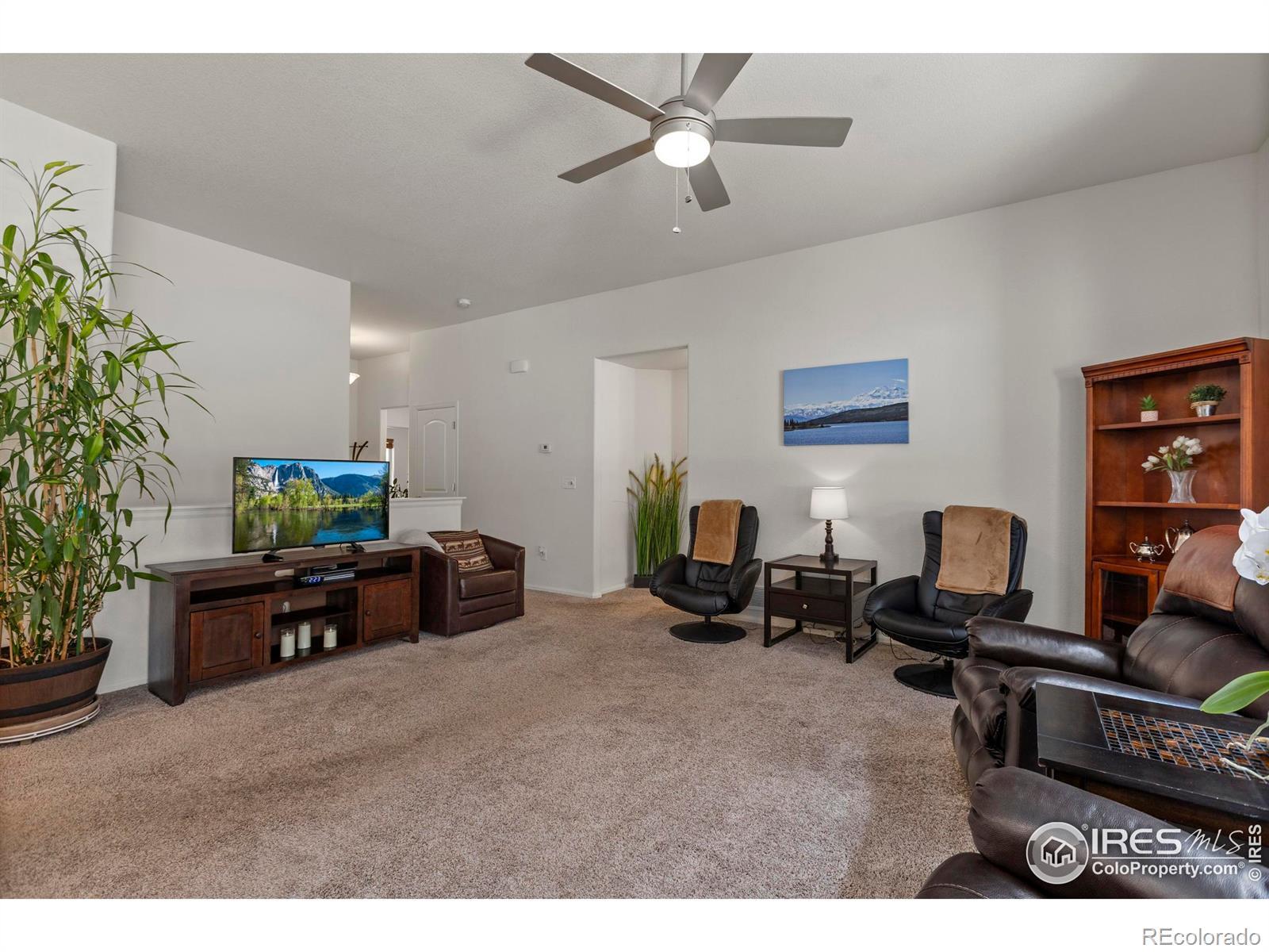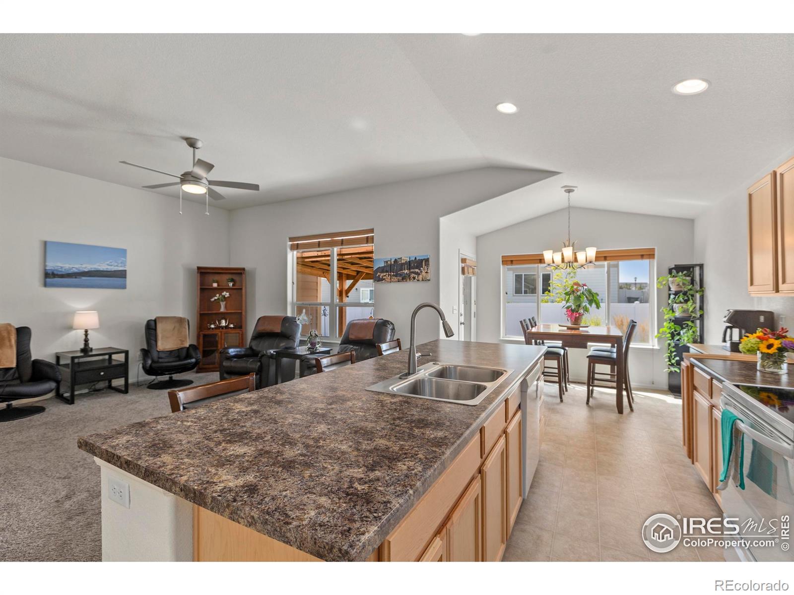 This ranch brings together open indoor living and outdoor space designed to be enjoyed. The main level offers 10-foot ceilings that make the kitchen, dining, and living areas feel even more spacious and connected. Three bedrooms and two full baths, including a primary suite with walk-in closet, keep daily life convenient. A full unfinished basement adds another 1,465 sq. ft. to use for storage now or finish later to suit your needs. A covered front patio welcomes you to the home, giving shaded space to relax. Out back, the fully fenced yard extends your living space with a custom pergola over an expanded patio, neatly landscaped with planters and a raised garden beds. It's a comfortable setting for both quiet evenings and gatherings. The neighborhood adds to the appeal with nearby Promontory Park's walking trails, ponds, and recreation, plus quick access to Windsor and Greeley for shopping, dining, and commuting.