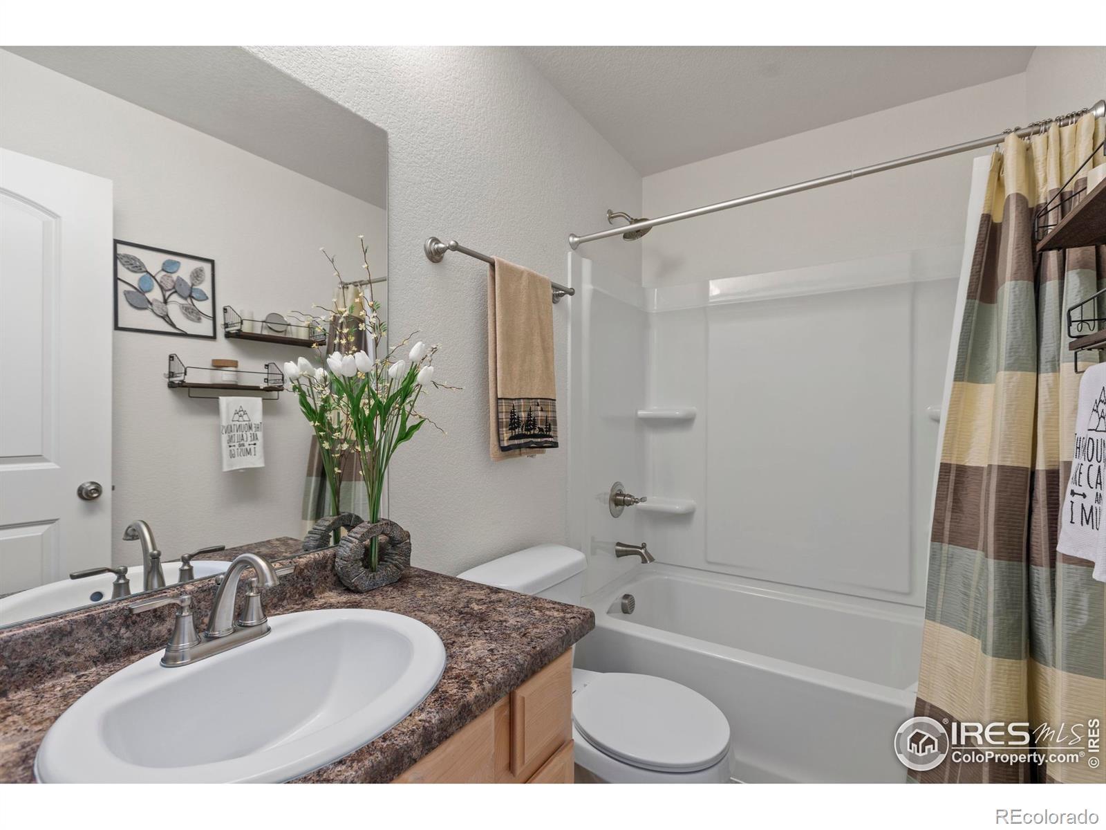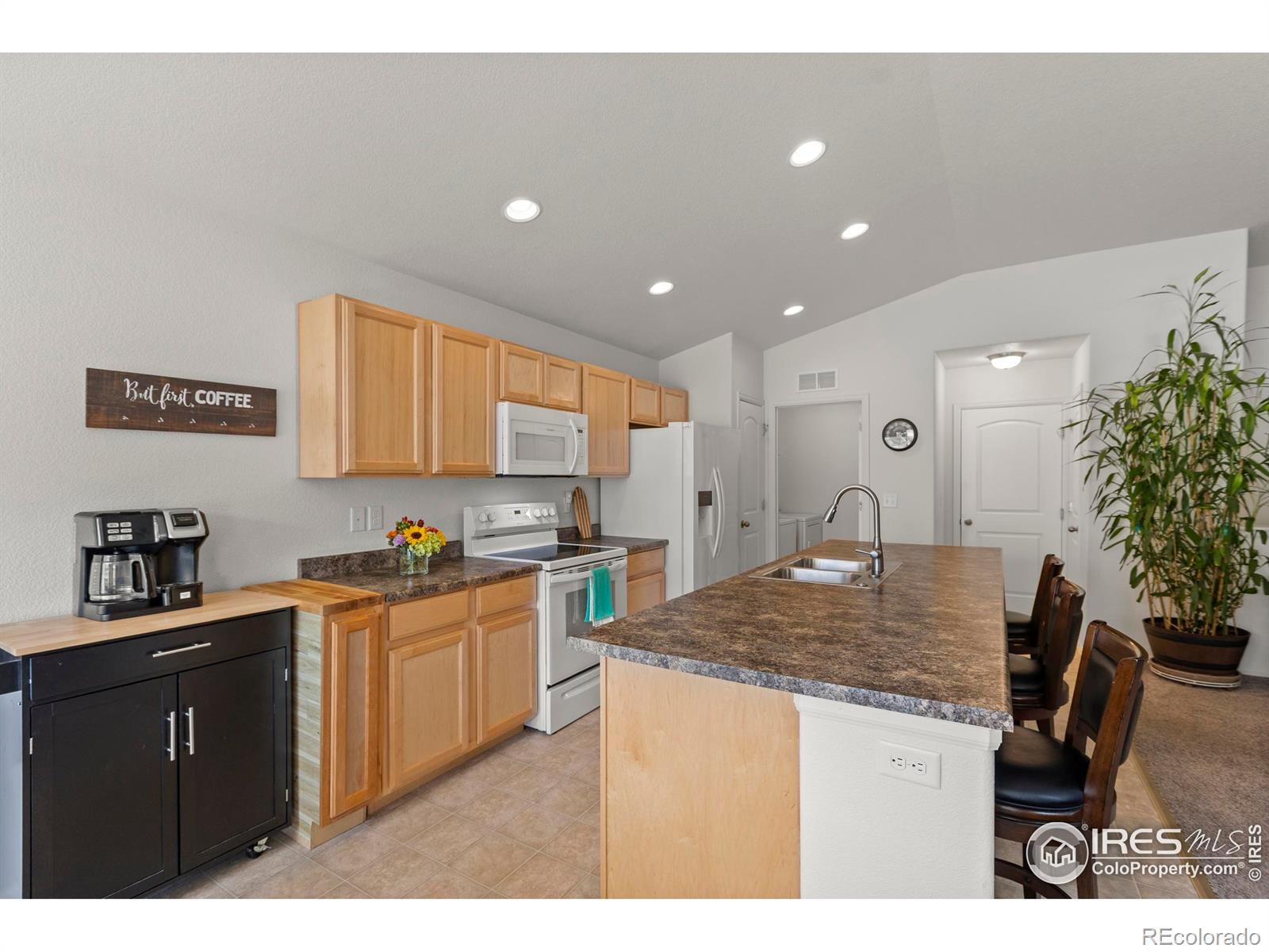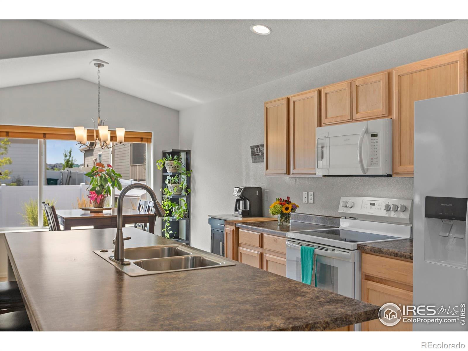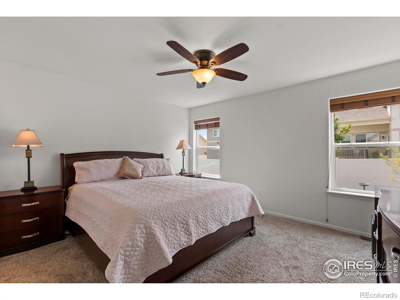 This ranch brings together open indoor living and outdoor space designed to be enjoyed. The main level offers 10-foot ceilings that make the kitchen, dining, and living areas feel even more spacious and connected. Three bedrooms and two full baths, including a primary suite with walk-in closet, keep daily life convenient. A full unfinished basement adds another 1,465 sq. ft. to use for storage now or finish later to suit your needs. A covered front patio welcomes you to the home, giving shaded space to relax. Out back, the fully fenced yard extends your living space with a custom pergola over an expanded patio, neatly landscaped with planters and a raised garden beds. It's a comfortable setting for both quiet evenings and gatherings. The neighborhood adds to the appeal with nearby Promontory Park's walking trails, ponds, and recreation, plus quick access to Windsor and Greeley for shopping, dining, and commuting.