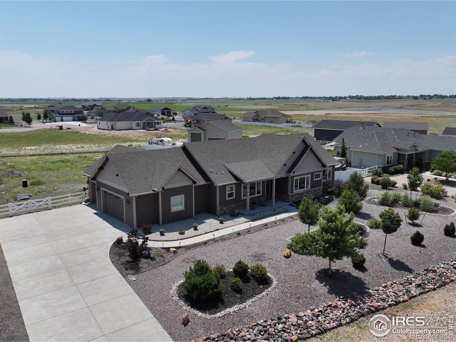 Box Elder Creek stunning ranch-style home nestled on a sprawling acre! As you step inside, natural light floods the great floor plan!! Elegant entry way! Entertaining with a spacious living room, Custom stone gas fireplace, T & G Cathedral ceiling, open & bright! Custom design kitchen is a chef's dream...large center island, sleek quartz countertops, 42" cabinetry, soft close drawers/cabinets, large pantry and Stainless steel appliances! Retreat to your main floor primary suite, featuring a spacious walk-in closet and a luxurious 4-piece bath complete with a stunning walk-in shower! 2nd & 3rd Bedrooms have a custom walk-in shower/bath combo w/ jacuzzi features! Farmhouse mudroom! Large laundry room! Beyond the main floor, the unfinished basement presents endless possibilities, offering an abundance of extra living space that doubles the home's square footage! Step outside with views off the back patio, turf grass, covered patio overlooking the vast acre-lot with a ton of potential! RV Corral per HOA guidelines! New Roof! This front yards professionally xeriscaped landscaping! Quick & easy access to Hwy 76 & 85.. minutes to DIA, Barr Lake & Restaurants! This property is Move in ready!