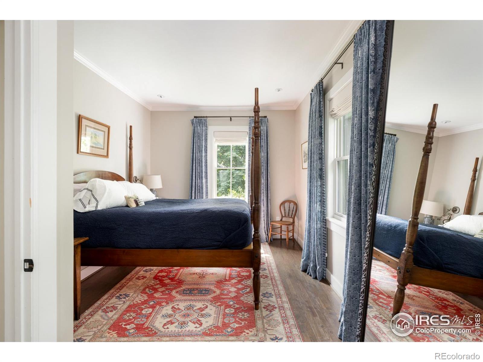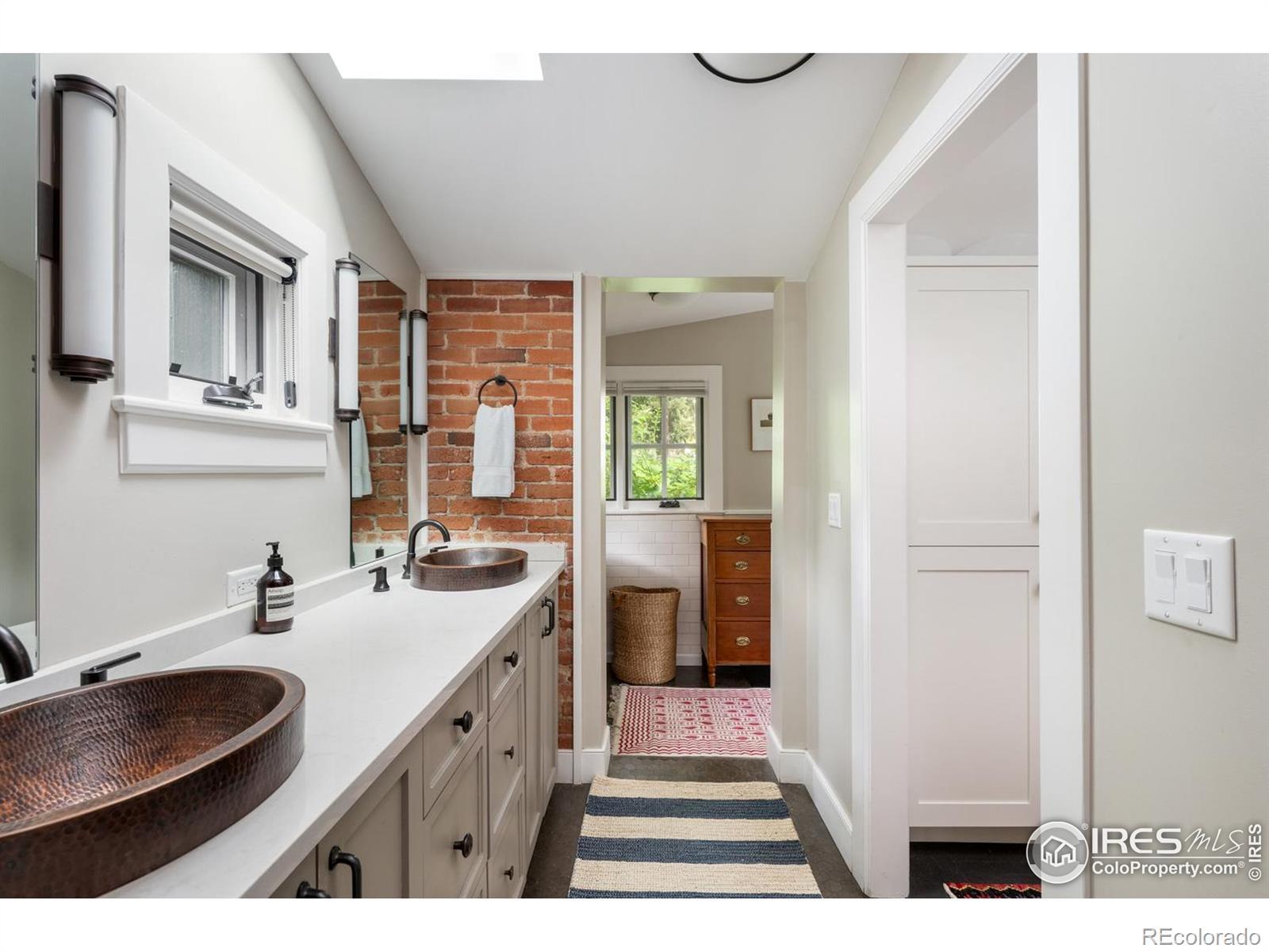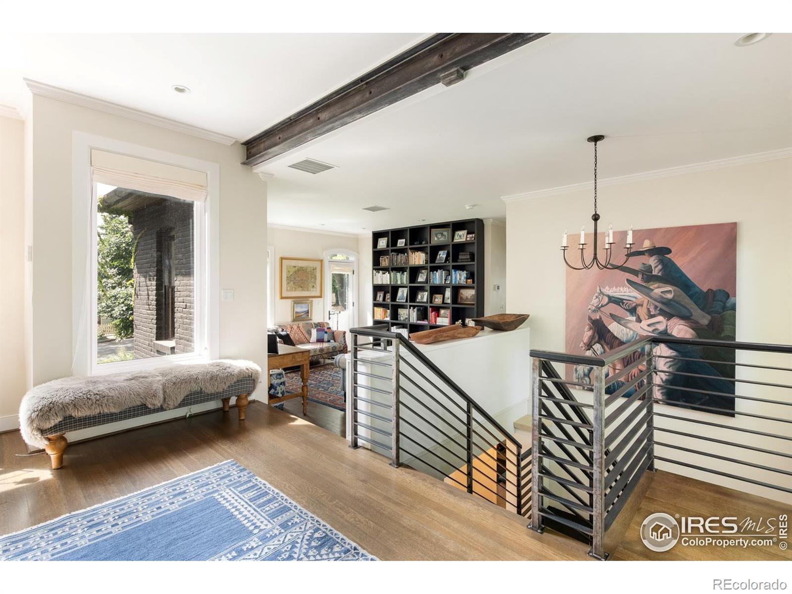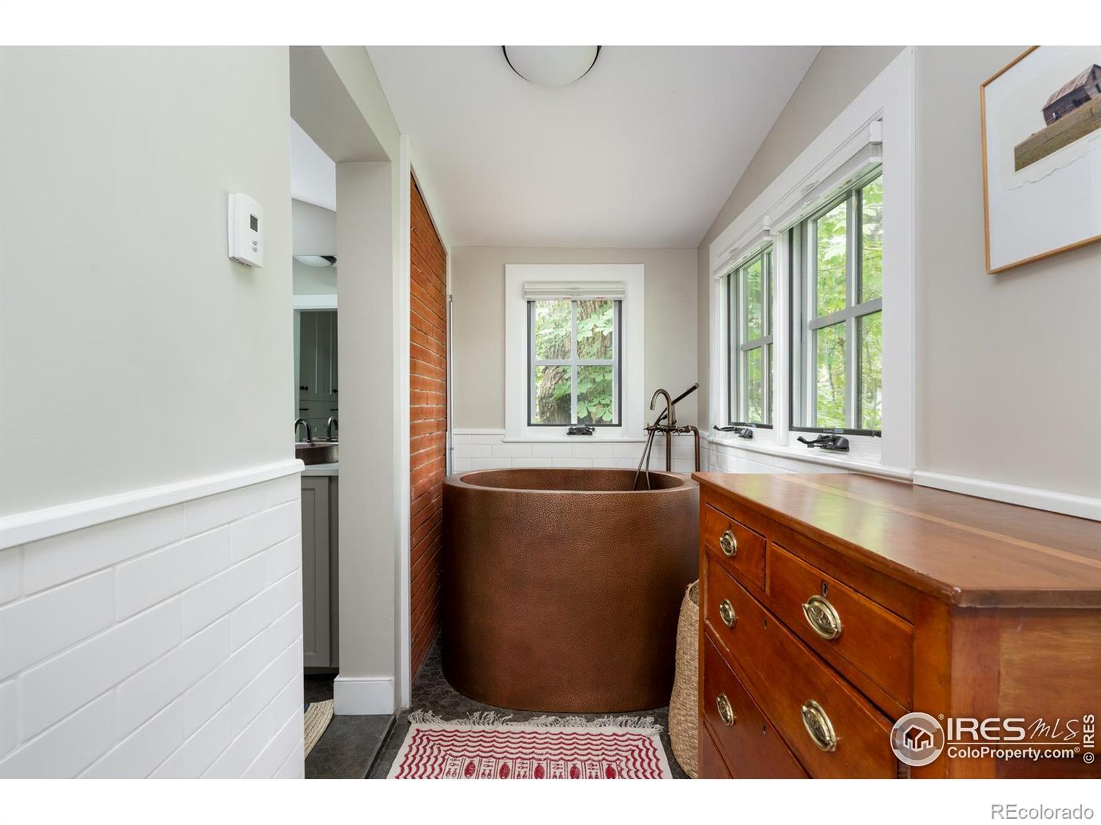 Historic charm meets modern sophistication in this award-worthy Mapleton Hill residence, steps from Pearl Street and Boulder's trail system. Thoughtfully restored inside and out, the home balances timeless architecture with contemporary comforts. The gourmet kitchen is the centerpiece of the main level, featuring custom cabinetry, a Wolf range with a custom steel hood, soapstone countertops, and an oversized island ideal for gathering. Large windows with Southern and Northern exposure, custom built-ins, and a gas fireplace frame Sun-filled living spaces. A striking steel staircase with open wood treads adds architectural interest, while glass doors open to a private streamside patio and lush irrigated gardens. The primary suite features outdoor access, a walk-in closet with custom shelving, and a spa-like bath equipped with a double vanity, steam shower, and a copper soaking tub. The lower level provides two additional bedrooms with adjacent baths, an office, and a mudroom with easy access to storage and mechanicals.Additional features include central AC, radiant heating, a new standing seam metal roof, and valuable water rights. Combining an unbeatable downtown location with elevated design, this property offers a rare opportunity to own a piece of Boulder history, updated for modern living.