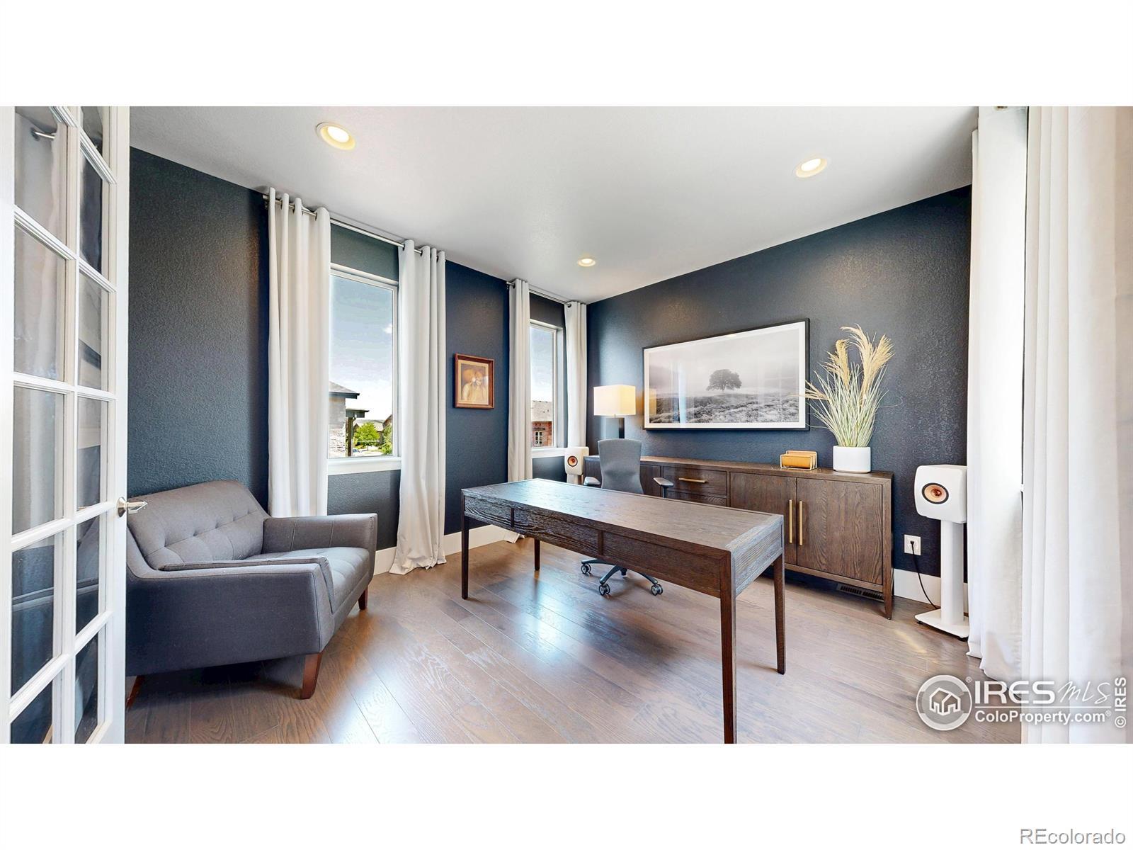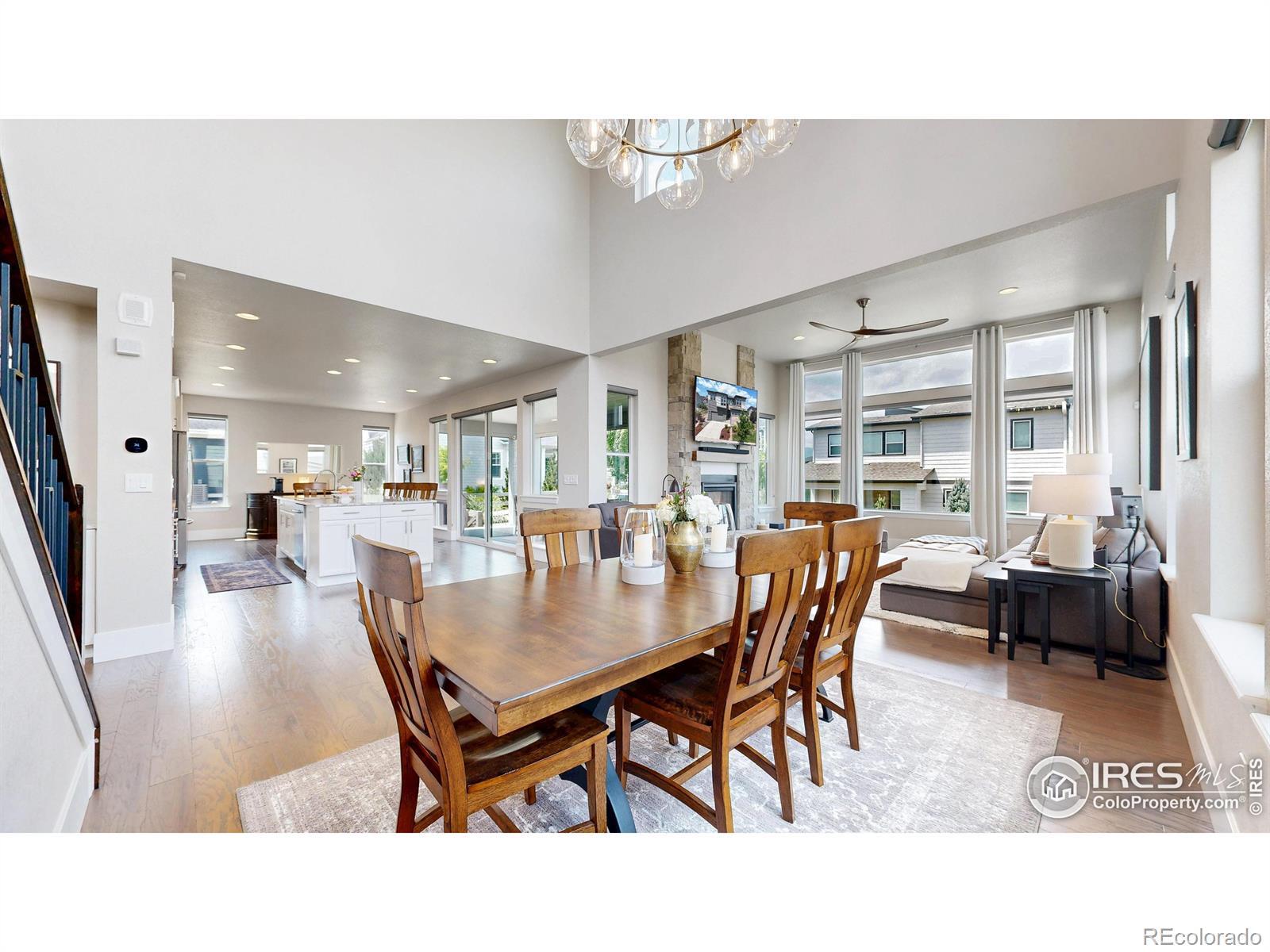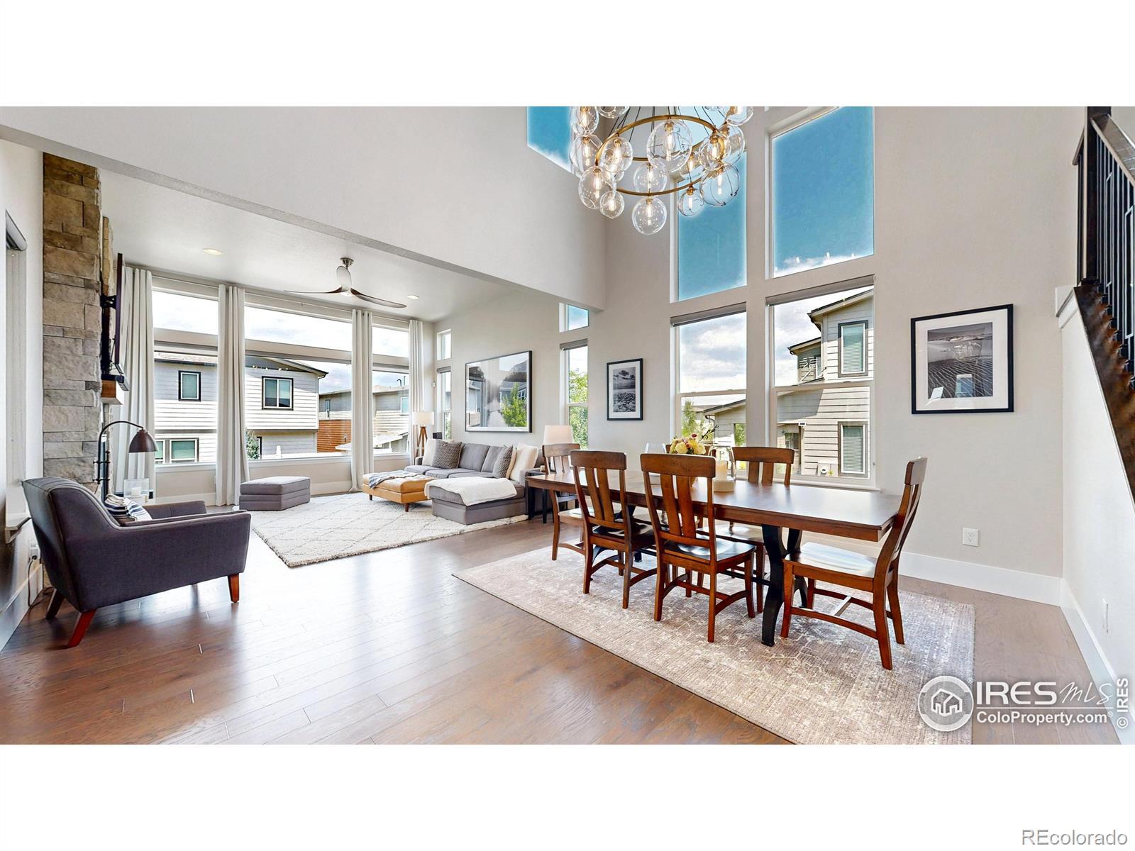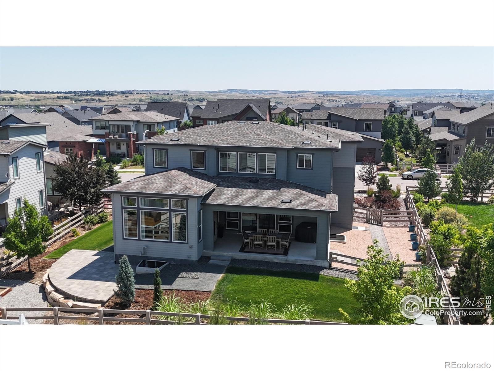 Welcome to 9839 Hilberts Way, located on the most desirable and convenient street in Sterling Ranch. Every inch of this stunning residence reflects thoughtful design, luxurious upgrades, and meticulous care. From the moment you enter, you're welcomed by soaring ceilings, cascading windows, and an open, light-filled layout that flows seamlessly throughout. The main level features an expansive great room with a cozy two-sided fireplace - perfect for both relaxing evenings and elegant entertaining. The chef-inspired kitchen is a showstopper, boasting an oversized quartz island, top-of-the-line JennAir appliances including a gas range and double ovens, and an exquisite backsplash. A coffee bar, formal yet open dining area with statement lighting, and a massive walk-in pantry complete this dream culinary space. Off the foyer, a private office with French doors and recessed lighting sits next to a 3/4 bath, offering potential for main floor living. Upstairs offers the luxurious primary suite plus three additional spacious bedrooms, including one with an en-suite bath - perfect for guests or multi-generational living. The primary suite features a spa-inspired five-piece bath and a custom walk-in closet. Laundry is conveniently located upstairs with extra storage and utility sink option. The finished basement includes a custom-designed bar, a dedicated home gym or flex room, a fifth bedroom and bath, plus an incredible theater (negotiable) - a space for connection, relaxation, and fun. Outside, Sterling Ranch offers miles of scenic trails, parks, a community pool, clubhouse, nightly food trucks, a brewery, coffee shop, and more. Don't miss your chance to own one of the most thoughtfully crafted homes in the neighborhood ~ schedule your showing today!