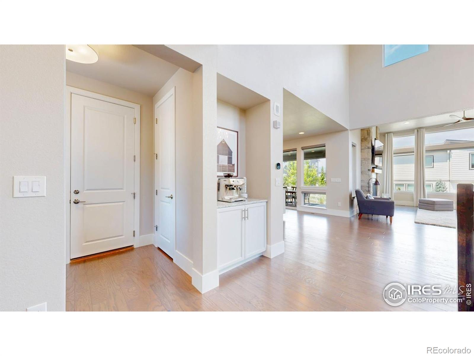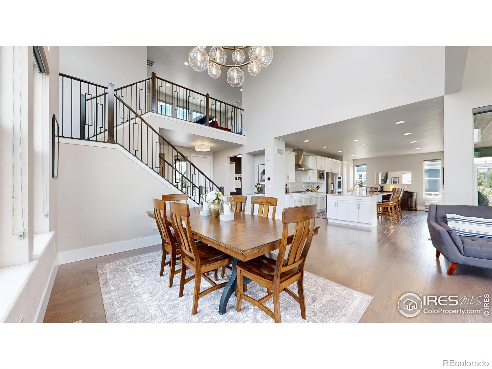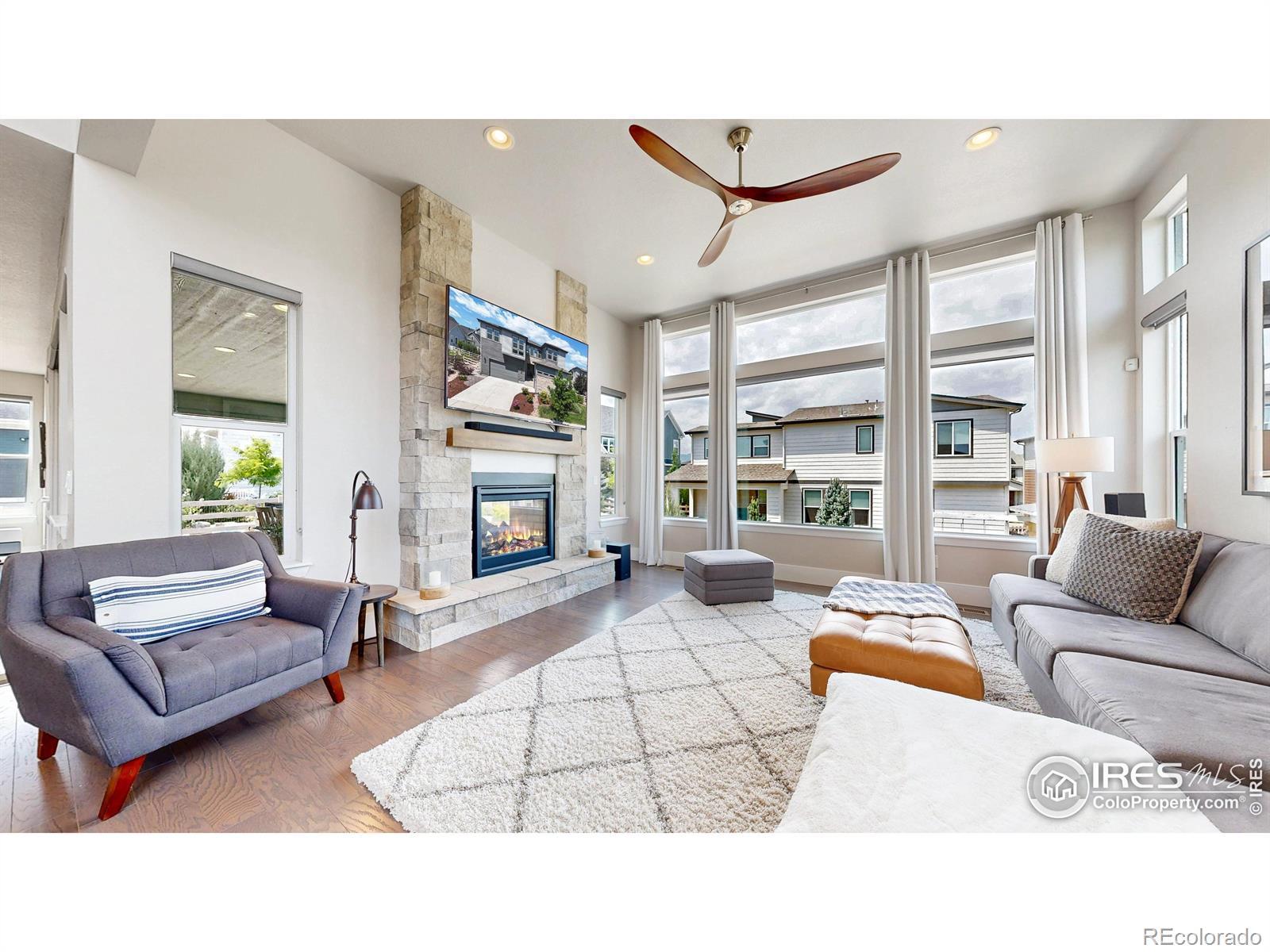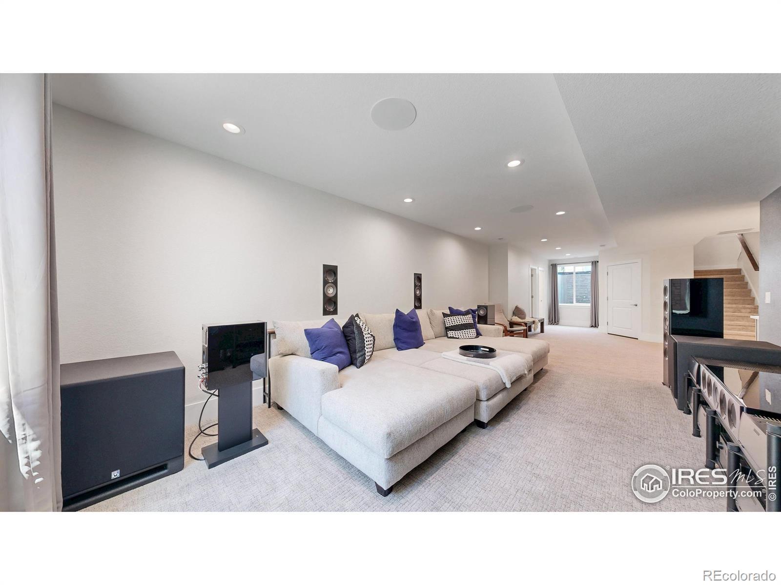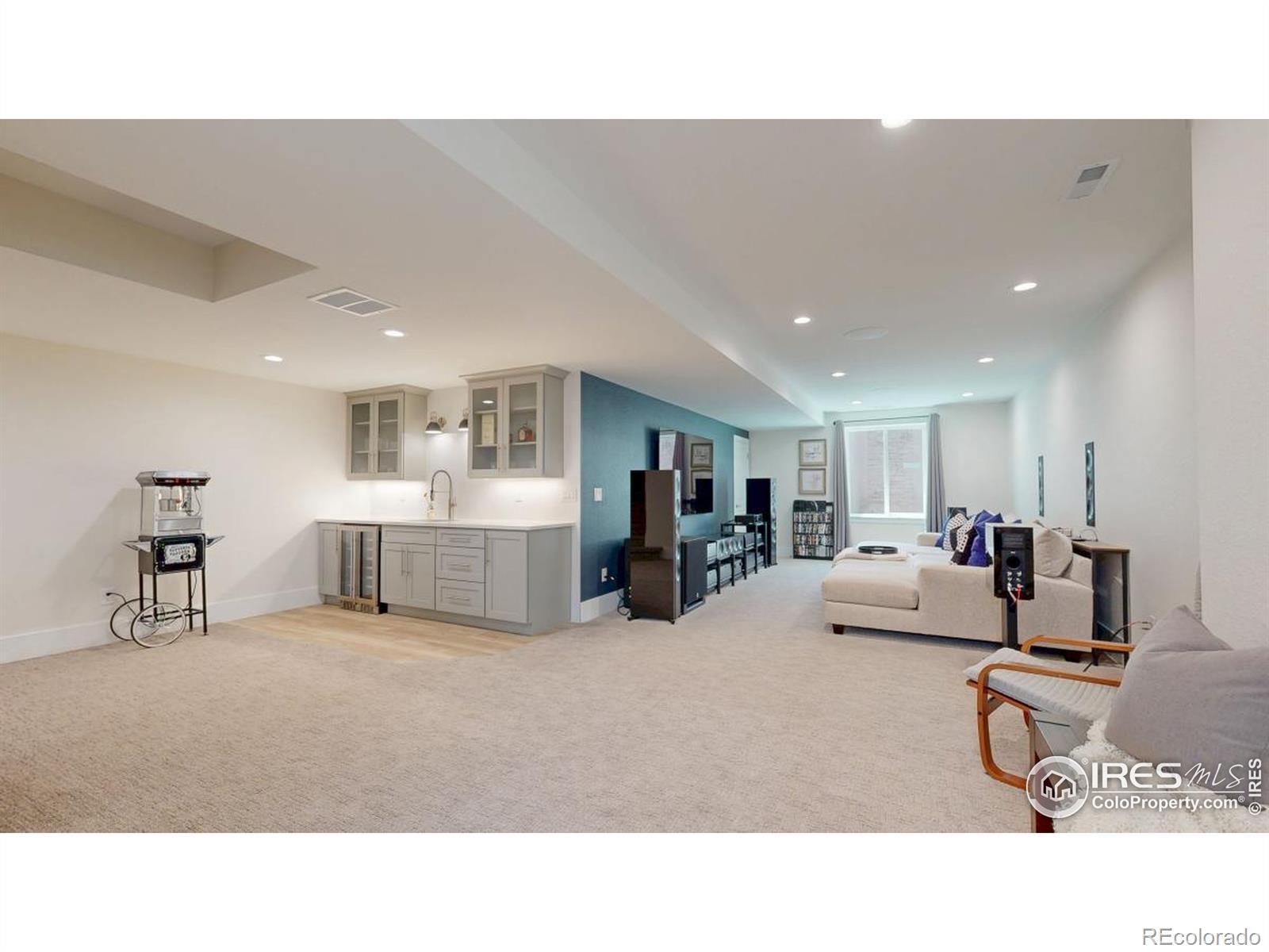 Welcome to 9839 Hilberts Way, located on the most desirable and convenient street in Sterling Ranch. Every inch of this stunning residence reflects thoughtful design, luxurious upgrades, and meticulous care. From the moment you enter, you're welcomed by soaring ceilings, cascading windows, and an open, light-filled layout that flows seamlessly throughout. The main level features an expansive great room with a cozy two-sided fireplace - perfect for both relaxing evenings and elegant entertaining. The chef-inspired kitchen is a showstopper, boasting an oversized quartz island, top-of-the-line JennAir appliances including a gas range and double ovens, and an exquisite backsplash. A coffee bar, formal yet open dining area with statement lighting, and a massive walk-in pantry complete this dream culinary space. Off the foyer, a private office with French doors and recessed lighting sits next to a 3/4 bath, offering potential for main floor living. Upstairs offers the luxurious primary suite plus three additional spacious bedrooms, including one with an en-suite bath - perfect for guests or multi-generational living. The primary suite features a spa-inspired five-piece bath and a custom walk-in closet. Laundry is conveniently located upstairs with extra storage and utility sink option. The finished basement includes a custom-designed bar, a dedicated home gym or flex room, a fifth bedroom and bath, plus an incredible theater (negotiable) - a space for connection, relaxation, and fun. Outside, Sterling Ranch offers miles of scenic trails, parks, a community pool, clubhouse, nightly food trucks, a brewery, coffee shop, and more. Don't miss your chance to own one of the most thoughtfully crafted homes in the neighborhood ~ schedule your showing today!