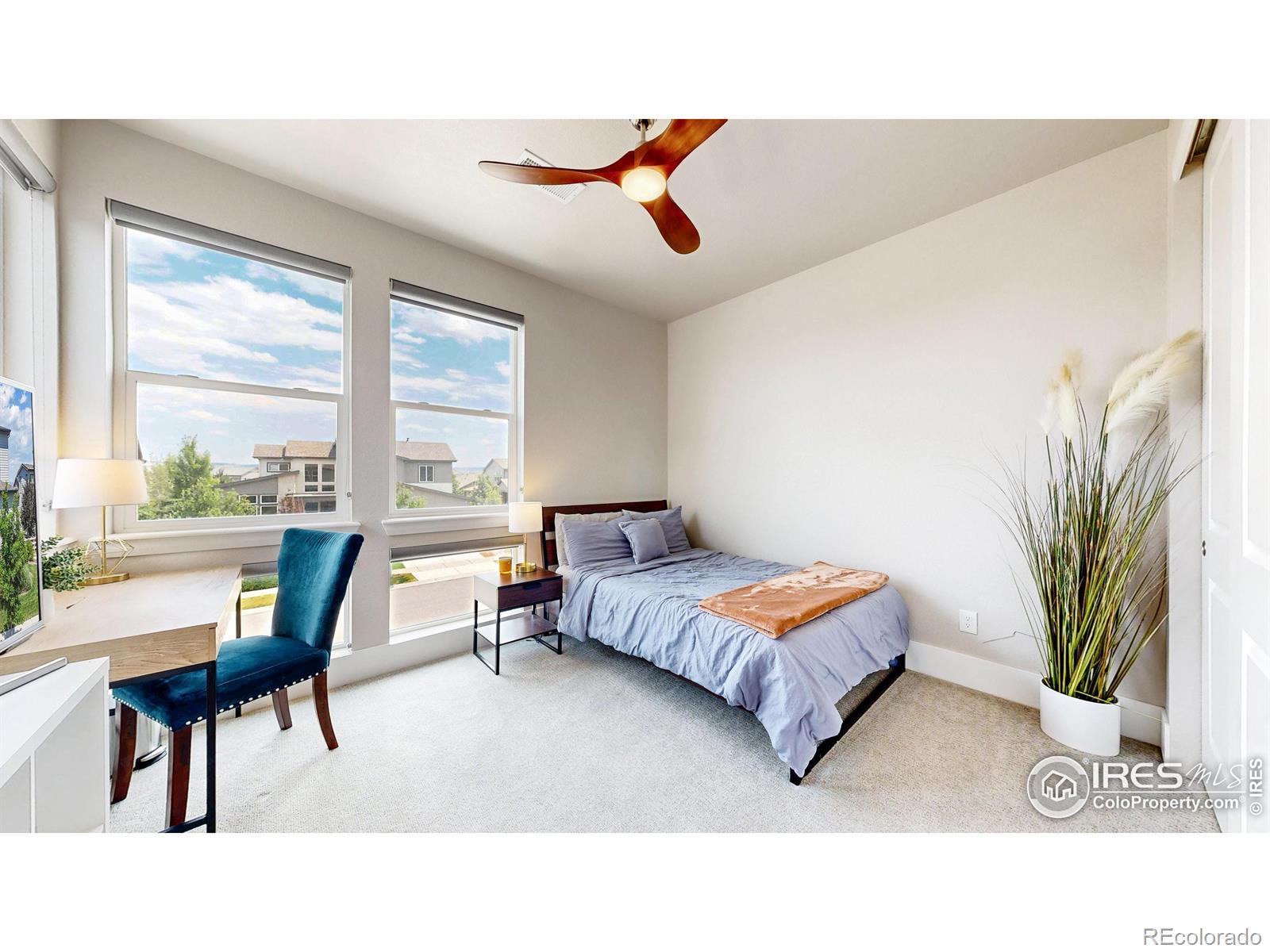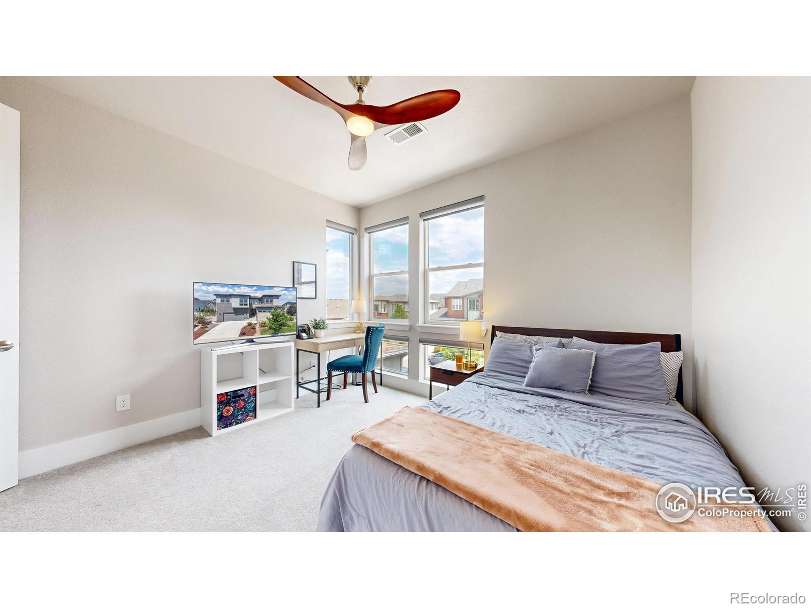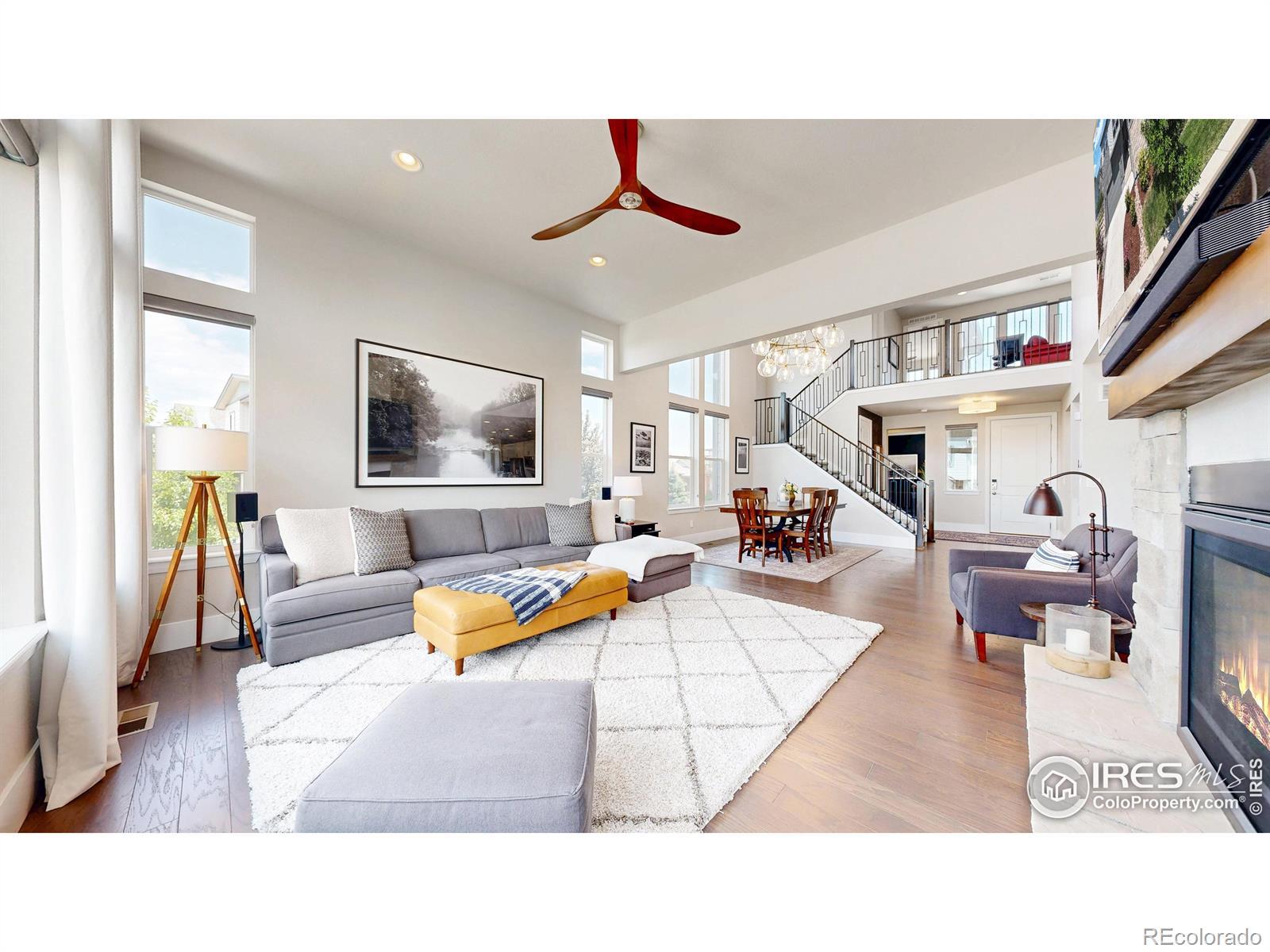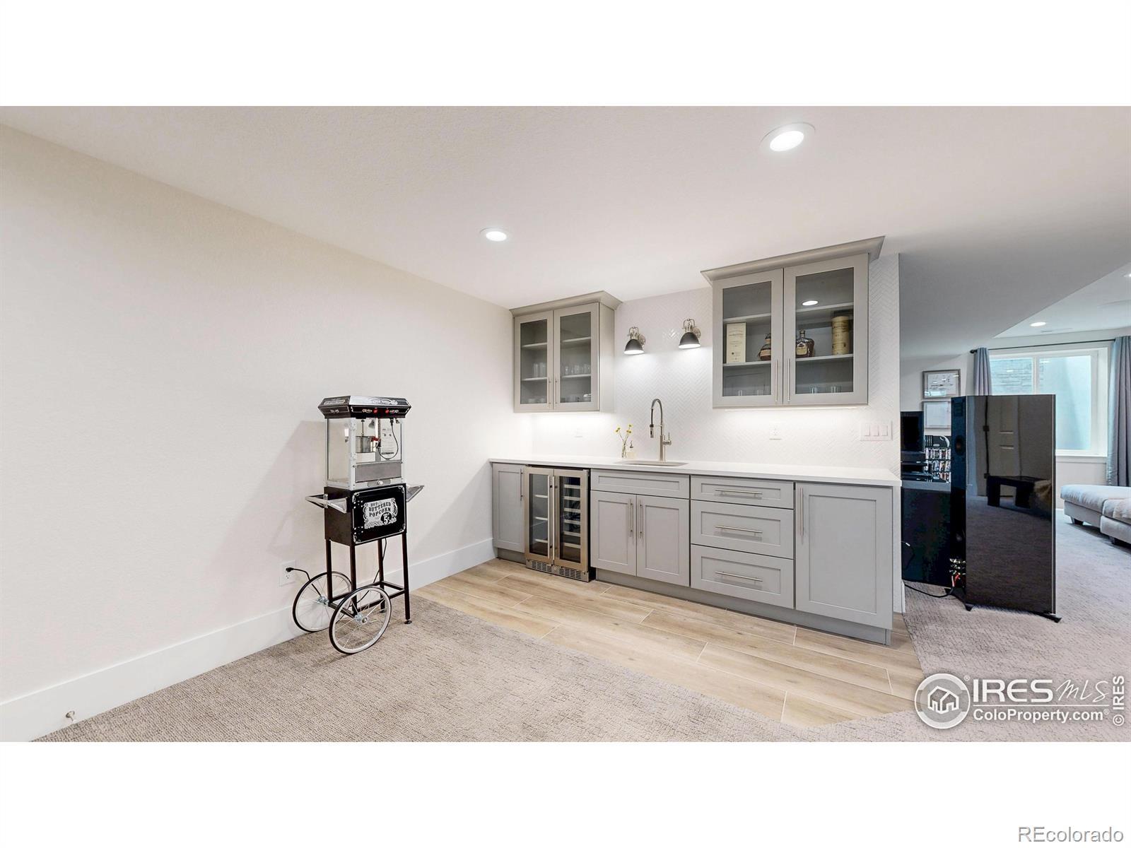 Welcome to 9839 Hilberts Way, located on the most desirable and convenient street in Sterling Ranch. Every inch of this stunning residence reflects thoughtful design, luxurious upgrades, and meticulous care. From the moment you enter, you're welcomed by soaring ceilings, cascading windows, and an open, light-filled layout that flows seamlessly throughout. The main level features an expansive great room with a cozy two-sided fireplace - perfect for both relaxing evenings and elegant entertaining. The chef-inspired kitchen is a showstopper, boasting an oversized quartz island, top-of-the-line JennAir appliances including a gas range and double ovens, and an exquisite backsplash. A coffee bar, formal yet open dining area with statement lighting, and a massive walk-in pantry complete this dream culinary space. Off the foyer, a private office with French doors and recessed lighting sits next to a 3/4 bath, offering potential for main floor living. Upstairs offers the luxurious primary suite plus three additional spacious bedrooms, including one with an en-suite bath - perfect for guests or multi-generational living. The primary suite features a spa-inspired five-piece bath and a custom walk-in closet. Laundry is conveniently located upstairs with extra storage and utility sink option. The finished basement includes a custom-designed bar, a dedicated home gym or flex room, a fifth bedroom and bath, plus an incredible theater (negotiable) - a space for connection, relaxation, and fun. Outside, Sterling Ranch offers miles of scenic trails, parks, a community pool, clubhouse, nightly food trucks, a brewery, coffee shop, and more. Don't miss your chance to own one of the most thoughtfully crafted homes in the neighborhood ~ schedule your showing today!