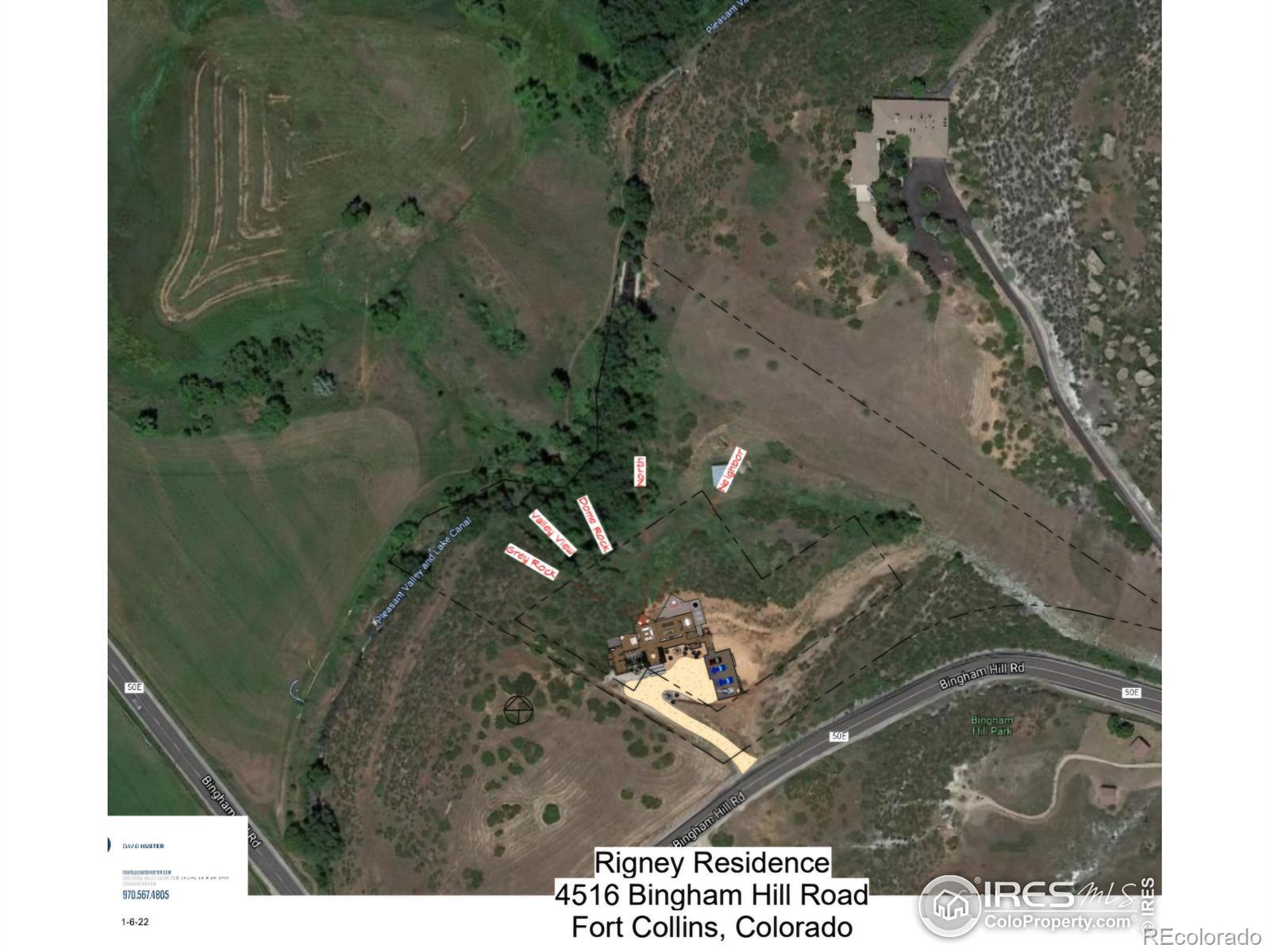 4516 Bingham Hill Road is a rare opportunity. It represents the last raw parcel of land and final easement/drive on Bingham Hill. Spanning 4.41 acres, this property delivers what few ever will. Expansive views of Bellvue Dome and Gray Rock Mountain, rolling foothills, and tranquil frontage along the Pleasant Valley and Lake Canal. Just 2.5 miles from Horsetooth Reservoir and minutes from Lory State Park and the Cache la Poudre River, the location offers unmatched access to Northern Colorado's best outdoor recreation, while Old Town Fort Collins is only a short drive away.The groundwork is already in place. A building footprint has been excavated, a City of Fort Collins water tap is included, and soil, environmental, and perc tests are complete. Architectural plans for a luxury residence are available if desired, though the property remains your canvas to design the home you've always envisioned.