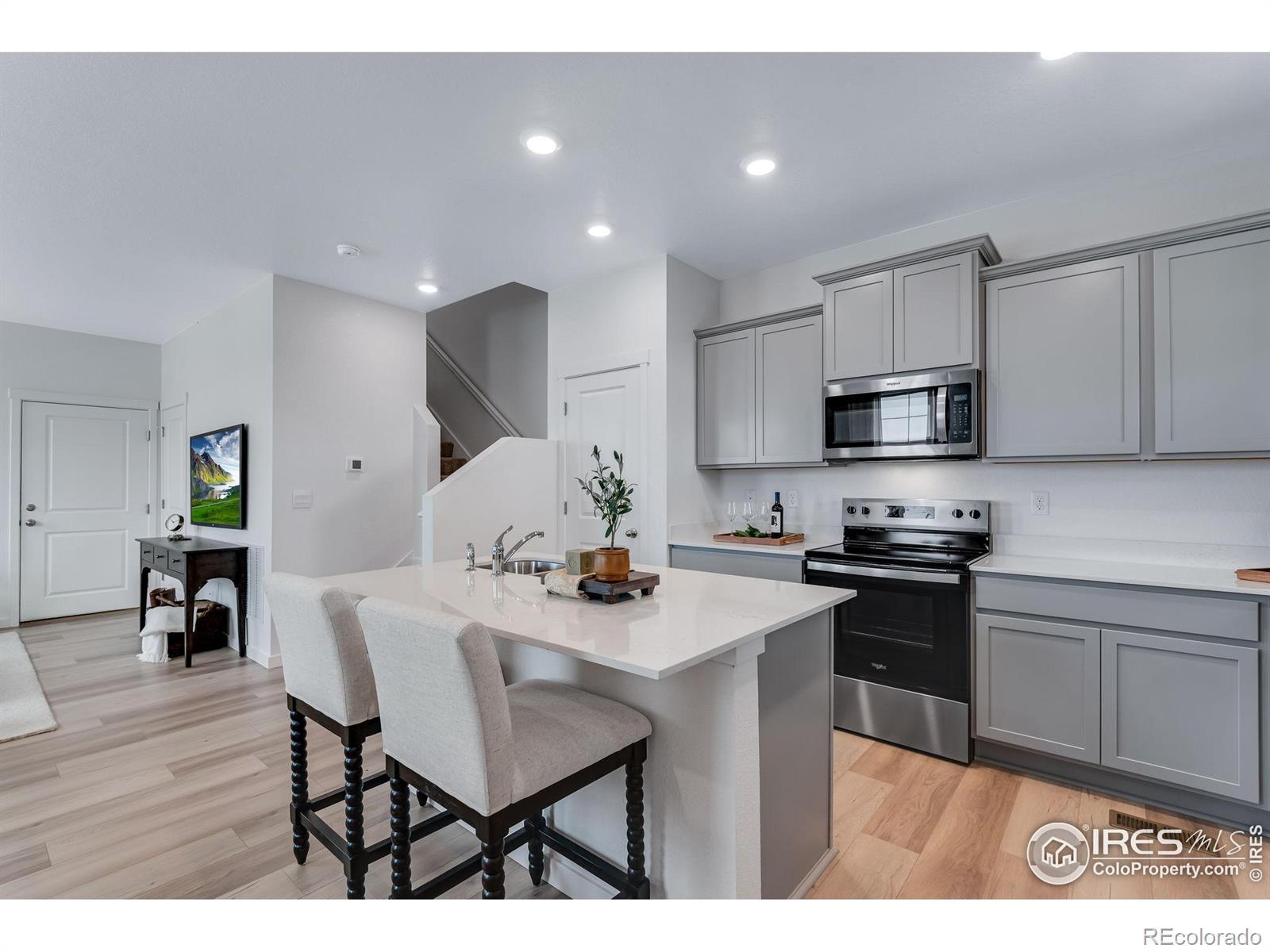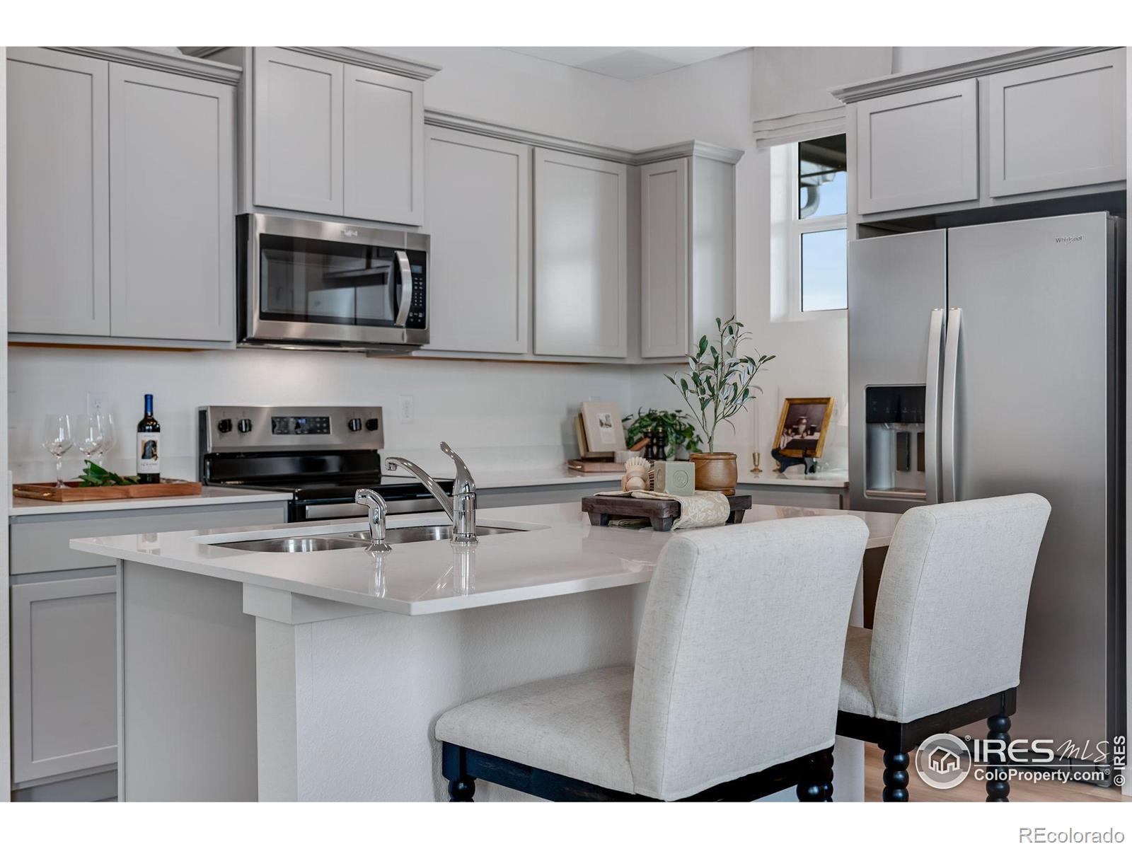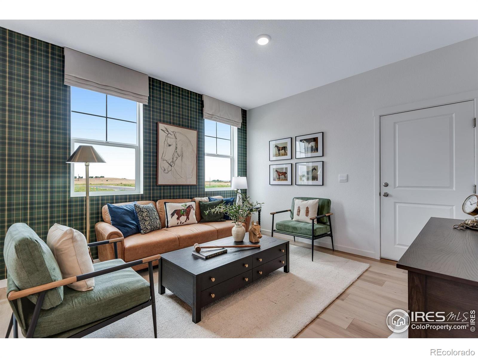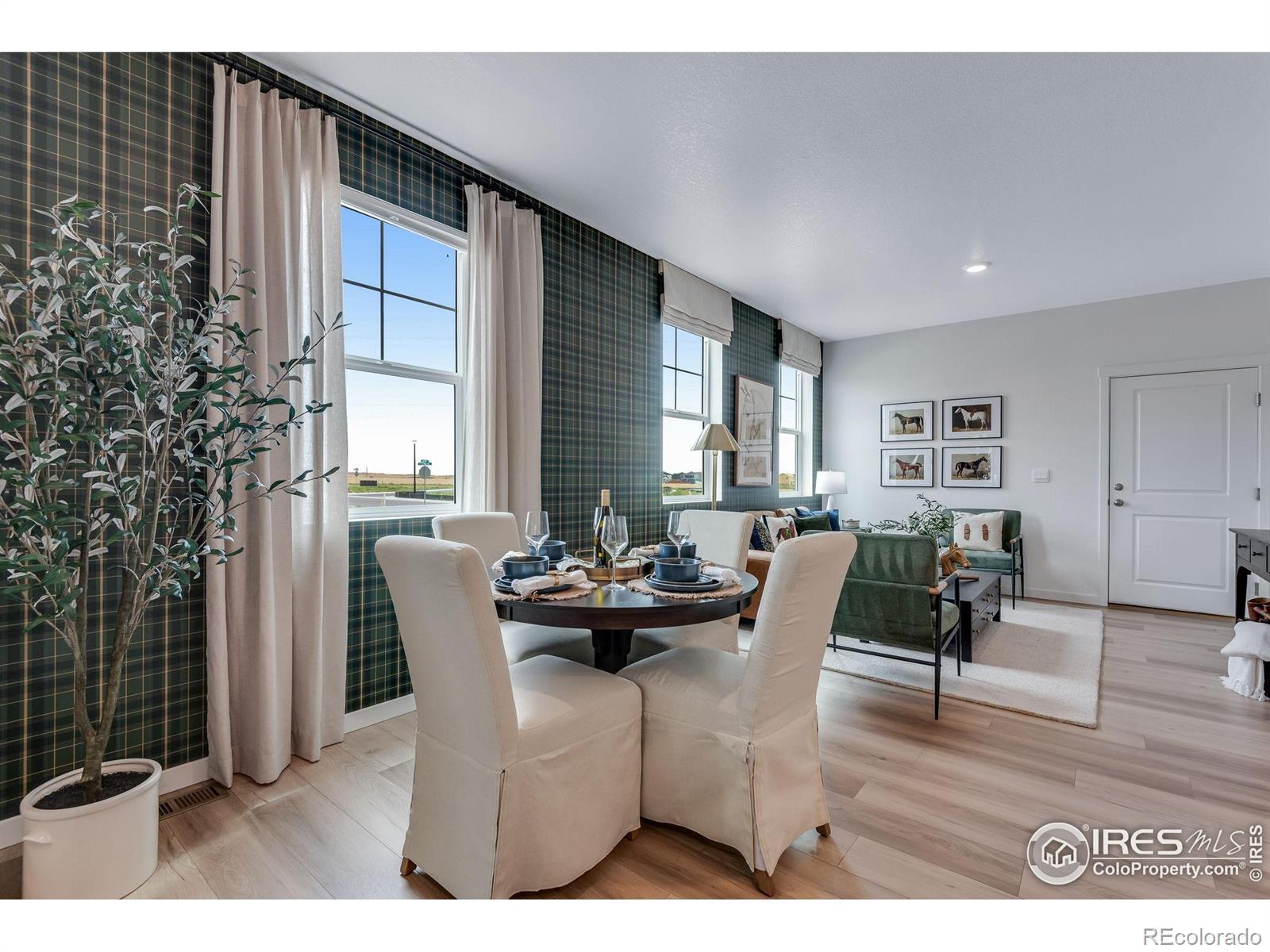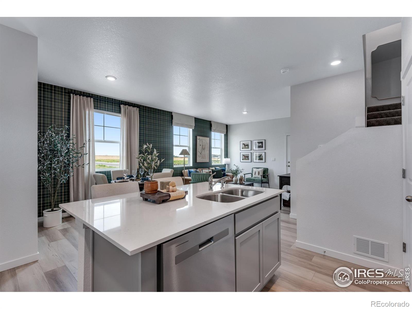 The Muirfield, is a thoughtfully designed 2-story paired home offering 3 bedrooms, 2.5 baths, and 1,514 sq. ft. of living space. From the inviting covered front porch, you'll step into a bright, open-concept layout that blends comfort and functionality. The spacious kitchen boasts beautiful cabinetry, stainless steel appliances, a pantry, and an island-perfect for meal prep, casual dining, or entertaining. The dining nook flows seamlessly into the open living area, creating a warm and inviting main floor. Upstairs, an open loft provides flexible space for a second living room, office, or game area. Two secondary bedrooms share a well-appointed full bath, while the primary suite features an en-suite bathroom with and an oversized walk-in closet. Additional highlights include a 2-car garage, energy-efficient smart home technology, and stylish finishes like quartz countertops, vinyl wood flooring, and modern lighting. Experience the perfect blend of modern comfort and timeless design in the Muirfield plan. Located in Vista Meadows of Fort Lupton, CO, residents enjoy small-town charm with easy access to I-25, I-76, and just 30 minutes from Denver International Airport. The community offers a mix of single-family and paired homes, close to outdoor recreation, shopping, and dining.***Estimated Delivery Date: November. Photos are representative and not of actual property***