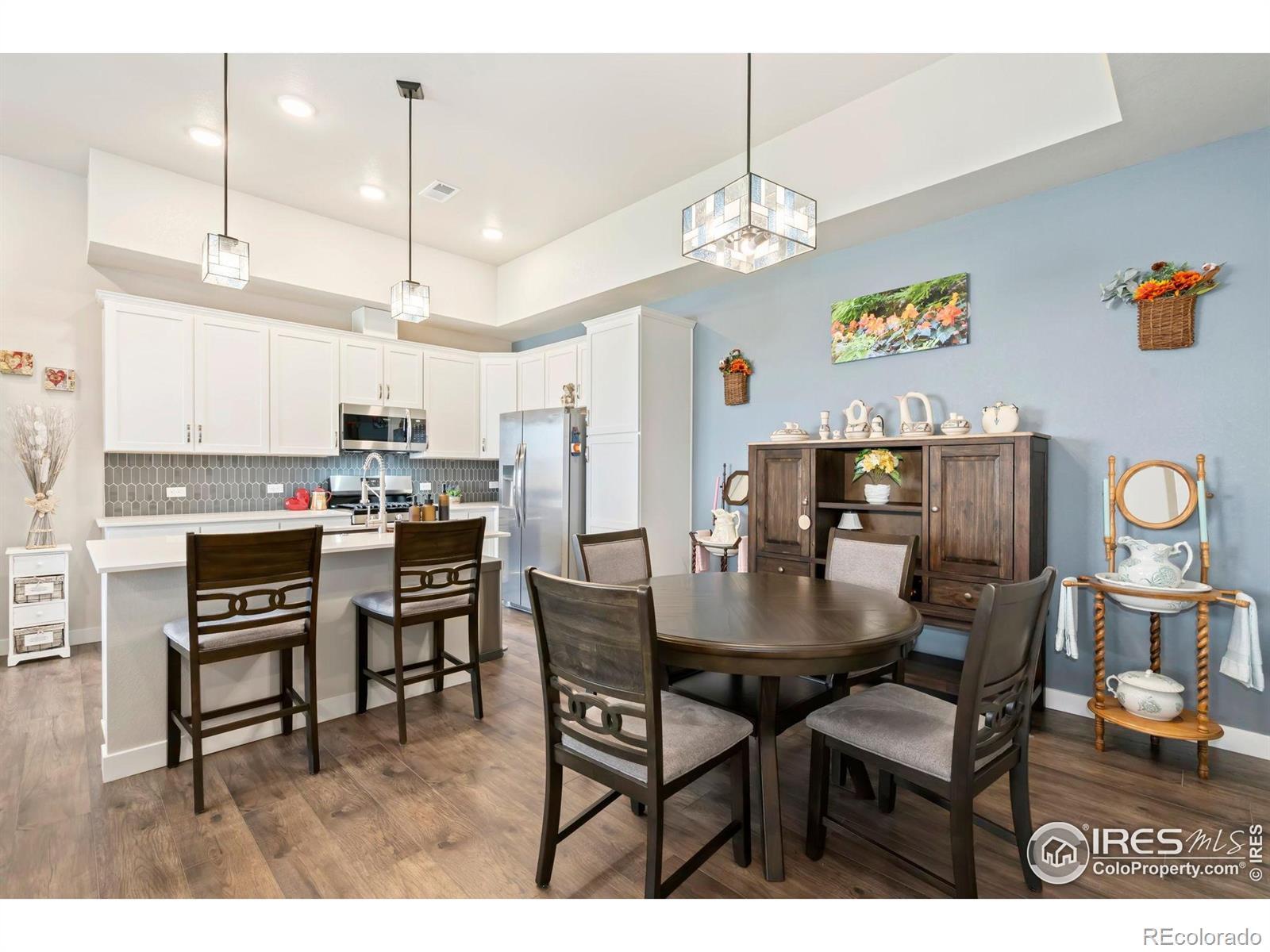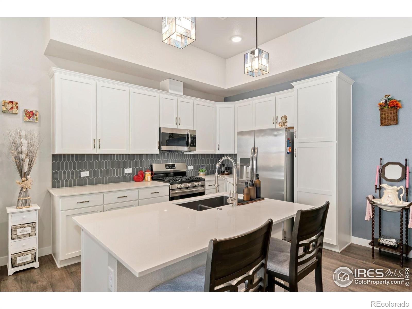 Welcome to this gorgeous maintenance free, 3 bedroom, 2 bath condo-style townhome in The Discovery at the Lakes at Centerra! Only 2 years old, this home has been meticulously cared for and is loaded with upgrades. Inside, you'll be welcomed with vaulted ceilings, an open floor plan, and vinyl wood floors throughout the main living space. The kitchen shines with upgraded cabinetry, backsplash and quartz countertops, while the bathrooms feature stylish tile and flooring upgrades. Beautiful new light fixtures, ceiling fans, and a versatile flex space make this home both functional and inviting. The spacious primary suite offers a sizable closet, dual sinks, and a walk-in shower complete with a new rainfall showerhead. Two more bedrooms and an additional bathroom provide space for family or guests. Enjoy the convenience of one-level living, with the only stairs being from the entry to your main level of living, complete with a tankless water heater and a high efficiency furnace. Plus you'll love the thoughtful extras like window coverings, appliances, and custom shelving upgrades - benefits you won't find in the new builds down the road! Outside, relax on your spacious deck with open space and greenbelt views, or take in the outdoors in your fenced-in front yard - perfect for a bit of privacy and your pets! Additional highlights include an oversized 1-car attached garage with finished walls and new storage racks. Enjoy low-maintenance living with the HOA covering snow removal, water, trash, sewer, and internet. The community also offers a club room for both indoor and outdoor gatherings, a garden, and tons of character. All this in a prime location just minutes from lakes, trails, shopping, and dining - with easy access to I-25. Schedule your showing today!