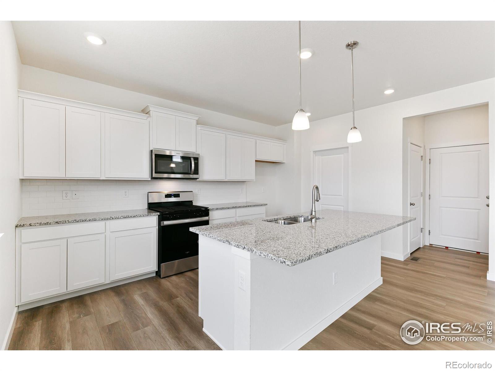 Stunning, spacious 4-bedroom home with 2nd floor living area and a main floor flex space! The warm and inviting kitchen features granite slab counters, contemporary cabinets with crown moulding, pendant lights over the large island, subway tile backsplash and Stainless-Steel Whirlpool appliances. The primary bedroom is roomy and bright, and connects to an ensuite bathroom with quartz countertops, 2 undermount sinks and tile floors and shower walls. Enjoy all the space and storage in this brand-new home with walk-in closets, kitchen pantry and linen closets. This Smart Home includes keyless entry with keypad, video doorbell, smart thermostat, wi-fi enabled garage door opener, Amazon Echo device, wall-mounted touch screen panel, and more. Deako plug and play light switches and tankless water heater are also included in this home! This property comes included with front and rear landscaping along with fencing.***Estimated Delivery Date: November. Photos are representative and not of actual property***