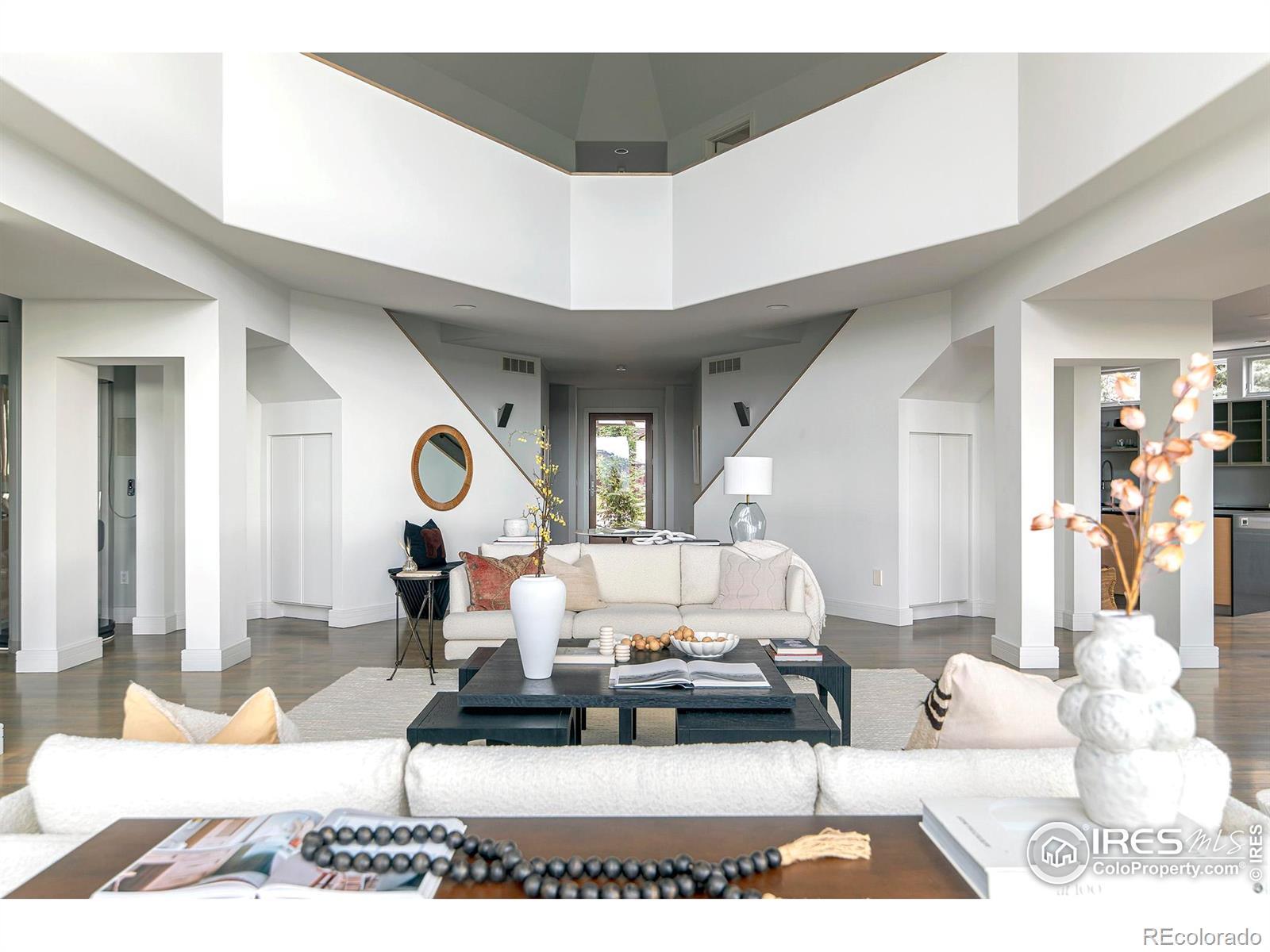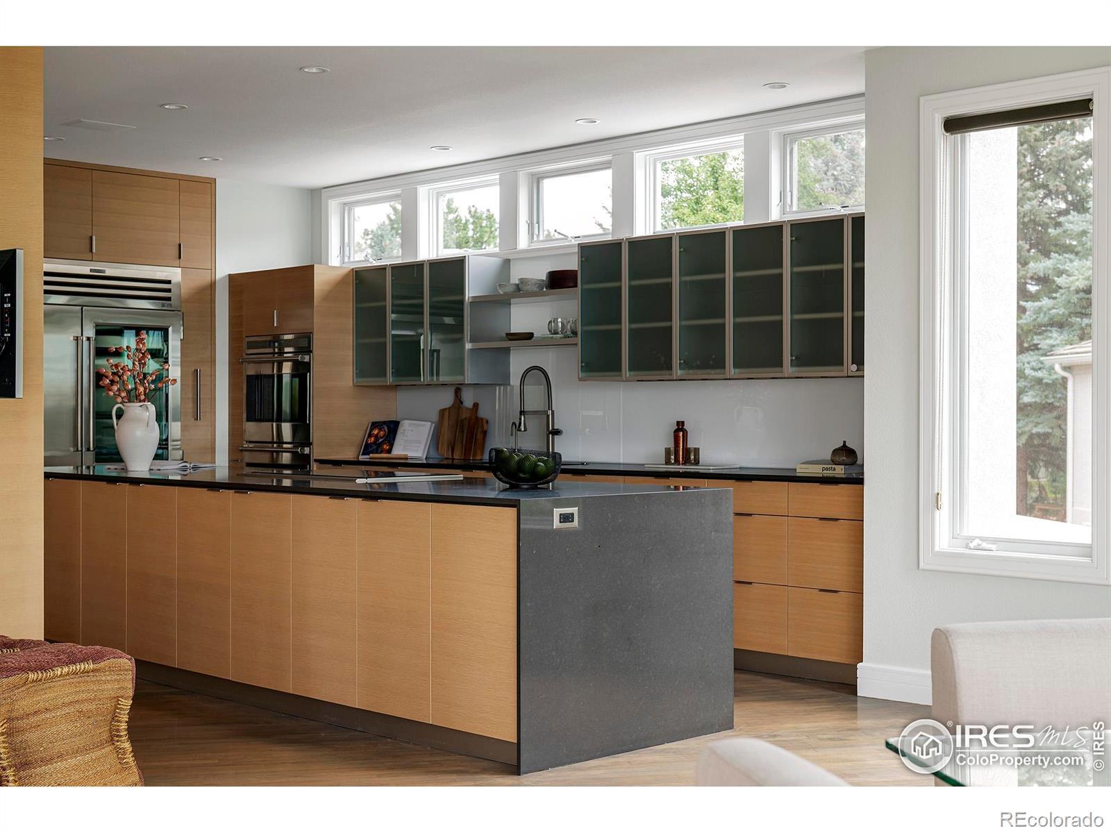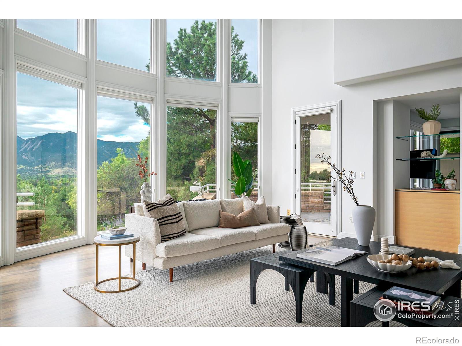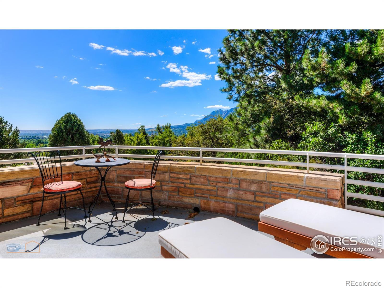 At the end of a private North Boulder cul-de-sac, 3747 Mountain Laurel Place offers a rare combination of serenity, space, and intentional design, where walls of windows frame awe-inspiring views of the Flatirons and city skyline and bring them into the heart of the home. A dramatic sunlit great room and open floor plan create a tranquil backdrop for both everyday living and elegant entertaining, extending naturally to multiple balconies and terraces that blur the line between indoors and out. The Arch 11-designed kitchen is an entertainer's dream, featuring Wolf and Sub-Zero appliances, dual ovens, double dishwashers, an induction cooktop, and an oversized waterfall quartz island, with seamless access to the dining room and a private deck for grilling or al fresco dining. Thoughtful custom conveniences include a Stiltz elevator connecting the main and upper levels, while the home's zen-like living spaces range from a main floor retreat with its own courtyard and bar to the upper level luxurious primary suite with private terrace, fireplace, spa-like bath, and custom closet with dedicated laundry. The light-filled walkout lower level offers high ceilings, a rec room, theater, wet bar, workshop, and private guest suite. With lush landscaping and an oversized three-car garage, this home is both a quiet sanctuary and a striking architectural statement, just steps from Wonderland Lake trails, Lucky's Market, Amante Coffee, Proto's Pizza, Lucky's Bakehouse, and some of North Boulder's most beloved restaurants and cafes.