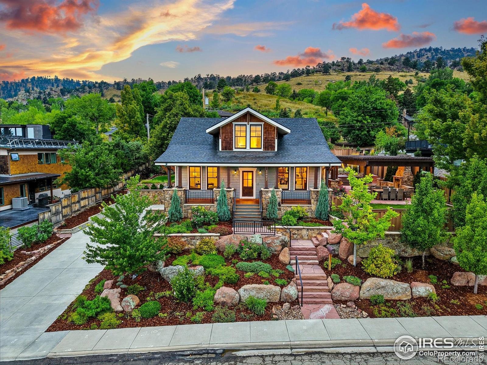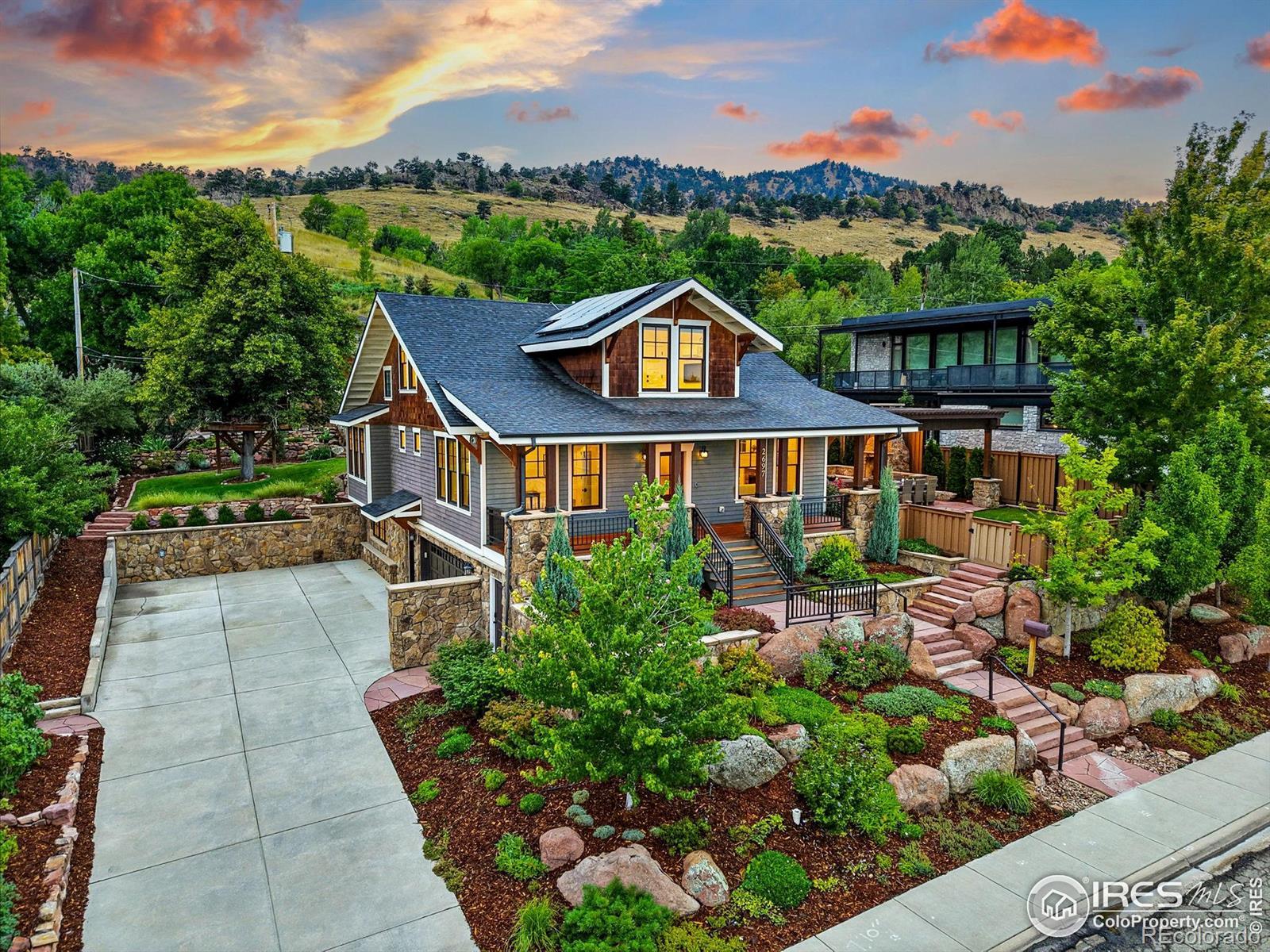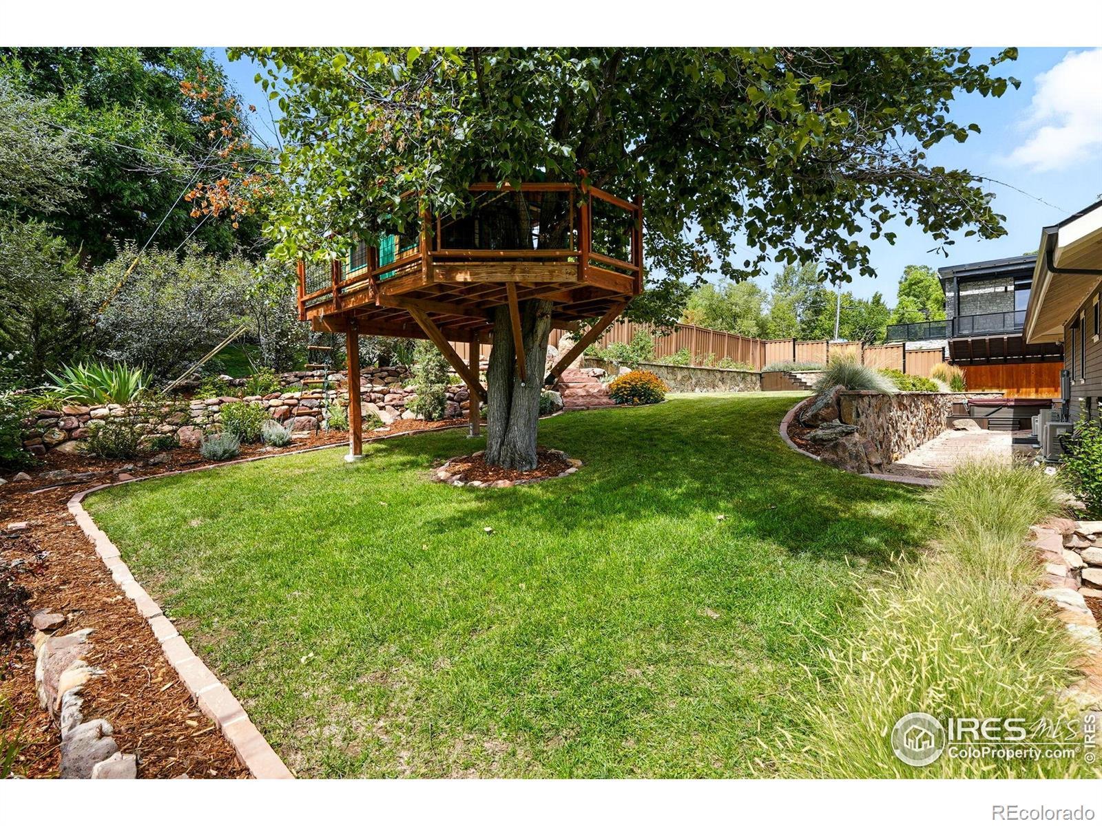 Simply spectacular; the backyard alone could win BEST YARD in Boulder! If you're looking for a year round haven to experience indoor/outdoor living at it's best, hop onto the trailhead and hike Sanitas, and be so very close to North Boulder Park, Pearl Street and Boulder's community activities....look no further! Whether its the warmth of the expansive stone fire place that invites gatherings outdoors, the built in bar and hot tub, or the custom tree house, this yard is serious about entertaining and fun! The meticulously landscaped year round oasis creates the perfect backdrop for making memories, backyard barbecues, parties, and conversations with friends well into the evening. Once inside, you'll discover a move-in ready haven. Rich oak floors anchor the spaces while vaulted ceilings and thoughtfully placed windows create inviting rooms that bask in soft filtered light throughout the day. The main level Primary Retreat is a rarity and provides options for those looking for an elegant main level bedroom suite. There's even an oversized laundry and panty on the main level to ensure daily rhythms are quick and easy. The chef's kitchen features Thermador appliances, soapstone countertops, and timeless Wedgewood cabinetry. Smart lighting by Legrand & Kasa provides effortless control of all your lighting functions. Mornings bring quick hikes and coffee with views; evenings, golden-hour dinners and quiet conversations under the sky - secluded in feel yet minutes to Pearl Street and filled with community. Move right in and LIVE BOLDER, LOVE BOULDER!
