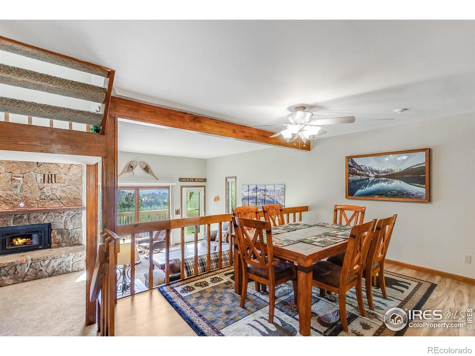 "Condo Mountainesque" offers Colorado mountain charm with Rocky Mountain National Park at Your back door. Sweeping views of surrounding peaks & easy access to downtown Estes, this home is ideal as Your full-time home, mountain retreat, or hiking basecamp! Welcome into an open floor plan with endless views! Living area features a cozy fireplace, creating a focal point after a delightful day of exploring! The kitchen is renovated for entertaining ease with a seamless flow into the dining and living spaces with ample cabinetry and stainless-steel appliances. Upstairs, the bedrooms provide rest with the primary suite featuring an inviting fireplace and more breathtaking views! Enjoy morning coffee or evening sunsets from your choice of three decks surrounded by National Park views. The attached two car garage provides a rare convenience. Highlights: Vaulted ceilings. Ample storage. Low-maintenance living. Fully furnished and turn-key/move-in ready. Don't miss your opportunity to make 1070 Crestview Ct #4 your own Rocky Mountain Retreat!