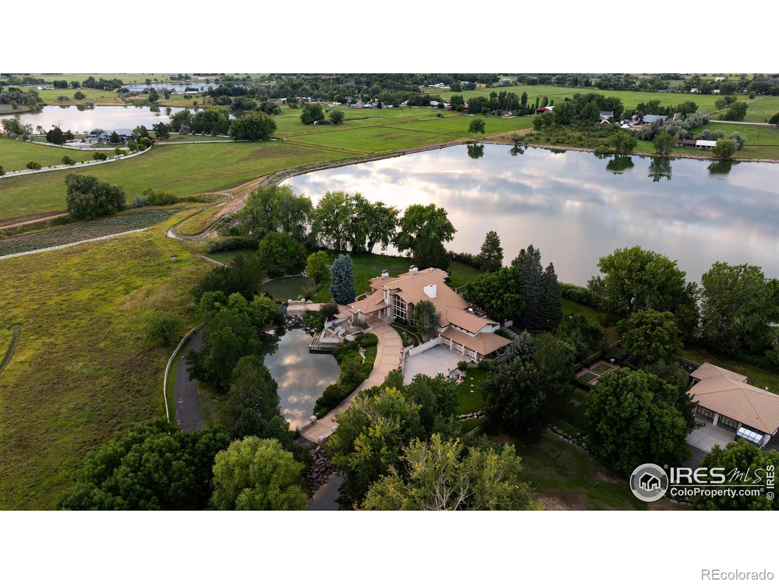 Welcome to the Rozena Estate, a once-in-a-lifetime opportunity in Boulder County. Encompassing over 18 acres across 3 distinct paracels, breathtaking vistas captivate at every turn, from the majestic Longs Peak to the serene shores of Burch Lake. A defining feature of this rare property is the invaluable water resource, with 1.36 shares of the Palmerton Ditch meandering through the grounds, providing abundant supply for flourishing gardens, hay field irrigation, and an orchard of fruit trees.A grand entrance through a private gate sets the tone for an enchanting experience. A stately, winding pathway framed by mature trees leads you to the residence, revealing meticulous landscaping, captivating views of idyllic ponds, and awe-inspiring mountains. The home's elegant facade, featuring a stunning custom metalwork tree on the front door, commands attention.Inside, the home is bathed in natural light, with a sun-drenched glass atrium and towering windows that frame sweeping views and blur the line between indoors and out. Vaulted ceilings, double-sided stone fireplaces, and views from every window provide versatile interior spaces. Outdoors, a pool with pool house and kitchen creates a backyard oasis with even more opportunities to take in the serene surroundings. Beyond the main residence, a second undeveloped parcel presents the option to build a 5,500-sq-ft luxury home. The property's multifunctional barn includes an office, kitchen, bathroom, and two stalls, well suited for equestrian use or hobbies. A workroom complete with a mechanical pit for projects, tending to the hay field, and equipment care. Nestled in a discreet corner of Boulder County, The Rozena Estate offers a perfect blend of pastoral seclusion and urban convenience. It's a place where you can enjoy privacy, luxury, and a deep connection to nature while just minutes from Hygiene and a short drive to the Front Range.