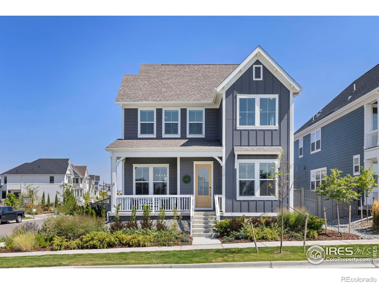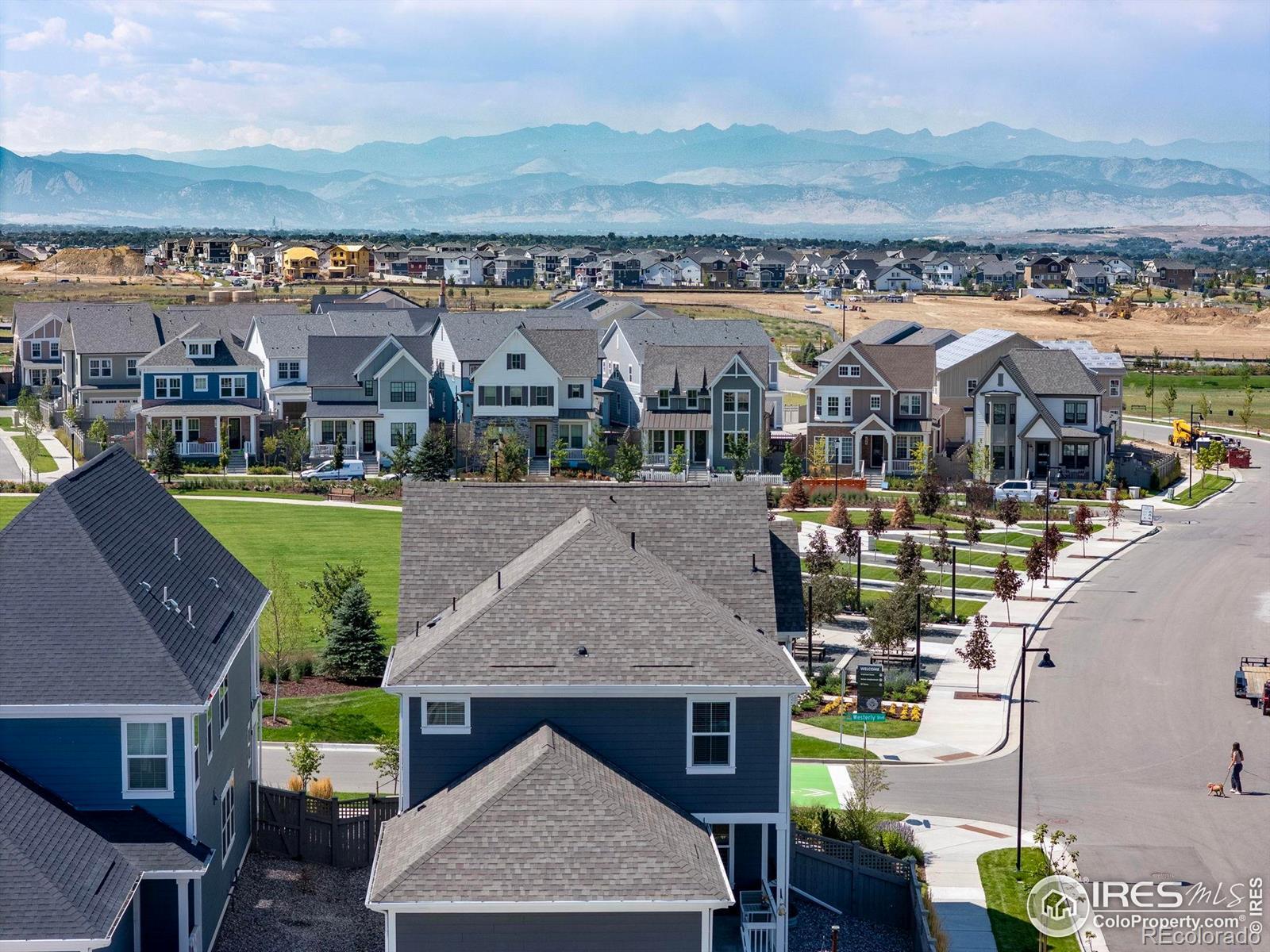 By far the best lot in Westerly, this stunning home offers unobstructed mountain views from nearly every window, the front porch, and backyard. The gourmet kitchen features an extended wrap-around backsplash, large island, and premium GE Cafe appliances. A dramatic great room boasts custom floor-to-ceiling board and batten, while light LVP floors, plantation shutters, and a main-level office with inspiring views complete the first floor. Enjoy seamless indoor-outdoor living with a large covered patio, designer ceiling detail, and low-maintenance turf yard-perfect for entertaining or sunsets. Upstairs, find three bedrooms with built-in closets, a bright loft, and laundry with custom wallpaper and commercial-size washer/dryer. The primary suite delivers epic mountain views. The unfinished basement awaits your imagination. Corner lot across from the park and steps to the pool/clubhouse, trails, and year-round community events led by a full-time activity director.
