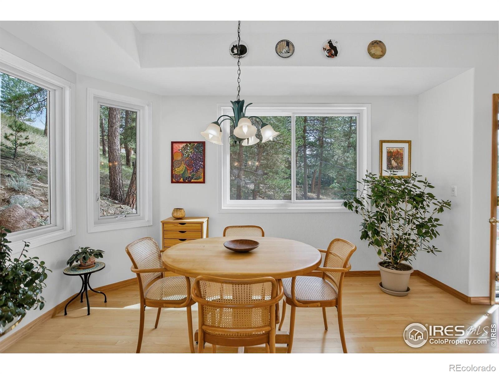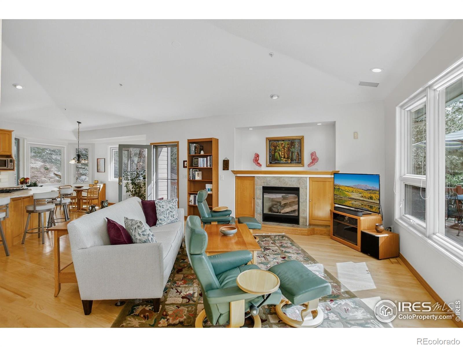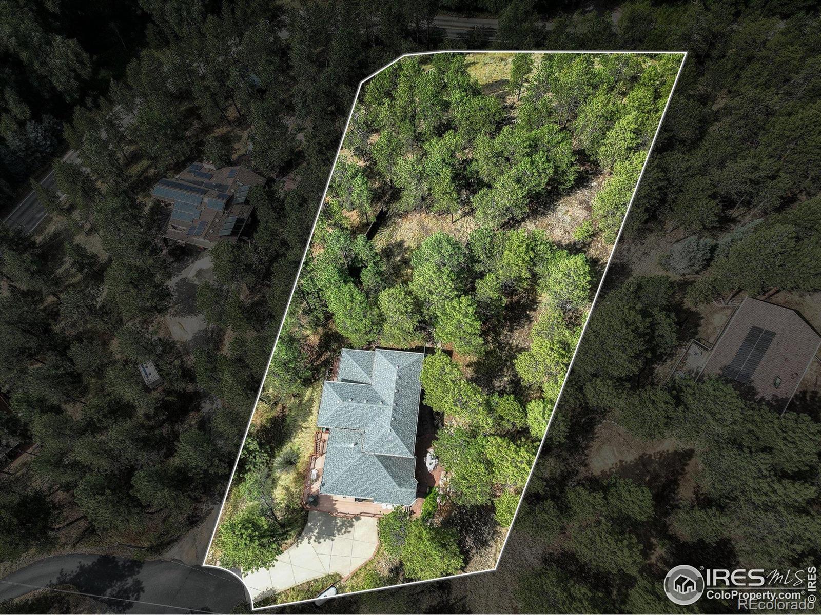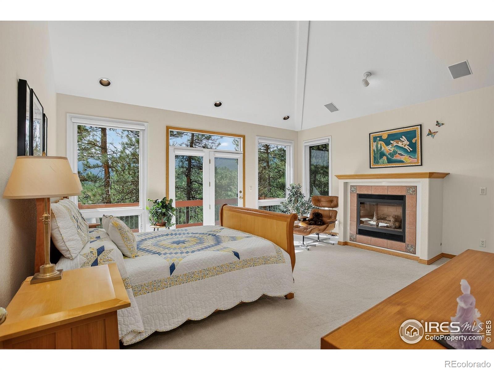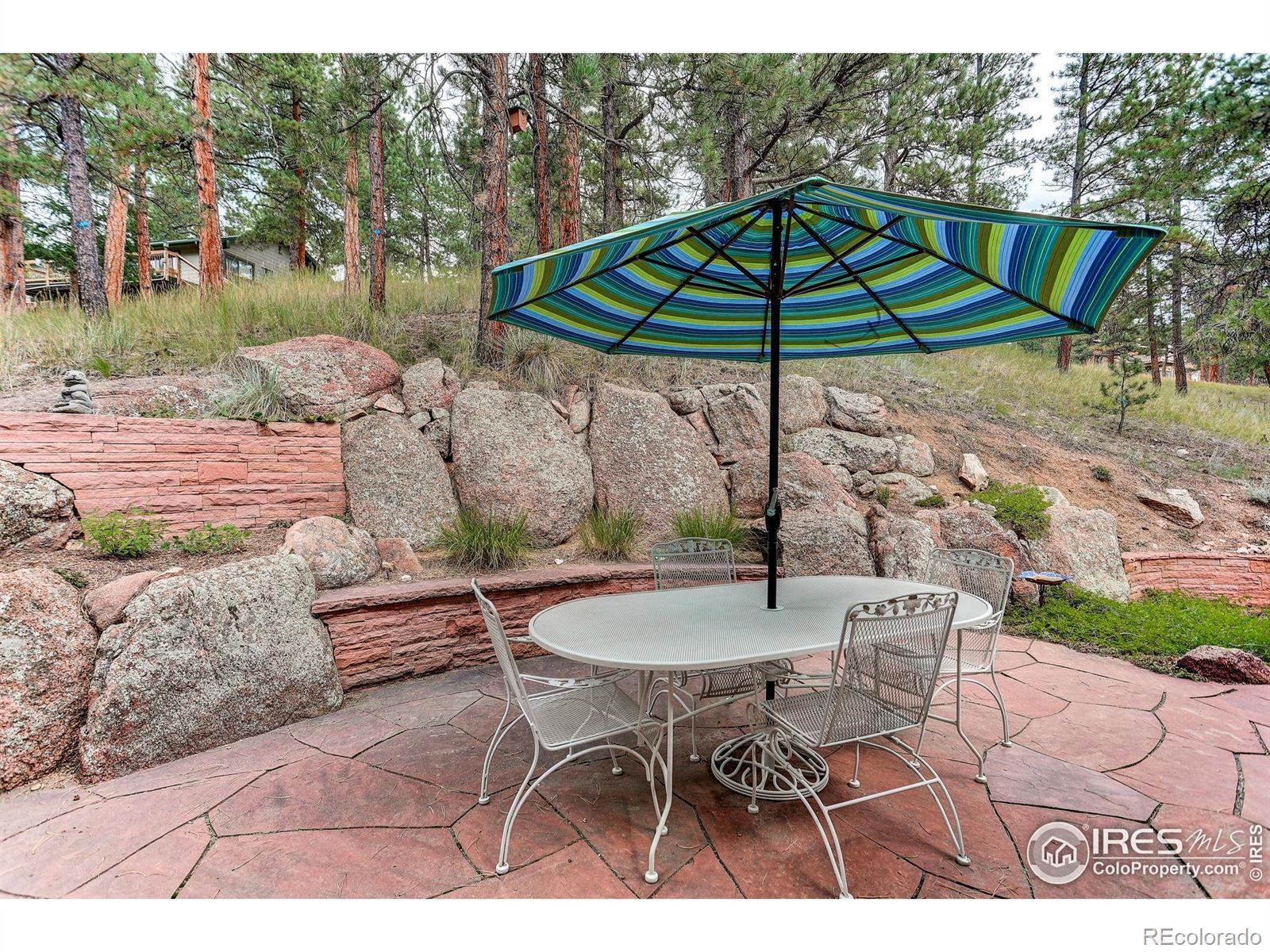 Meticulous Mountain Retreat Offered by the Original Owners. Set on over an acre with dramatic rock outcroppings, this well-cared-for home is surrounded by pink flagstone patios, stone walkways, and a wraparound deck designed for year-round outdoor living and entertaining. Inside, soaring ceilings and new windows with ideal southern exposure create a bright, open atmosphere. The main level features a spacious primary suite with deck access, two closets, including a walk-in, and a 5-piece bath with a jetted tub. The updated kitchen offers natural stone countertops, KitchenAid appliances, a glass tile backsplash, and a sunny breakfast nook flowing into the family room with a gas fireplace and wet bar. Upstairs are two secondary bedrooms that are spacious and bright. The walk-out lower level includes a light-filled office and recreation room. Recent updates include refinished white ash wood floors on the main level, a new furnace, new roof, and whole-house water filtration system. Added conveniences include a paved driveway, a partial-house generator, and easy access to both outdoor adventure and city amenities. With panoramic views, this home is just 10 minutes to Pearl Street Mall and moments from the 800-acre Betasso Preserve with hiking and biking trails-offering the best of mountain living close to town.