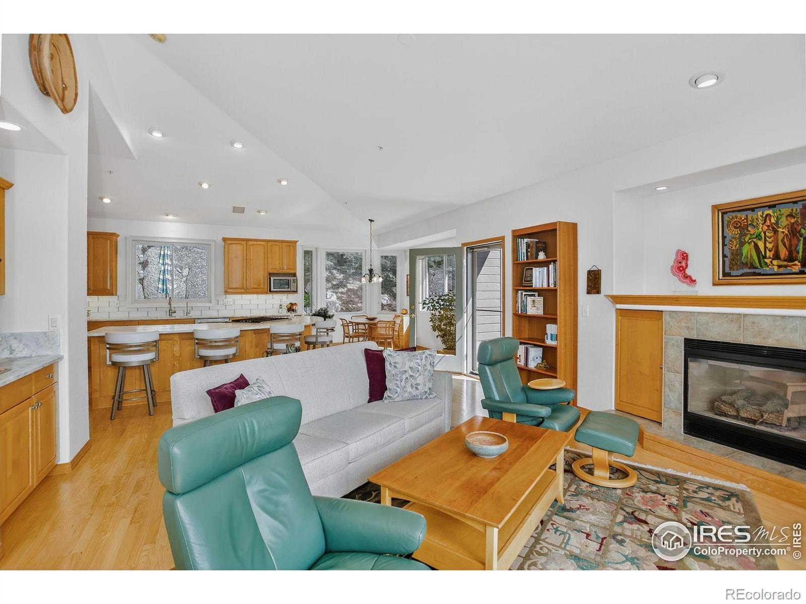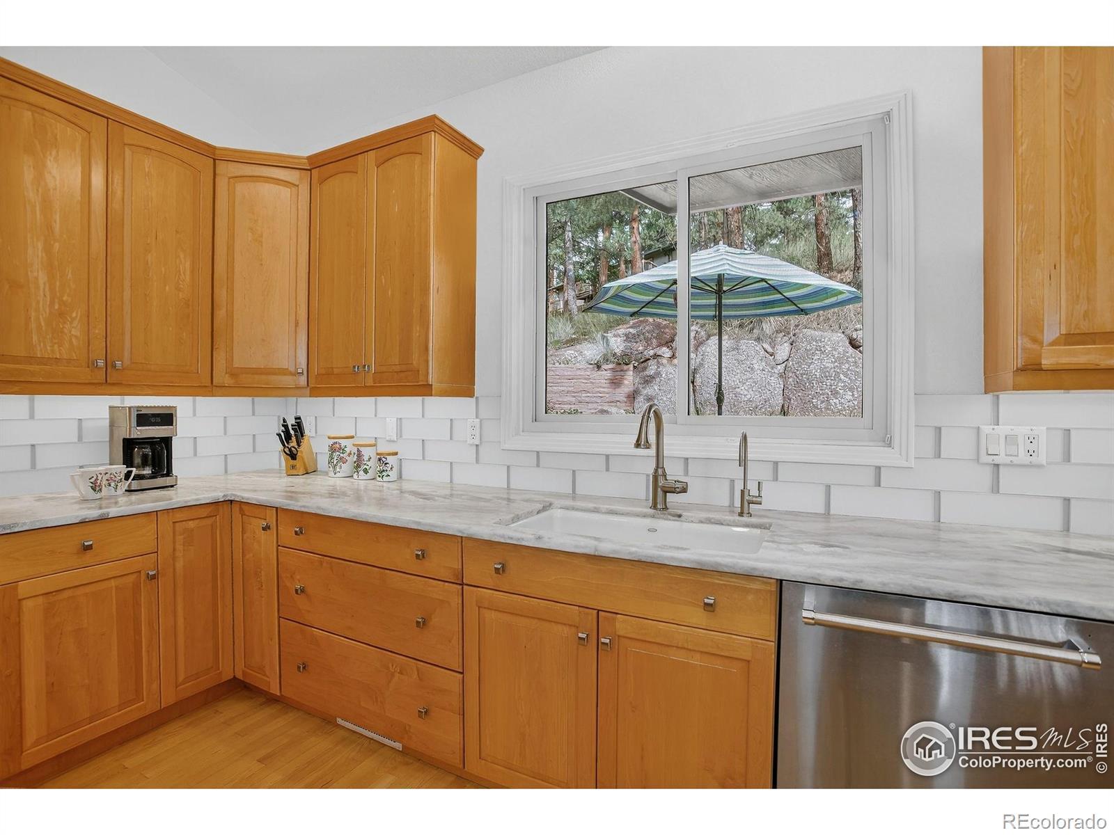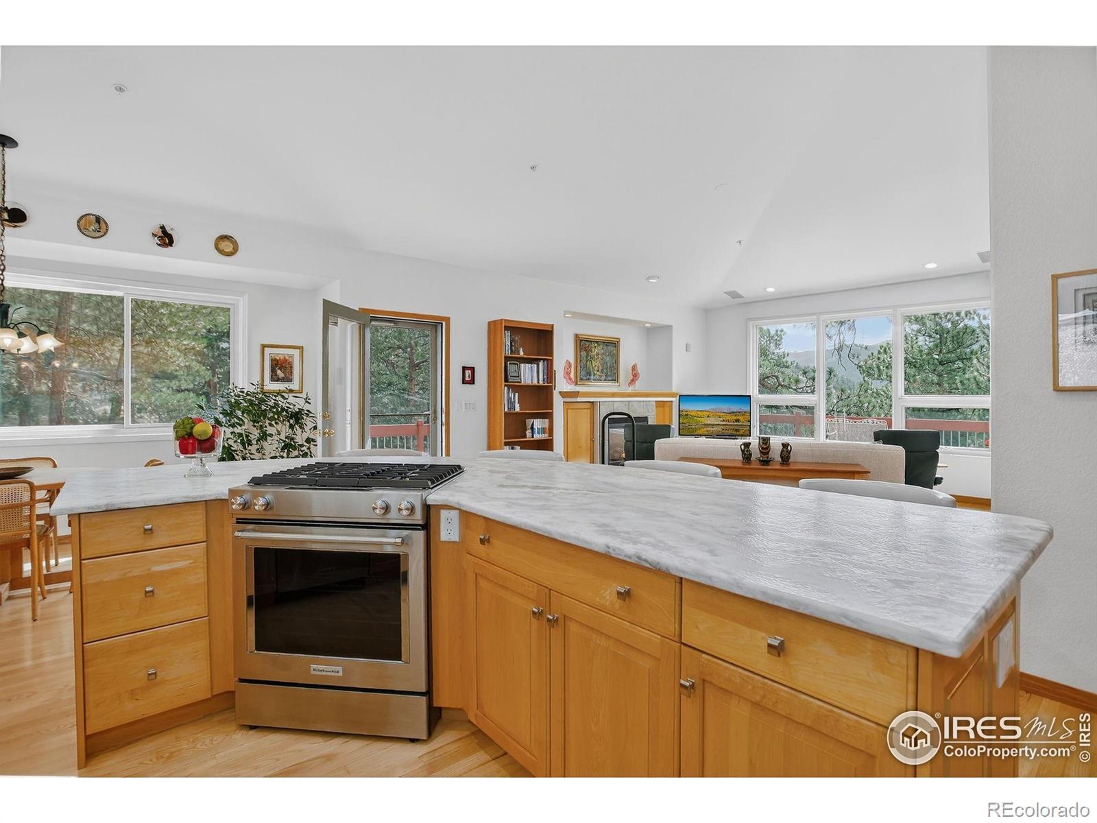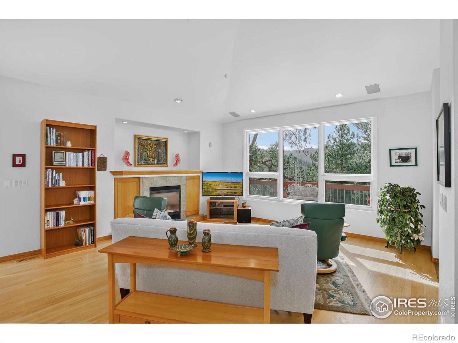Meticulous Mountain Retreat Offered by the Original Owners. Set on over an acre with dramatic rock outcroppings, this well-cared-for home is surrounded by pink flagstone patios, stone walkways, and a wraparound deck designed for year-round outdoor living and entertaining. Inside, soaring ceilings and new windows with ideal southern exposure create a bright, open atmosphere. The main level features a spacious primary suite with deck access, two closets, including a walk-in, and a 5-piece bath with a jetted tub. The updated kitchen offers natural stone countertops, KitchenAid appliances, a glass tile backsplash, and a sunny breakfast nook flowing into the family room with a gas fireplace and wet bar. Upstairs are two secondary bedrooms that are spacious and bright. The walk-out lower level includes a light-filled office and recreation room. Recent updates include refinished white ash wood floors on the main level, a new furnace, new roof, and whole-house water filtration system. Added conveniences include a paved driveway, a partial-house generator, and easy access to both outdoor adventure and city amenities. With panoramic views, this home is just 10 minutes to Pearl Street Mall and moments from the 800-acre Betasso Preserve with hiking and biking trails-offering the best of mountain living close to town.