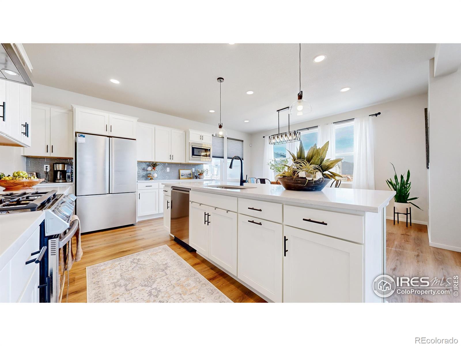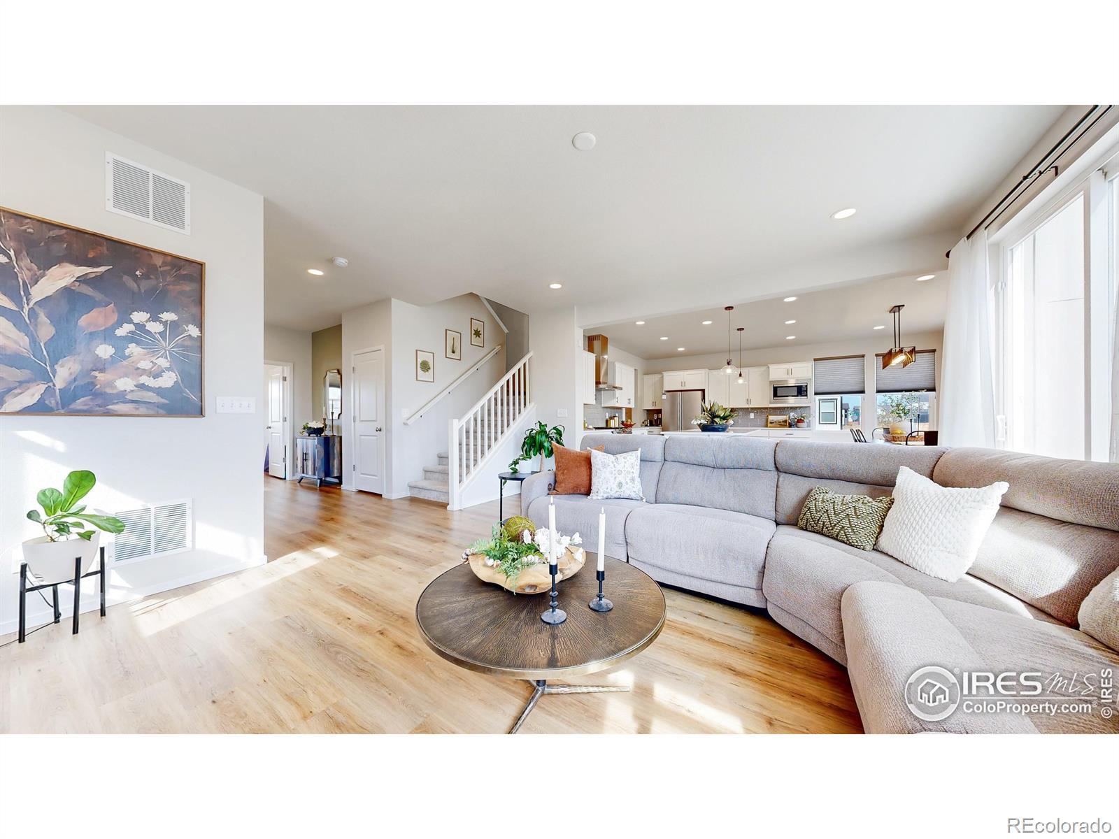 Welcome home to this show stopper & priced WELL below new construction in area.This stunning home has professional landscape included over $30k and premium lot location! Enjoy unmatched views from both the front & backyard! Step into this stunning 4bd/ 3ba popular Twain floor plan with main level office/den with additional upstairs loft in Timnath's prestigious Trailside community. Luxury living meets Colorado charm in an open-concept layout featuring high ceilings, Luxury vinyl plank flooring, and expansive windows to let in so much natural light.The gourmet kitchen is a chef's dream with professional-grade stainless appliances, huge work space on beautiful quartz countertops, gas range/oven and a massive center island with ample seating, flowing effortlessly into the great room perfectly equipped for entertaining. Easy access to the outdoor extended patio and great professionally landscaped backyard backing to community greenbelt with mountain views to enjoy summer nights. A main level office or flex space is conveniently located off great room area.Head upstairs to the well thought out upstairs living space.The spacious primary retreat is well appointed with vaulted ceilings a walk in closet & easy access to a great en~suite 3/4 bathroom with spa like finishes and large shower, dual vanities. 3 other generous sized bedrooms, loft & upstairs laundry make this a perfectly laid out home. Enjoy your front porch with wide open views to the park and open space areas across the street!Step just outside to experience the incredible neighborhood amenities, splash pad, park, scenic trails, pickleball courts, & a sparkling pool-all designed to complement an active and social lifestyle.Timnath Ranch/Trailside is known for its top-rated Poudre School District schools, and easy I-25 access to stores, restaurants, and other local NOCO cities nearby. Great lot location & price & in move in ready condition make this below market value home a WIN, and ready for quick possession!