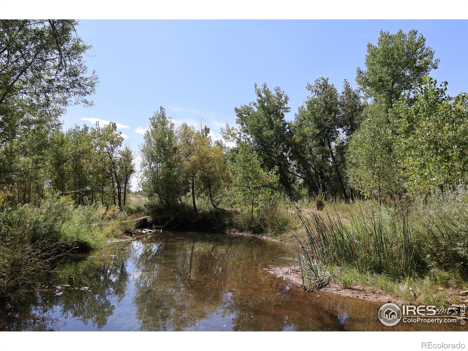 First time ever offered as a buildable parcel. 35 acres of peaceful country sanctuary with unobstructed spectacular Rocky Mountain views, a flat building envelope and the distinction of having the Little Thompson River meander through your property bringing abundant wildlife viewing opportunities. Paved road to your homesite currently being put in by developer. Fantastic parcel for having livestock, creating an equestrian focused estate or just tranquil soothing space surrounded by nature. This parcel is part of the future River custom home subdivision that has a total designation of 63% conservation easement to preserve unaltered habitat and serenity for all. No Metro taxes and not part of an HOA. Zoned AG. Alfalfa grows on a portion of the property perfect for grazing, possible cutting and baling or leave alone in its current state for local fauna and pollinators. Water rights to irrigate are available, ask agent for more info. A black metal fence will be installed on the property. This lot is conveniently located about two minutes to Highway 287, five minutes to Berthoud and nine minutes to Longmont. The land parcel comes with a credit of 2.2 CBT shares to be utilized toward raw water requirements for the Little Thompson Water District. Hawks, eagles, deer, elk, pollinators, fish, foxes and more visit the property. The building site has picturesque mountain views with soul inspiring sunsets; the calm of the river's flow babbles in the distance. Option to also put outbuildings or arenas on the conservation area for livestock/agricultural use. Enjoy summer Campfires looking up at the dark starry sky with an inspiring depth of the nighttime heavens. High speed fiber optics is being brought to the property. This unparalleled offering is the perfect blend of Colorado natural beauty and serenity, premium custom build living and close to Berthoud's amenities and community events. Don't enter property unless with Agent they have set up a showing due to construction.