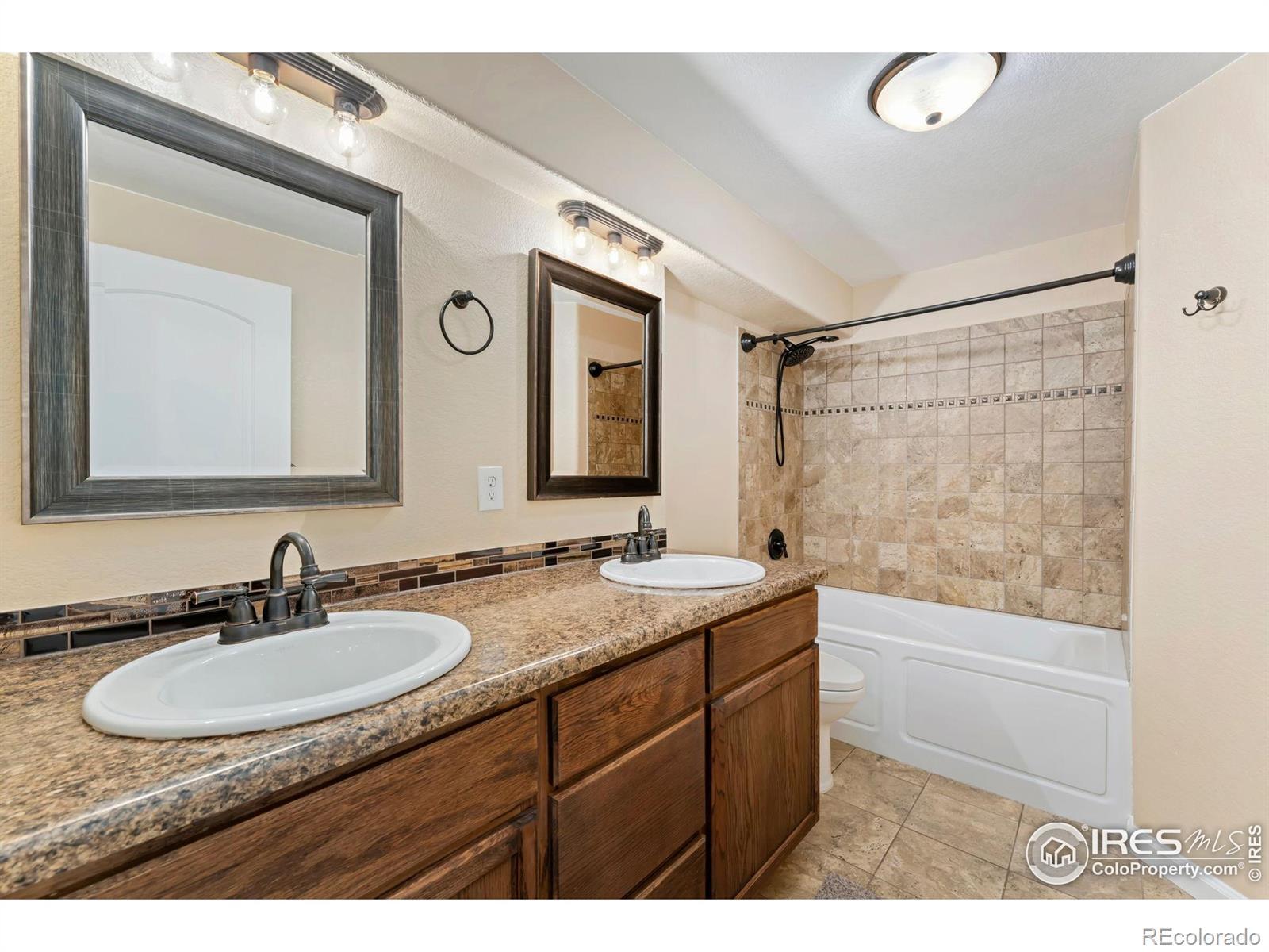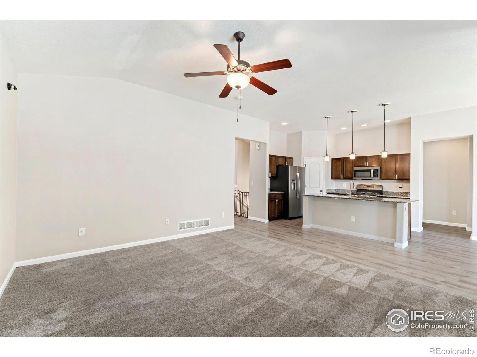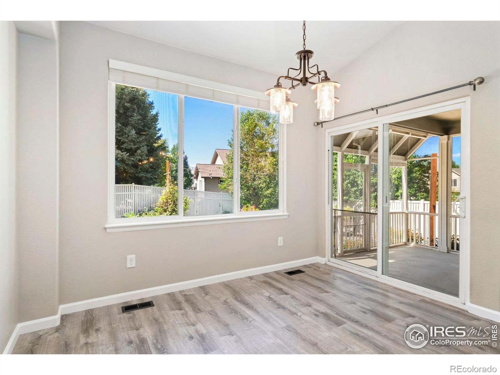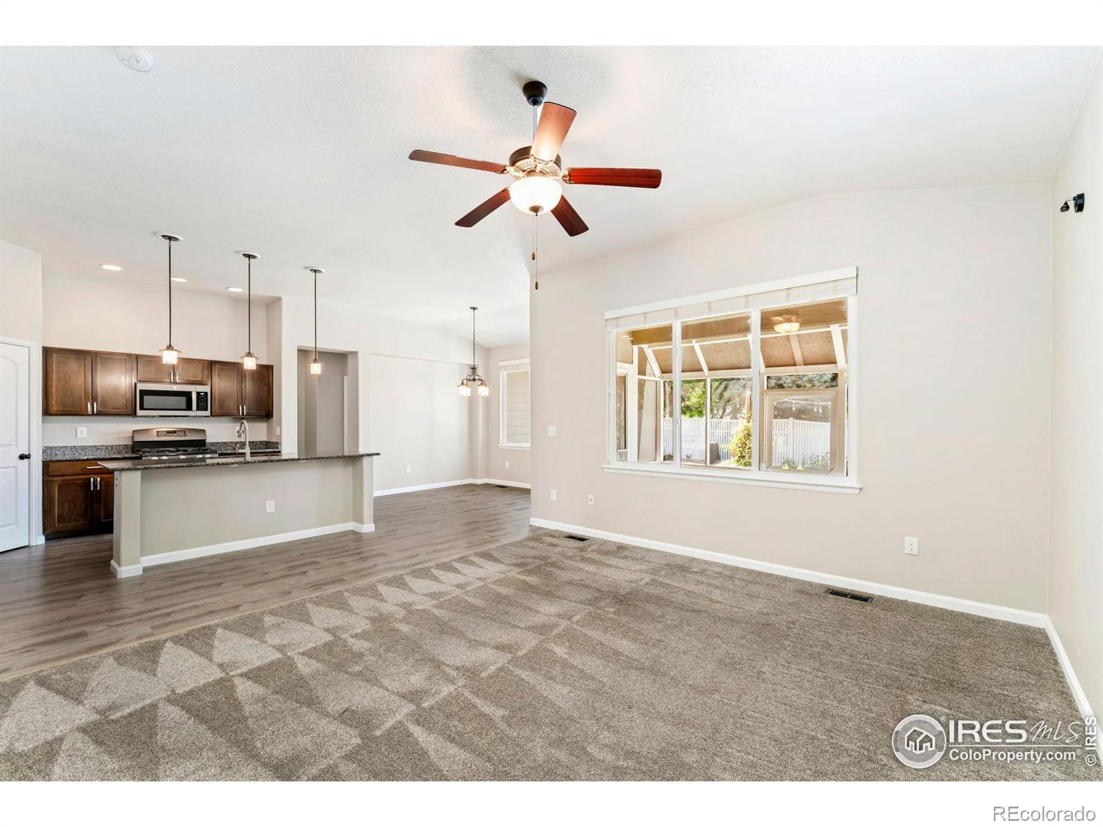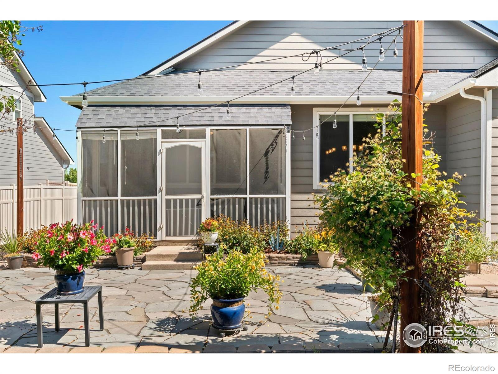 Nestled on a quiet street in Firestone's Mountain Shadows subdivision, this ranch-style home pairs modern updates with inviting spaces inside and out. Thoughtfully designed, it offers 5 bedrooms, 3 bathrooms, and a finished basement that enhances the home's comfort and versatility. An open layout defines the main level, where the kitchen, dining, and living areas flow together seamlessly. The kitchen features granite countertops and a gas range, while a screened-in porch off the dining room provides a natural extension of the living space and a gateway to the backyard. Here, fruit trees, built-in planter boxes, a flagstone patio, and a dedicated dog run create a setting that feels both cultivated and welcoming. The primary suite enjoys quiet separation from the secondary bedrooms and includes a walk-in closet and attached 3/4 bath. Fresh paint, new sinks, and an elegant quartz countertop give this retreat a polished feel. The finished basement features two additional bedrooms, a full bathroom, a wet bar, and a comfortable flex/rec room. With fresh paint in the bathroom and a versatile layout, this level provides space for guests, gatherings, or quiet downtime. Freshly painted baseboards and trim complete the updates throughout the home. Major improvements include a full roof replacement in 2023, a new central A/C with upgraded indoor system (2023), a new dishwasher (2024), and a new microwave (2025). With nearby access to Mountain Shadows Park - complete with playgrounds, open space, walking trails, and the community's new bike park & pump track - this home combines thoughtful updates with a setting designed for everyday enjoyment.