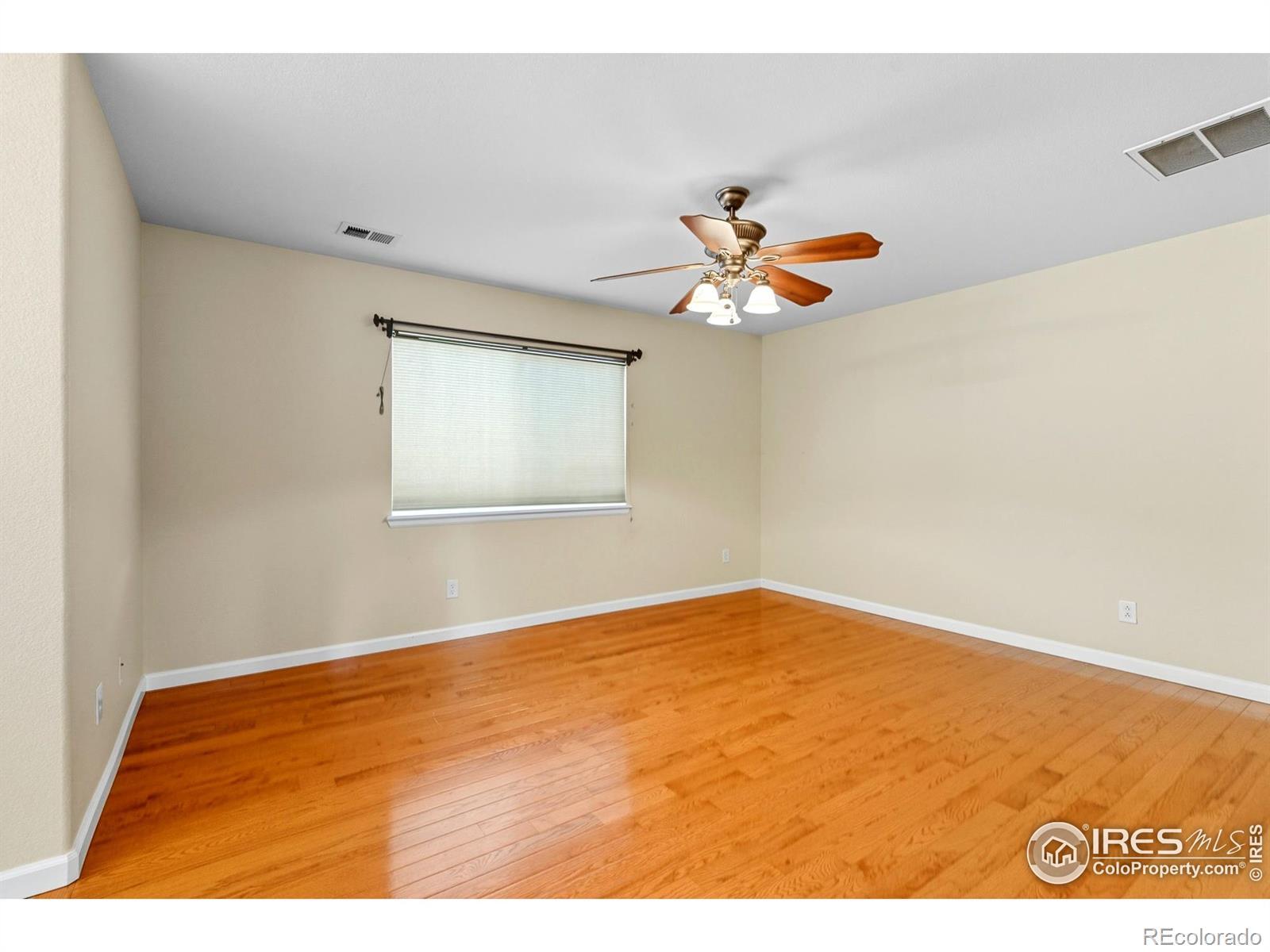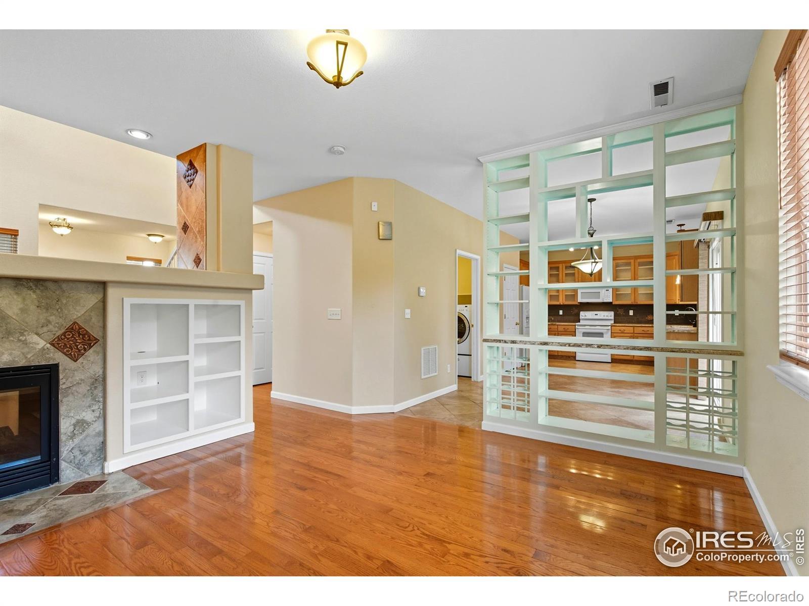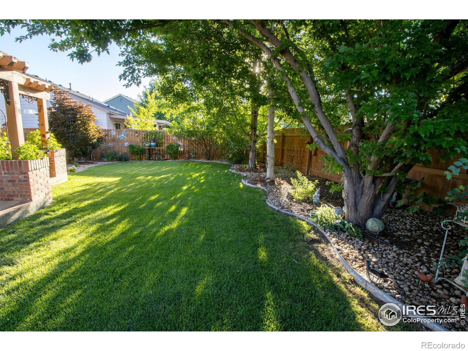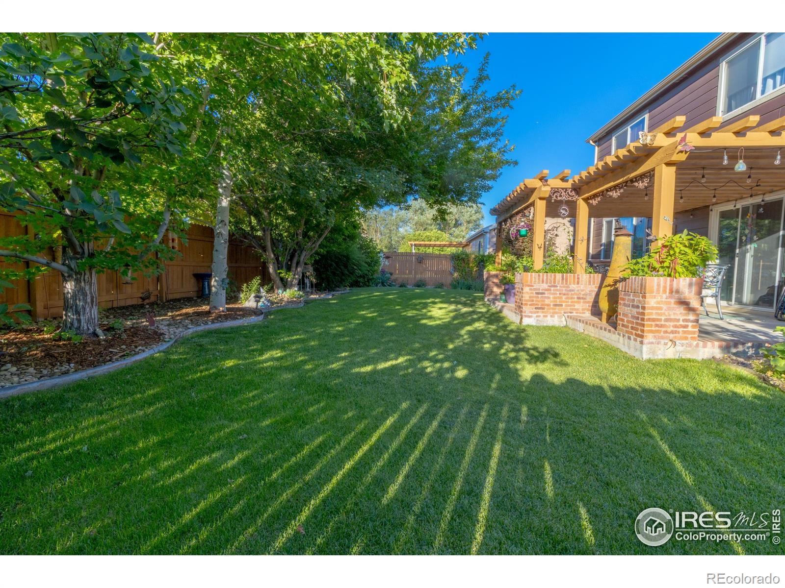 Welcome home! Step inside and see the pride of ownership throughout this 3 bedroom home. Inside you will be met with beautiful hardwood floors and a cozy double sided fireplace. Custom built in shelves give ample room for decor and storage in the family room. The large eat in kitchen features upgraded granite countertops, lots of cabinet space and a large window over the kitchen sink. Upstairs you will find the spacious loft area with more built in shelving! The primary bedroom is equipped with hardwood floors and and attached full bathroom. Another full bathroom and 2 more bedrooms complete the 2nd floor. The backyard is the stuff dreams are made of! Enjoy the private large patio, pergola and large mature trees. Years of thoughtful planning and planting went into this backyard oasis to make it a peaceful relaxing retreat, right outside the back door! With easy access to I-25, and it a lovely community, this home in Sharpe Farms is a must see!!!