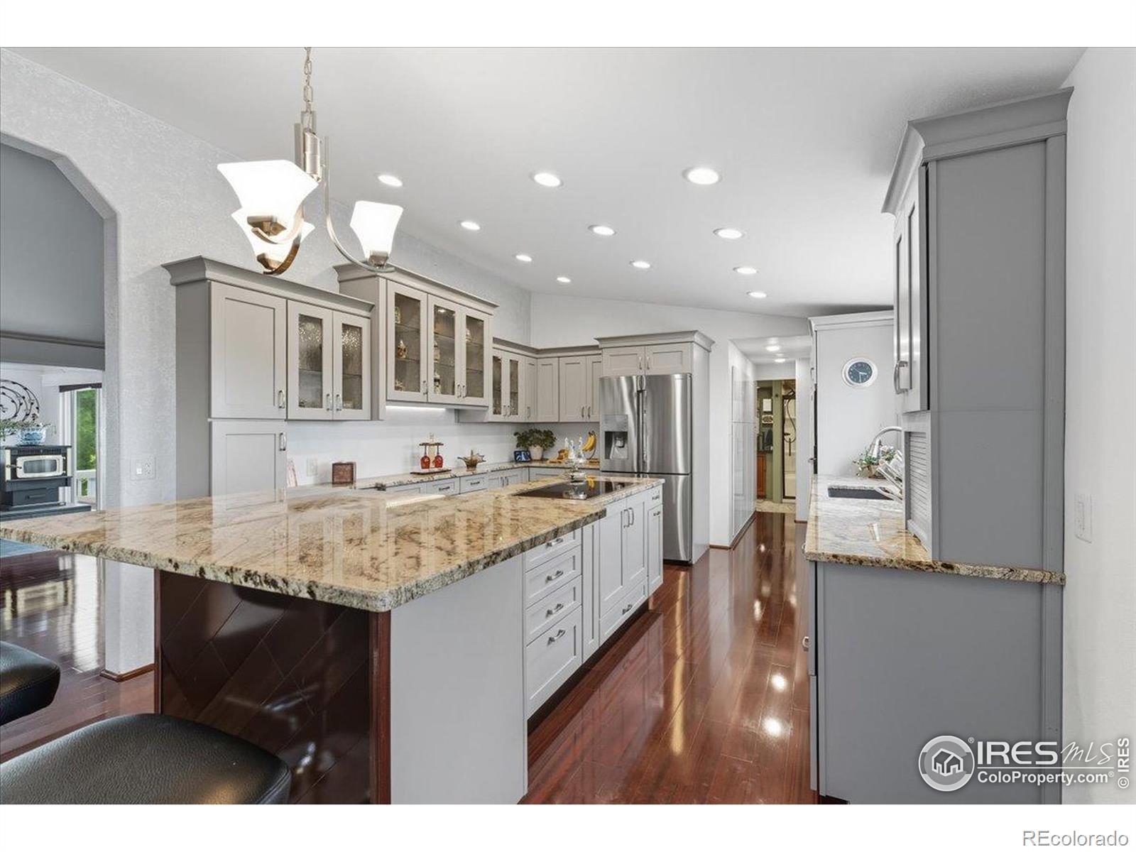 Experience the rare combination of sweeping mountain views and in-town convenience with this one-of-a-kind property, just 10 minutes from Downtown Fort Collins and around the corner from the new Glade Reservoir. Parking and storage are abundant: an oversized attached 3-car garage, detached 2-car garage, carport, and an impressive 3000 sq ft detached PARADISE shop with huge 400 sq ft attached tool room. The income potential is unmatched! Shop sits on a slab poured with over 6" of reinforced concrete-strong enough to support 5 charter buses, & includes full electricity. This property has 200 amp electrical service & the shop alone has 125 amp. Perfect for business use, heavy equipment, or serious hobbyists. 50/30 amp RV plugs, and 220 plug for air compressor. Full RV site complete with water, sewer & electric. Set on a spacious lot with mature landscaping and a tranquil pond, the outdoor spaces are designed for both beauty and functionality. The home is built to last, featuring a durable steel roof and updated windows. Inside, the main level shines with LifeProof luxury flooring-stylish, durable, and low maintenance. Easy rise stairs for maximum accessibility. The remodeled kitchen features custom cabinetry w/ pull-out shelves, abundant pantry space, appliance garage, granite countertops, five-burner inset cooktop on island, and above-cabinet lighting. It flows into a bright living room with framed mountain views and a built-in water feature. The primary suite offers a west-facing picture window, walk-in closet, and custom built-ins. The terrace-level basement is ideal for multi-gen living with separate, private entrance, courtyard, pellet stove, wet bar, 2 bedrooms, laundry hook ups and full bath. Enjoy covered patio(s), a dog run, and 2 fenced yards perfect for play, gardening, or relaxing. Smart features like sprinkler timers & smart plug waterfall add ease to everyday life. A rare opportunity! Please reference additional property remarks document in MLS.
