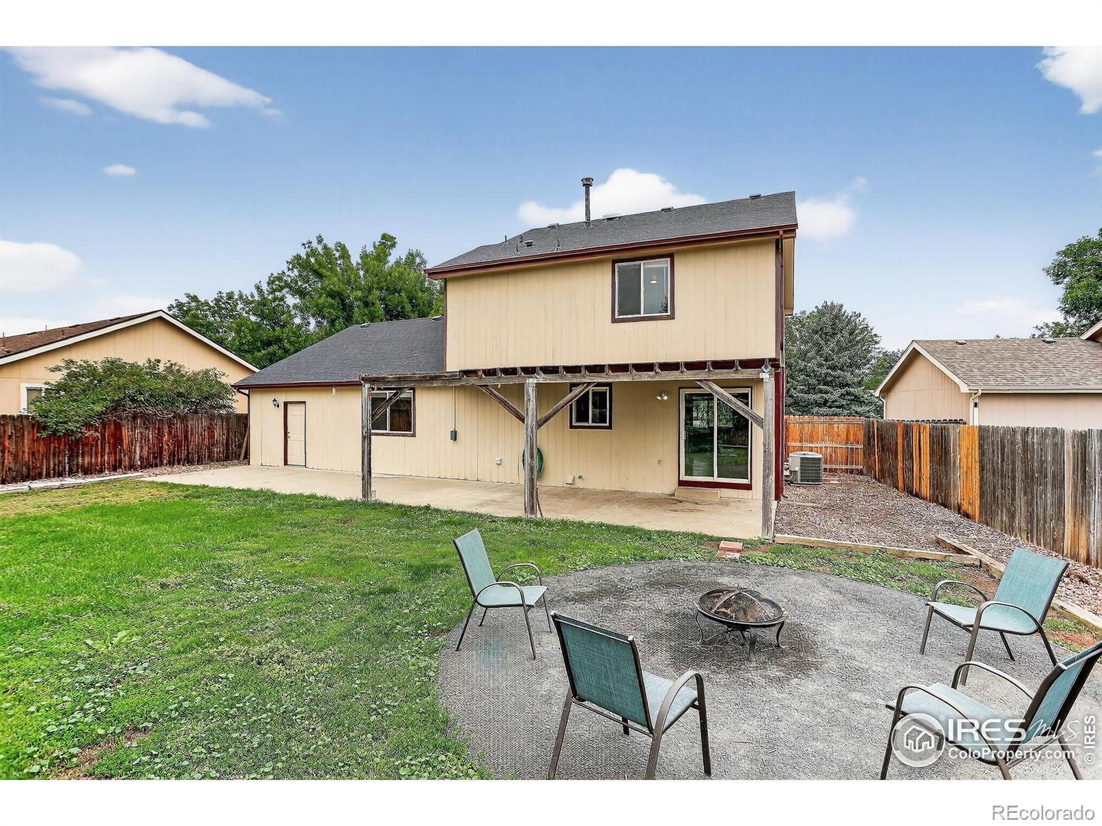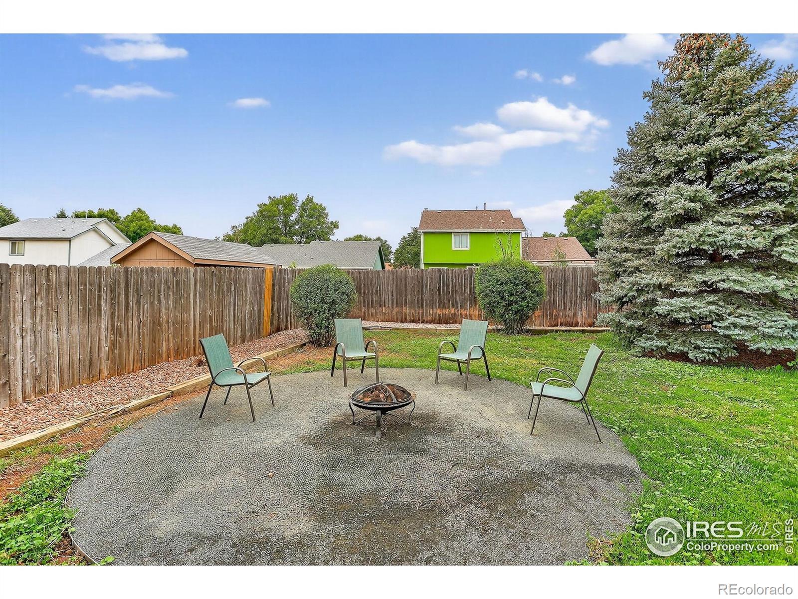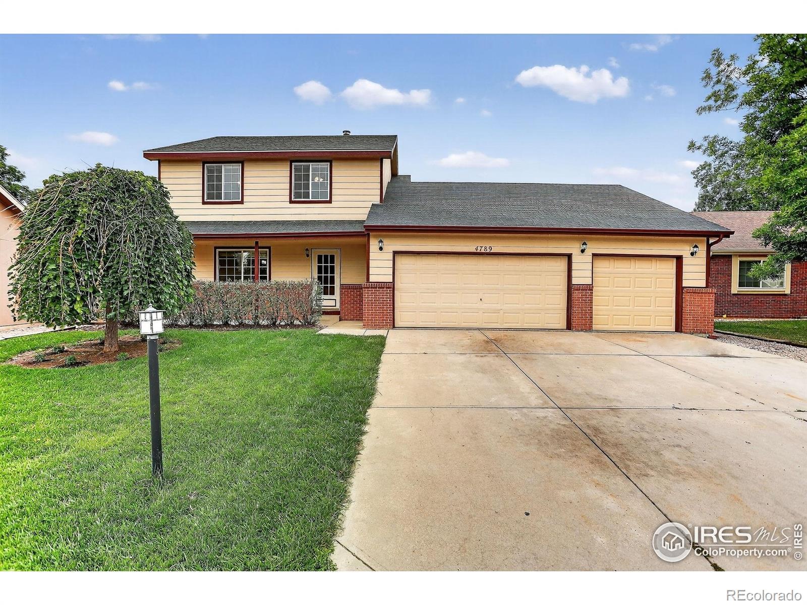 Fantastic four bedroom, three bath two-story in north Loveland featuring an oversized 3 1/2 car garage, brand new A/C unit 2024, freshly painted interior, new electrical outlets throughout with USP ports in primary and 2nd bedroom, laminate wood flooring throughout main, staircases and 2nd floor hallway, stainless appliances, gas range/oven, separate living/family rooms, full primary bath, sprinkler system, ceiling fans in upstairs bedrooms and huge covered patio, fire pit and 11'x11' storage shed in backyard. Ideally located near Horseshoe and Boyd Lake, Centennial Park and Orchards shopping. No monthly HOA dues (one time $250 paid at closing).