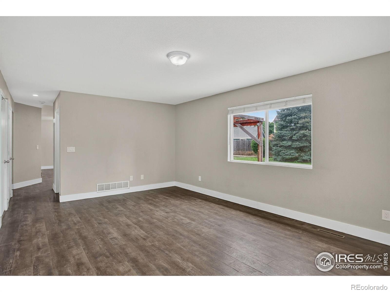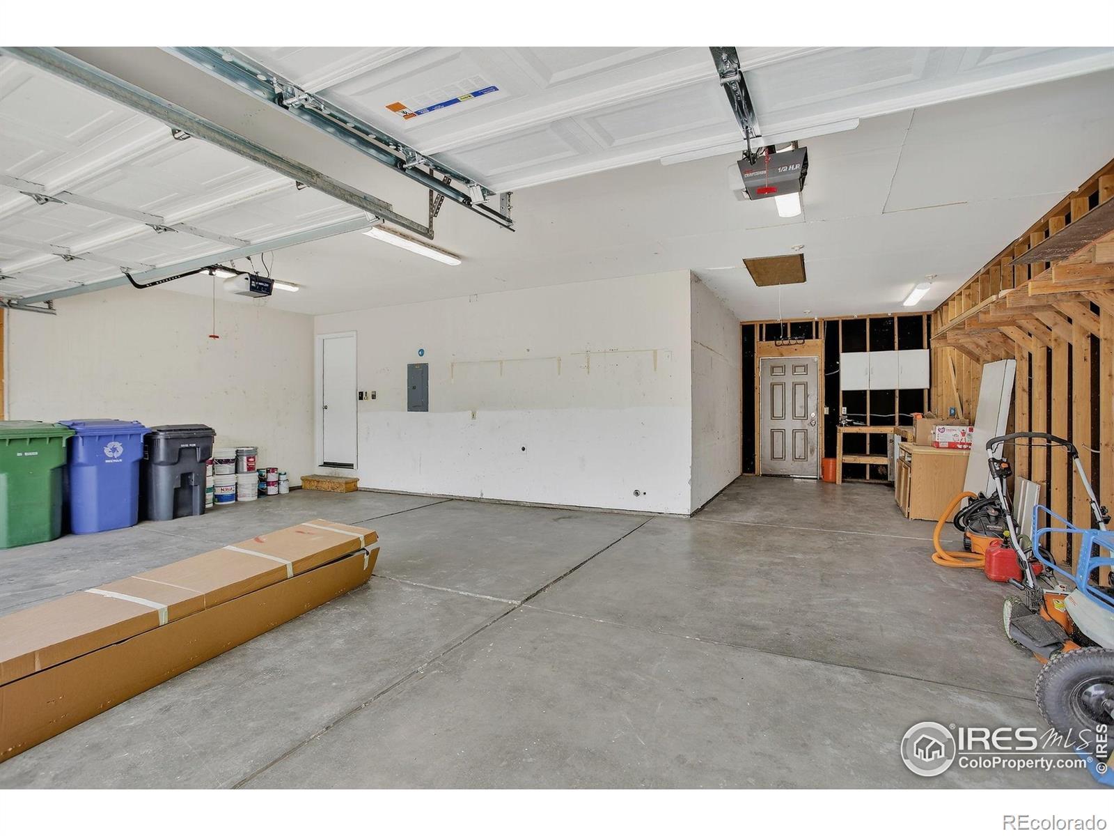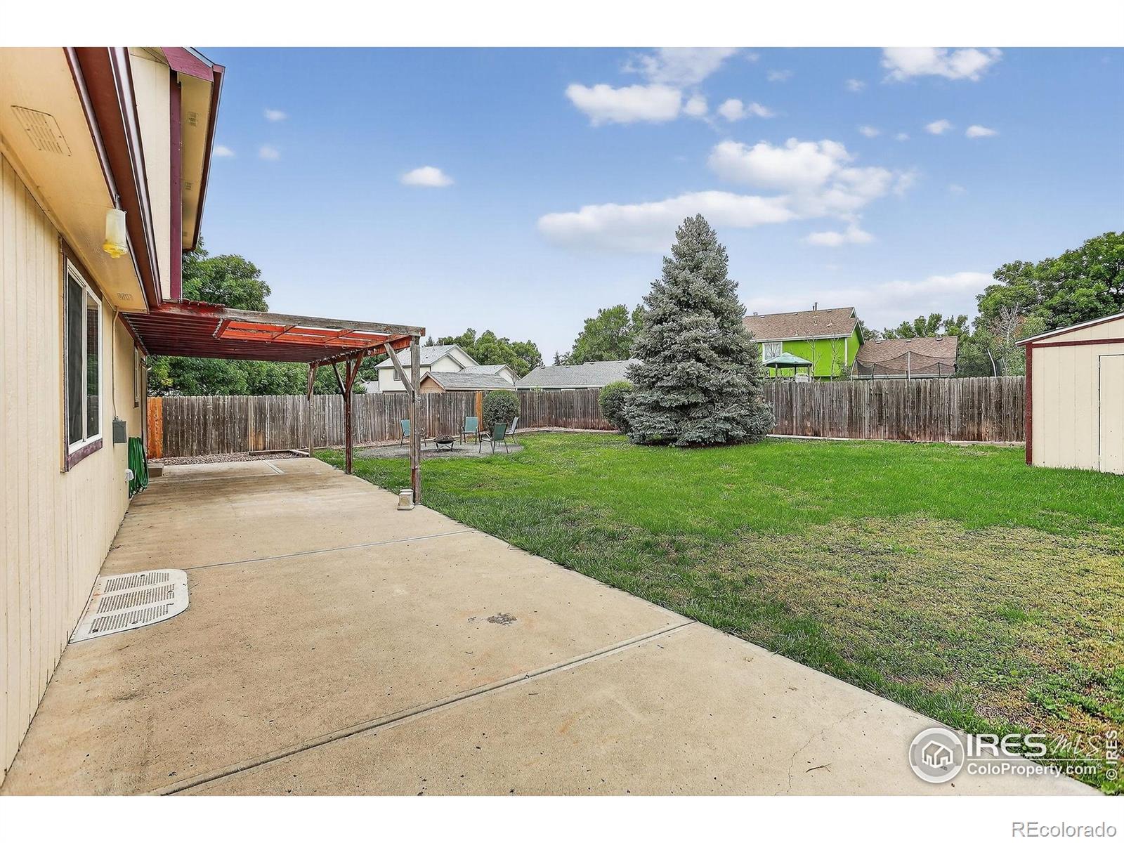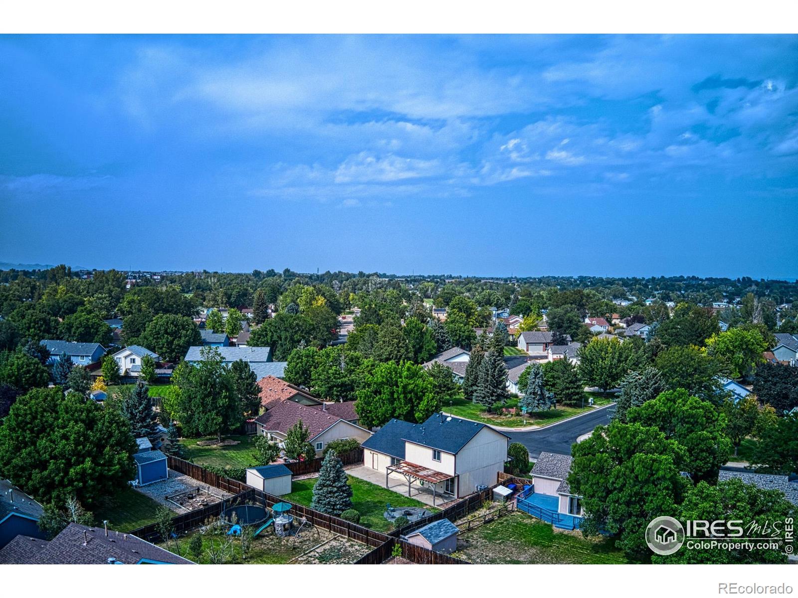 Fantastic four bedroom, three bath two-story in north Loveland featuring an oversized 3 1/2 car garage, brand new A/C unit 2024, freshly painted interior, new electrical outlets throughout with USP ports in primary and 2nd bedroom, laminate wood flooring throughout main, staircases and 2nd floor hallway, stainless appliances, gas range/oven, separate living/family rooms, full primary bath, sprinkler system, ceiling fans in upstairs bedrooms and huge covered patio, fire pit and 11'x11' storage shed in backyard. Ideally located near Horseshoe and Boyd Lake, Centennial Park and Orchards shopping. No monthly HOA dues (one time $250 paid at closing).