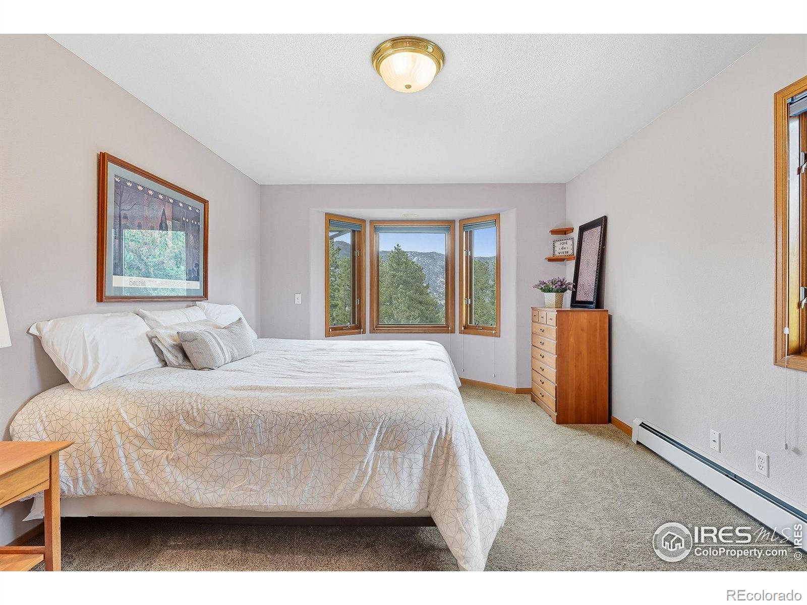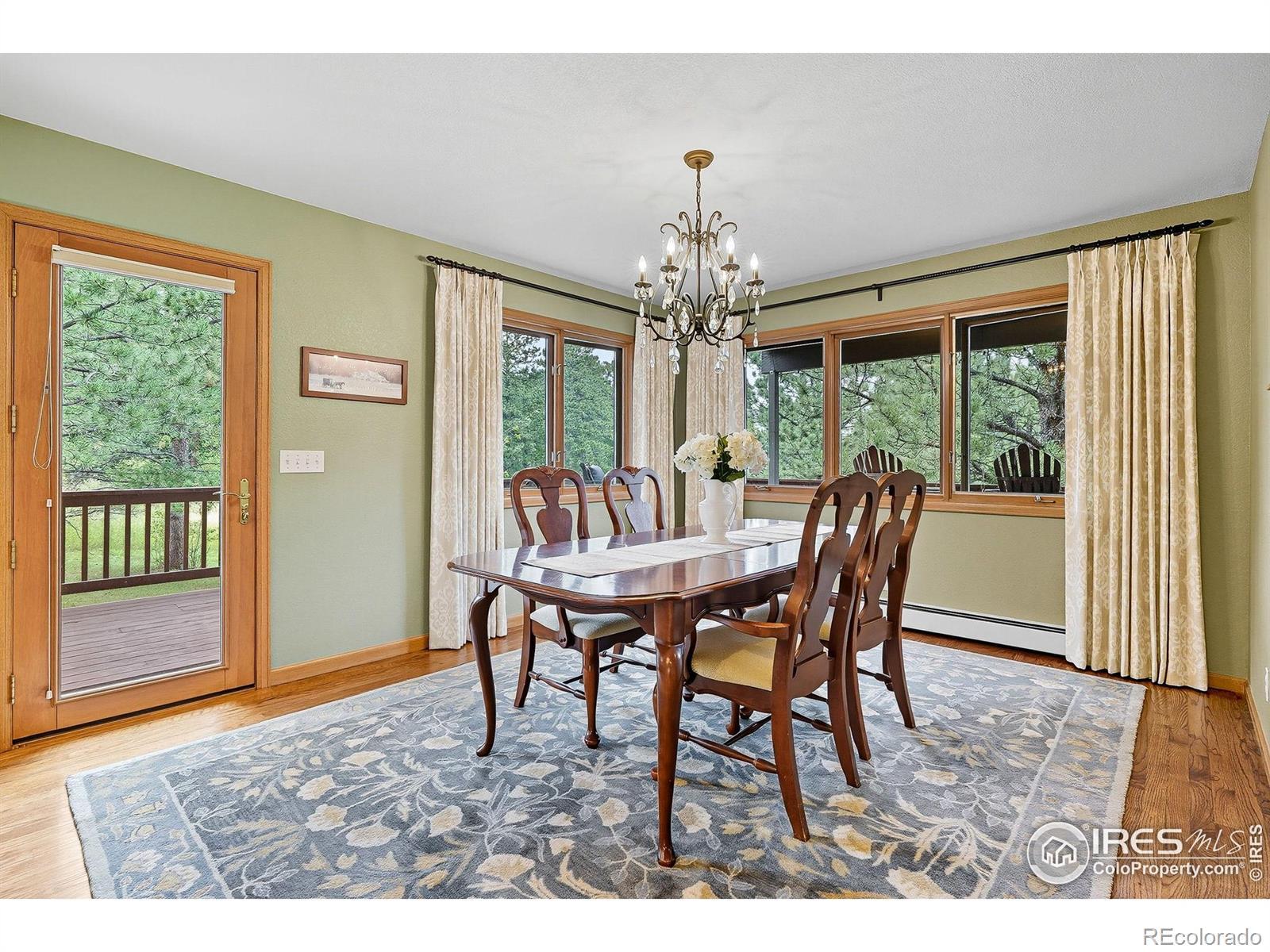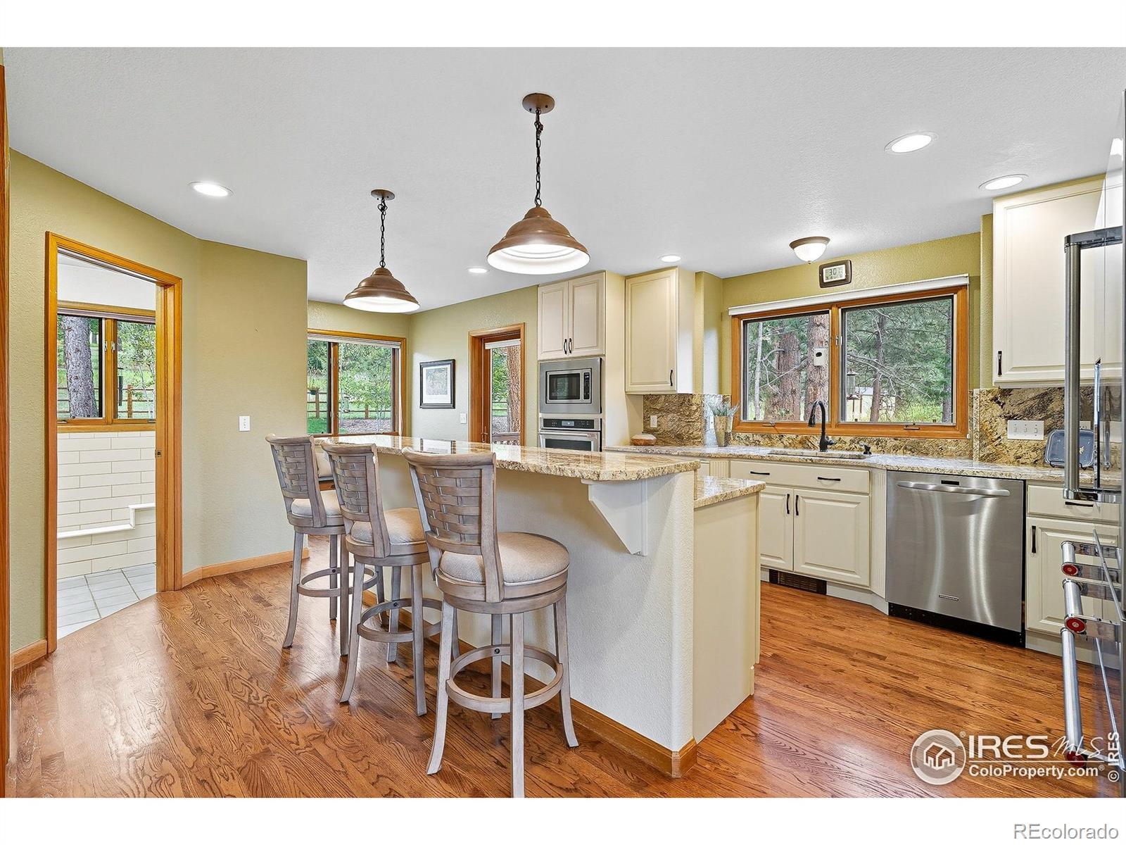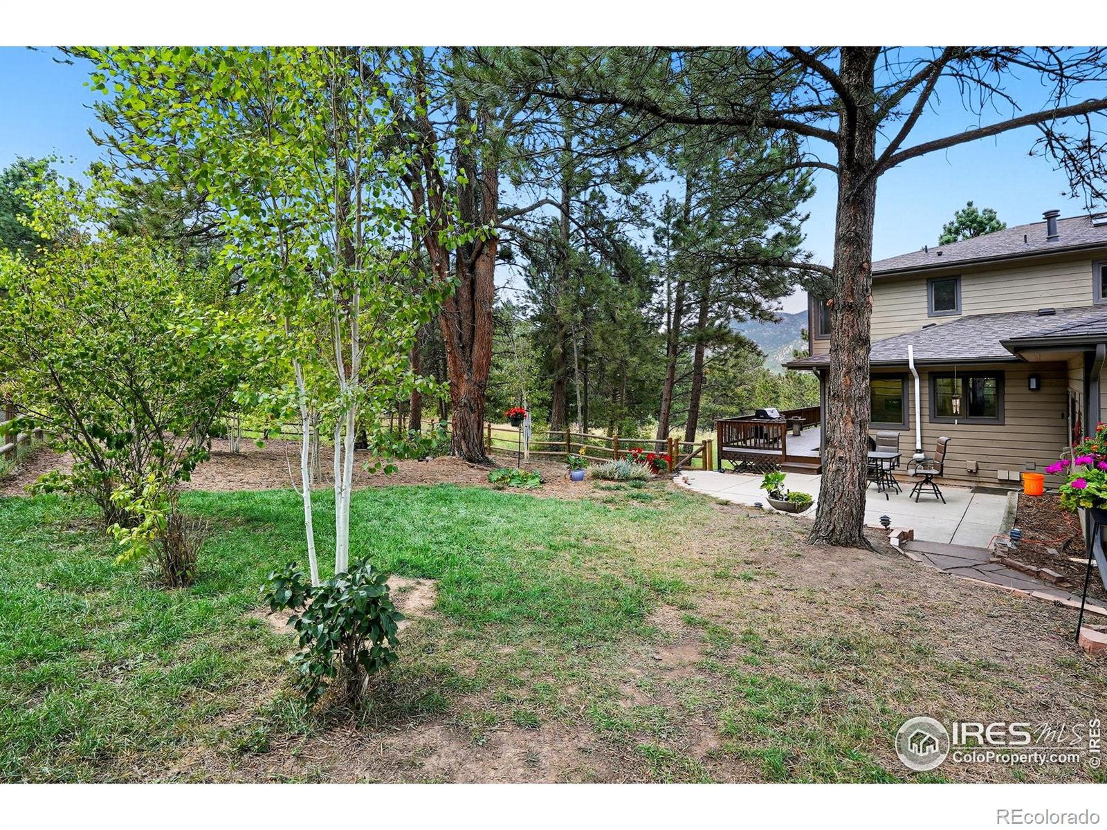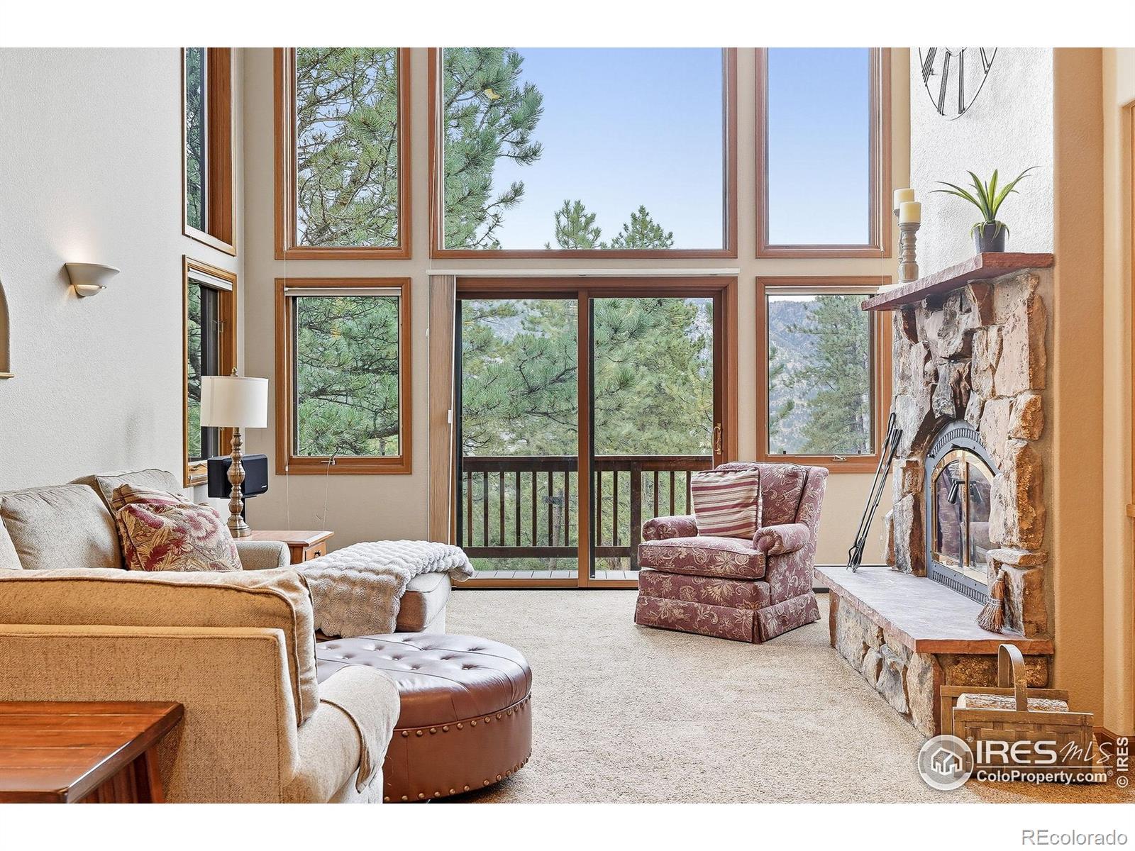 Nestled in the serene mountains just outside Lyons, this lovely home offers breathtaking views and visits from local wildlife, creating a pine-scented sanctuary! The main level features a great room with a wall of windows that frames the picturesque pines, allowing natural light to flood the space. The updated kitchen boasts granite countertops, modern appliances, and ample room for entertaining family and friends. A cozy wood-burning fireplace serves as the heart of the home, providing warmth and ambiance during the colder months. The light-filled office offers an inspiring workspace, perfect for remote work or creative endeavors. The expansive 1,000+ sq ft wrap-around deck extends your living space, while hanging swings create ideal spots for outdoor gatherings and peaceful relaxation. Upstairs, you'll find three bedrooms, including a primary suite with a large walk-in closet and its own private deck. The luxurious en-suite bath is well-equipped with a soaking tub and a glass-walled shower. Downstairs, the fully finished walkout basement presents an excellent investment opportunity with an additional bedroom, bathroom, living space, and kitchenette that can be utilized as an au pair, MIL, or short-term rental accommodations. The home sits nicely centered on a 2-acre lot, lovingly landscaped with the mountains as a gorgeous backdrop. Additional features include a three-car garage, a new roof (2025), a newer water heater, a radon mitigation system, and a fenced-in dog run, ensuring peace of mind for years to come. Situated in community oriented neighborhood that values connection, this property is free of HOA restrictions, while the voluntary road association adds additional benefits for homeowners. With easy access to the charm of both Lyons and Estes Park, your new home is ideally located for your next outdoor adventure!