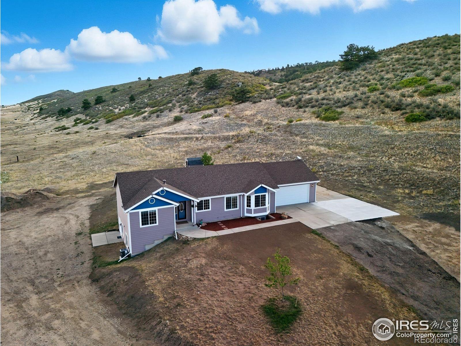 Exceptional 20-acre foothills retreat just minutes from town! This newly remodeled ranch with walk-out basement offers breathtaking views of Devils Backbone, Horsetooth Rock, and the valley below. Perfect for multi-generational living with 5 bedrooms, 2 offices, and flexible spaces. The open-concept kitchen features granite counters, a huge pantry, new appliances, and plenty of storage. Relax in the spacious primary suite, enjoy evenings on the deck with pergola, and take advantage of the walk-out basement for additional living or recreation space. Bring your RV, toys, pets, and livestock - with no HOA or covenants, you have true freedom. Recent updates include: new flooring, remodeled bathrooms, fresh paint, garage door, water heater, and more. Pre-inspection has already been completed for buyer peace of mind. A rare opportunity to own acreage with privacy, wildlife, and mountain views - all just 7 minutes from town!