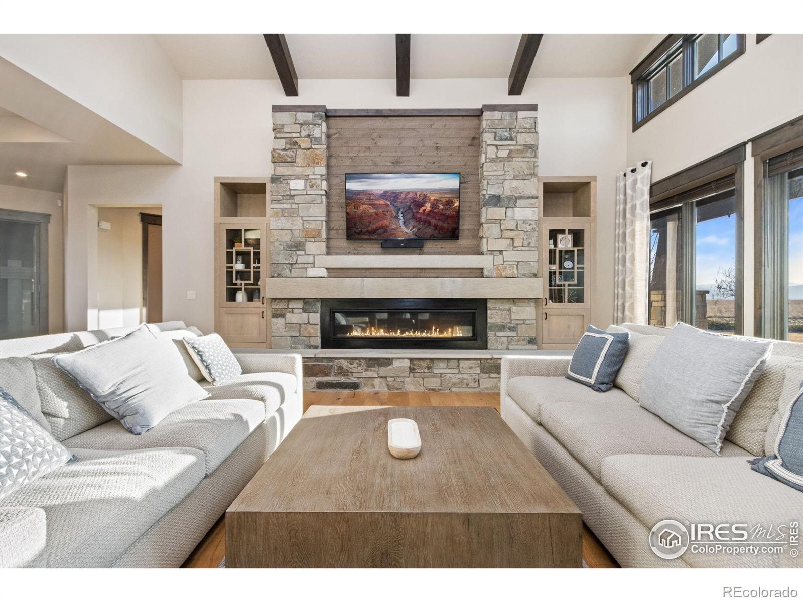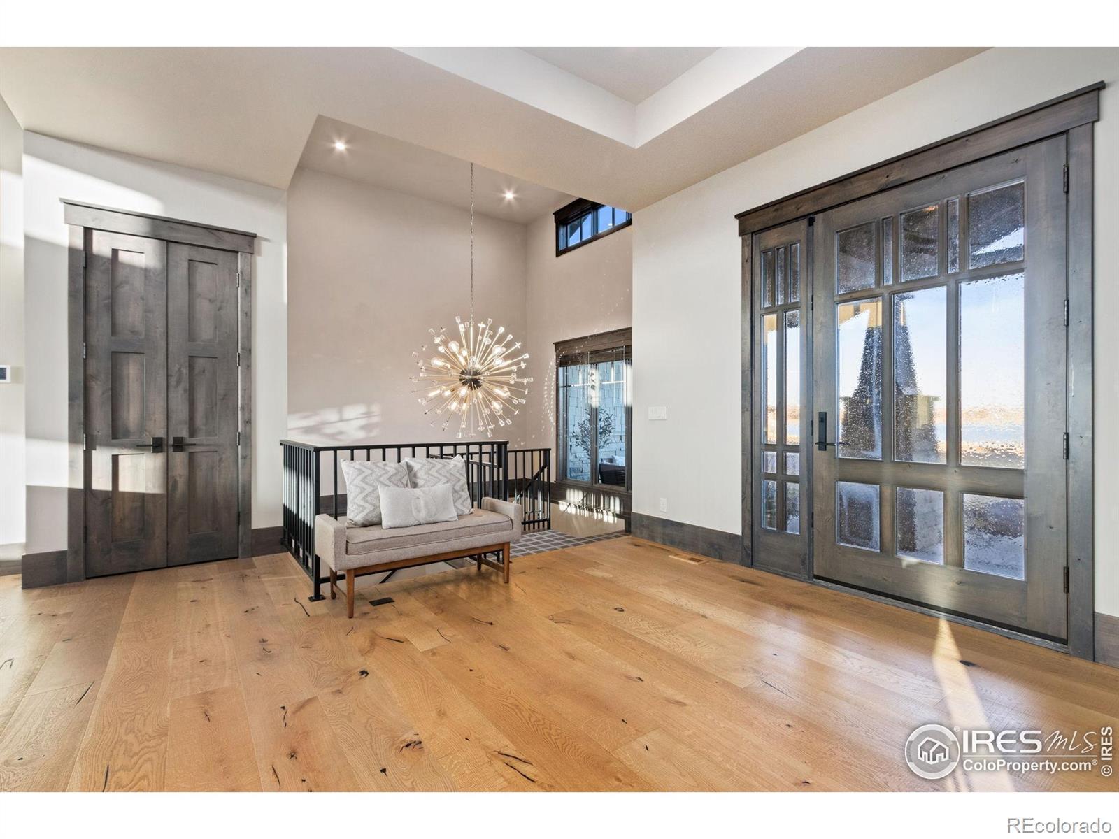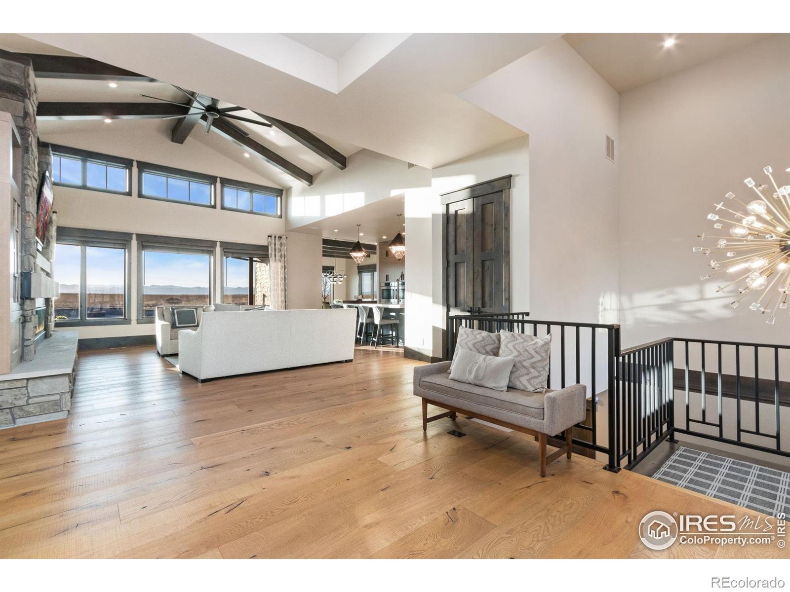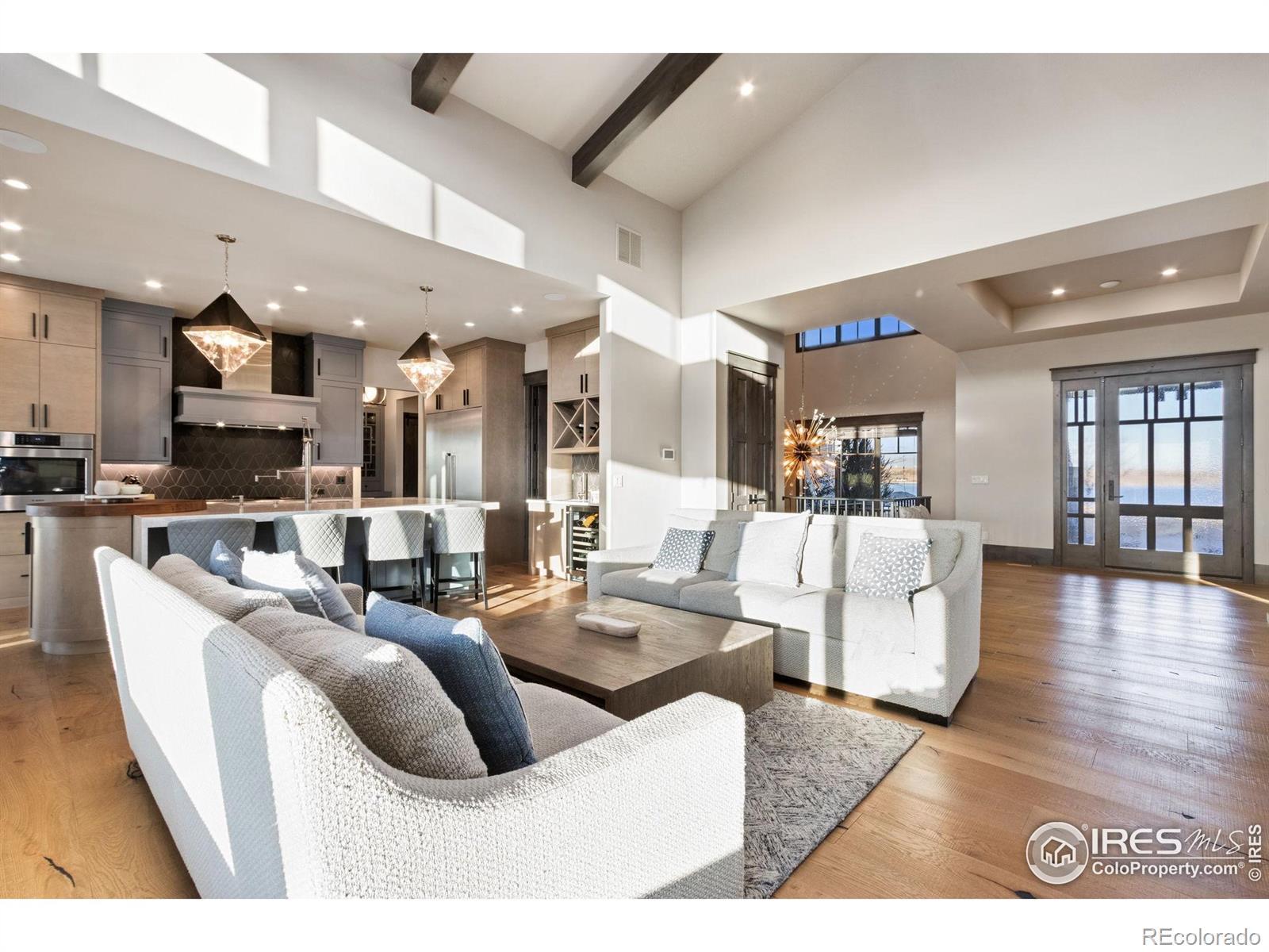 Here's your chance to own a stunning, custom home w/ unobstructed mountain views! Located in the prestigious and desired Hill at Cobb Lake, this home is your idyllic Colorado estate home blending mountain and modern elements seamlessly. Situated perfectly on a 2 acre lot, enjoy picturesque views of the Rocky Mountains to the West and lake views to the East. From the moment you enter, fall in love w/ the design and craftsmanship - beautiful wide-plank hardwood floors, hand-troweled drywall, vaulted ceilings w/ exposed beams, 8' solid knotty alder doors, large profile stained wood trim, oversized stone floor-to-ceiling living room fireplace surround w/ stone mantle, designer light fixtures, expansive ceiling height and large windows allowing for natural light to "coat" the interior. 100% main floor living features dual ensuite bedrooms both w/ direct access back patio, and private office w/ it's own fireplace. Incredible primary bathroom w/ European style "wet room" and heated floors. Gourmet kitchen w/ Thermador 6 burner top, large granite island + butcher block, custom cabinets + dining room w/ expansive windows to watch Rocky Mountain sunsets. Finished basement features 10' ceilings, wet bar, media room, a third fireplace, and (3) additional bedrooms all w/ private bathroom access. Oversized 4-car attached finished garage w/ epoxy floor, custom cabinets, and Tesla EV charger. Don't miss the unique she-shed/artist den! Truly one of the most premier homes on the market today!