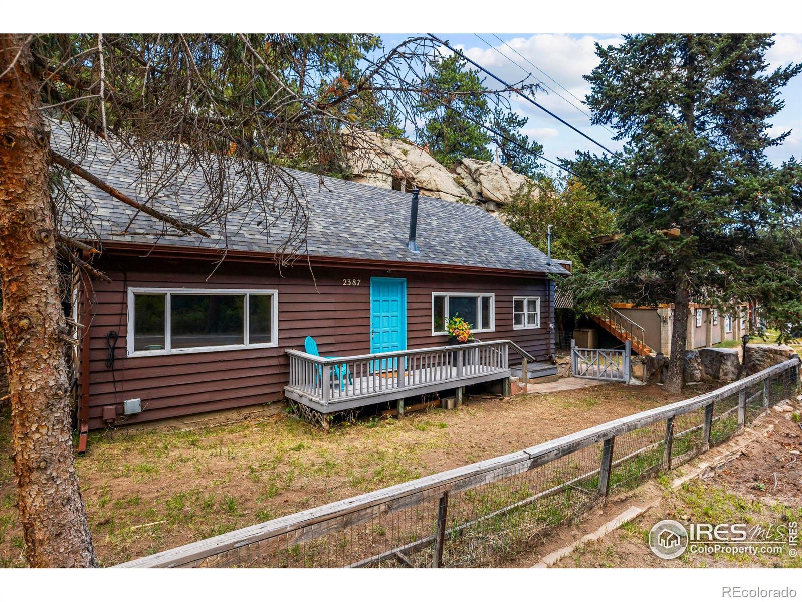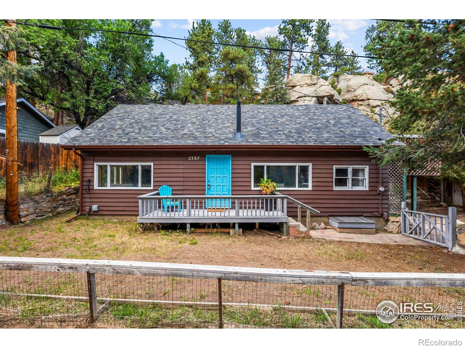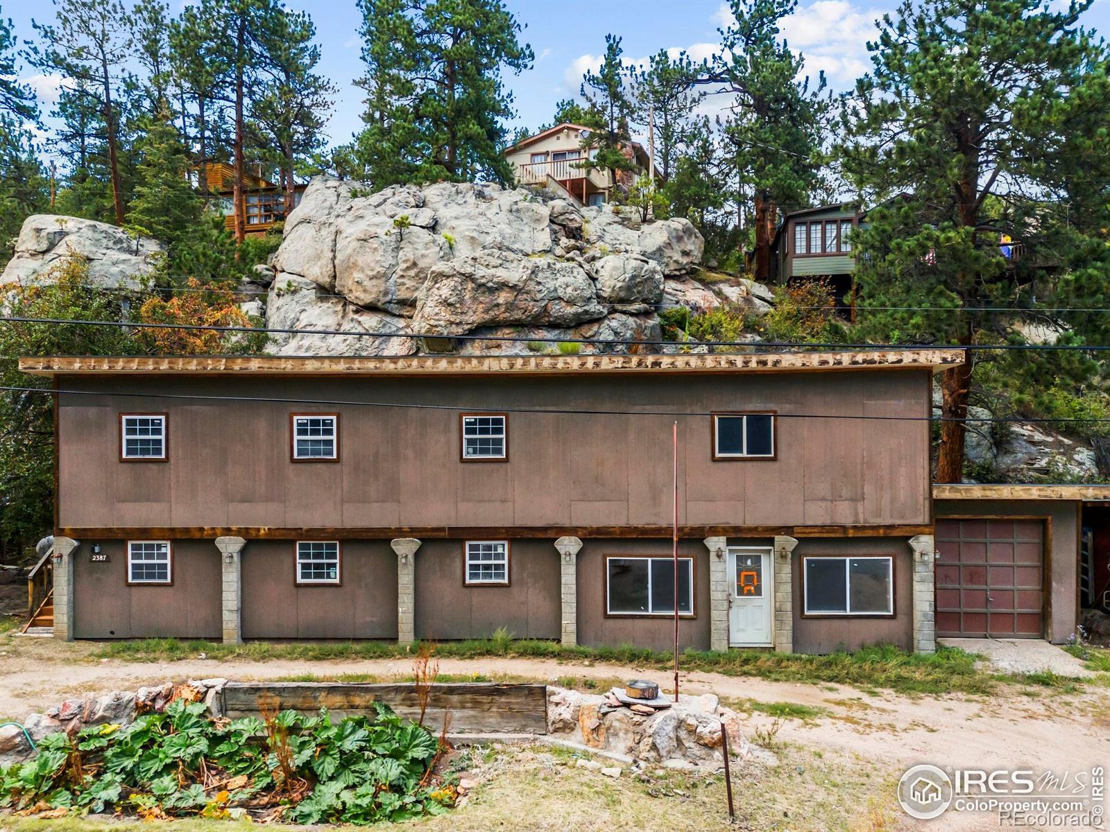 Discover this charming mountain cabin steps from world class fishing and minutes to Estes Park. This cozy 1415 SF cabin features a massive 1,500 SF detached shop, providing ample space for storage or hobbies. Recent updates include new appliances, roof, bath, paint, and carpet. Enjoy the warmth of vintage knotty pine paneling accents along with a cozy wood burning fireplace in the inviting living room. Don't miss your chance to own this mountain paradise!