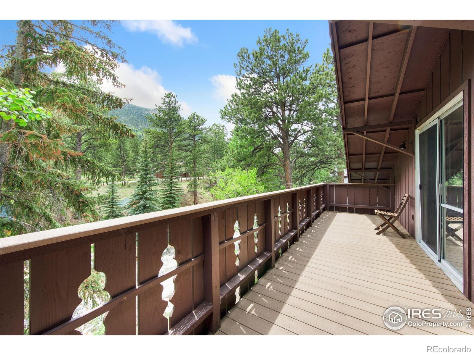 Incredible investment opportunity with $85,000 in gross revenue over the past 12 months and a transferable short-term rental license! Even better, you can self-manage to maximize profits-a huge bonus in Estes Park-or choose to use the convenient onsite management.This is the largest unit in the complex with 4 bedrooms, 2 baths, and room to sleep 10 guests. Step out onto any of the four private decks-three overlooking the peaceful river-and take in the unmatched beauty of Estes Park and the Rocky Mountains. Elk are often in the front yard, creating a true Colorado mountain experience, yet you're only one mile from the entrance to Rocky Mountain National Park and just five minutes to downtown.The property features a modern design with a recently updated kitchen, new LVP flooring, and a cozy fireplace. Sold fully furnished, it's completely turn-key for you and your guests. The HOA includes a pool for added enjoyment.Whether you're looking for a high-performing short-term rental or a personal mountain oasis that pays for itself, this one is not to be missed!