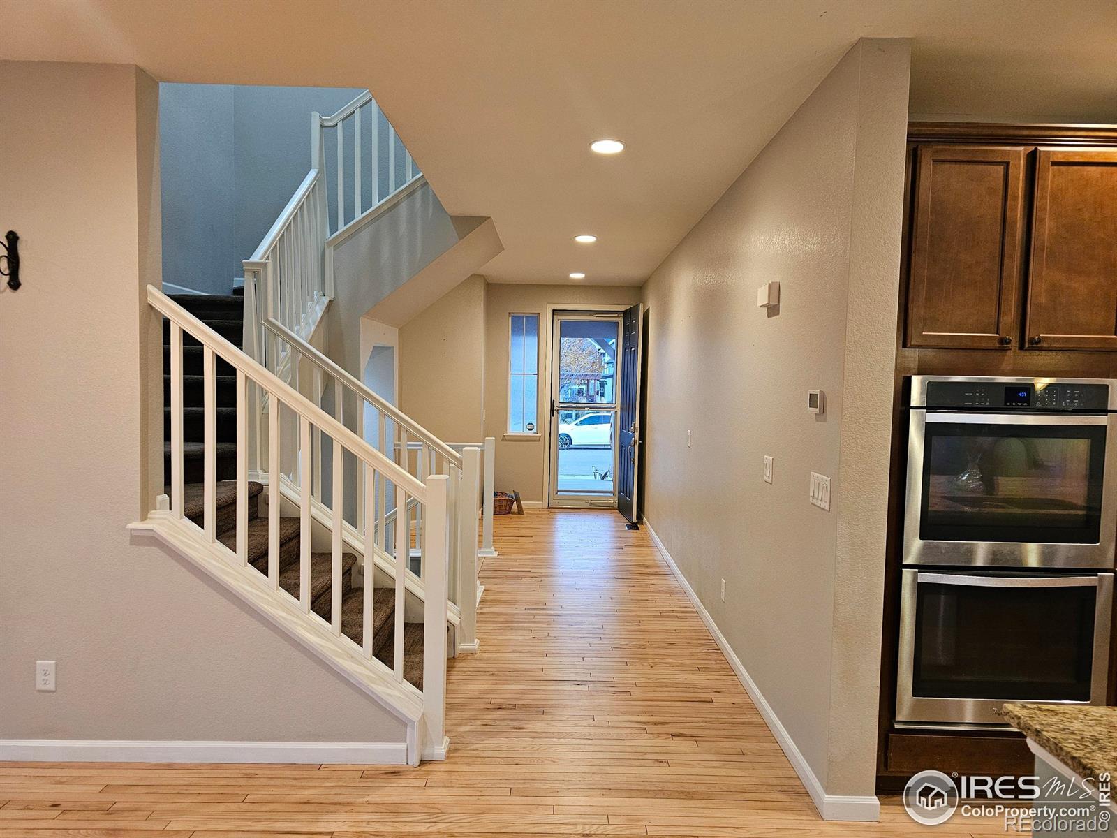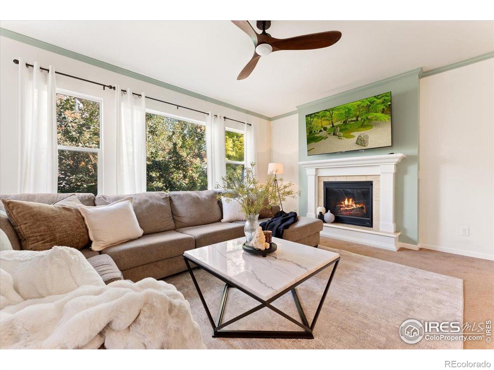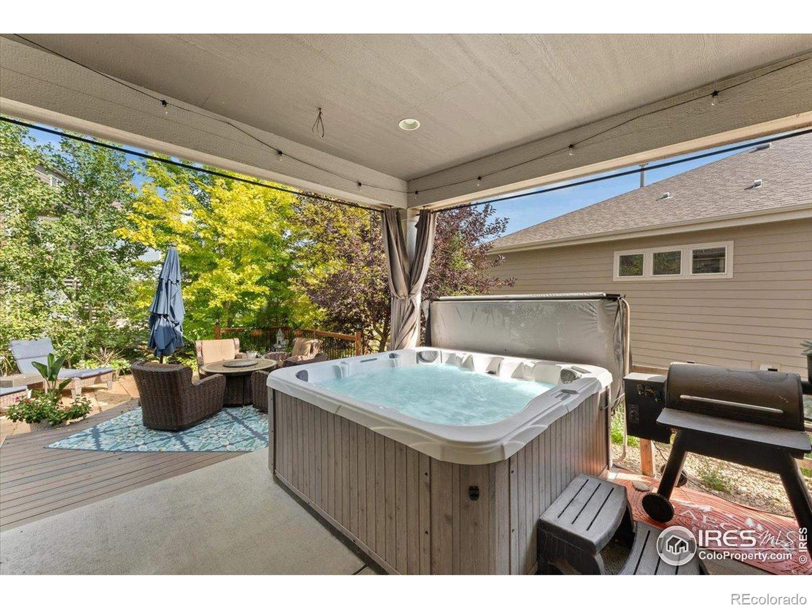 From the moment you step inside, freshly refinished real wood floors and an airy, light-filled layout set the stage for festive gatherings and cozy winter nights. Even better-brand-new carpet will be installed right after Thanksgiving, giving you that fresh, move-in-ready feel for the holidays. A striking three-story open staircase adds drama and elegance, leading your eye from the main level all the way to the basement. The living room is a true holiday centerpiece, featuring a sleek stone-trimmed gas fireplace and modern white mantle-perfect for stockings and seasonal decor. The gourmet kitchen is the heart of the celebration, featuring granite counters, 42" cabinets, a touch-activated faucet, drawer microwave, full tile backsplash, double ovens, and a gas cooktop with vent hood. A brand-new Samsung refrigerator makes entertaining a breeze, whether you're hosting dinner or prepping holiday treats. A main-floor bedroom with an adjacent 3/4 bath provides ideal flexibility for guests, multigenerational living, or a quiet home office. Upstairs, the primary suite is a retreat of its own with coffered ceilings, a spa-inspired 4-piece bath, and a generous walk-in closet. Each additional bedroom enjoys private or shared en-suite access-perfect for comfort and convenience. Step outside to your personal oasis! The backyard features a covered patio, Trex deck, stone patio, hot tub, and AstroTurf grass means practically no maintenance, always green, and ideal for those with grass allergies. It's the perfect place to enjoy crisp Colorado evenings or twinkling holiday lights. Living in Lakes at Centerra means you're surrounded by nature and recreation: multiple scenic lakes, miles of walking trails, and neighborhood kayaking & canoeing adventures-all just steps from your front door. Bonus: This home offers a VA assumable loan, and the seller is motivated. Bring your best reasonable offer and celebrate the season in your beautiful new home!