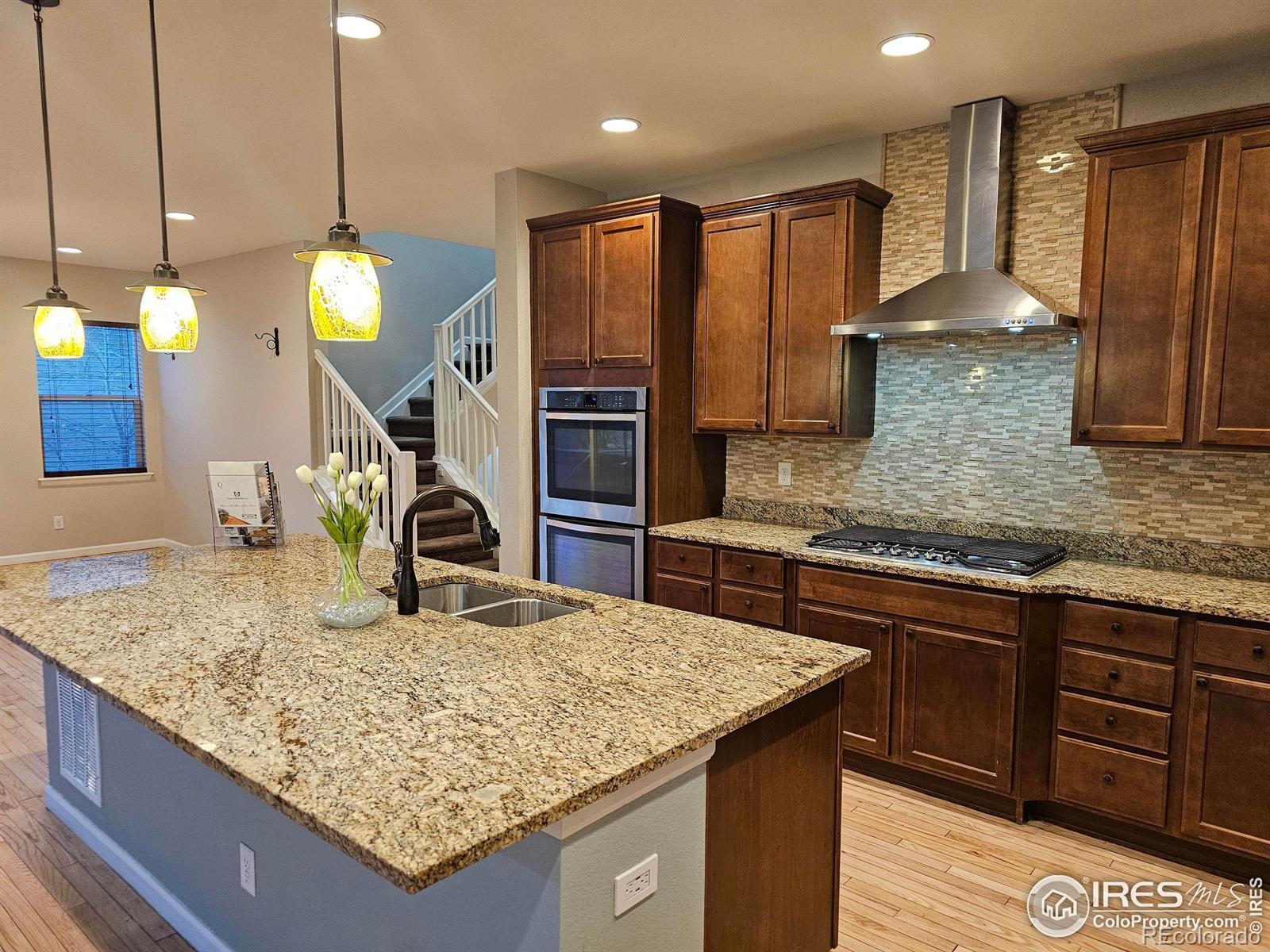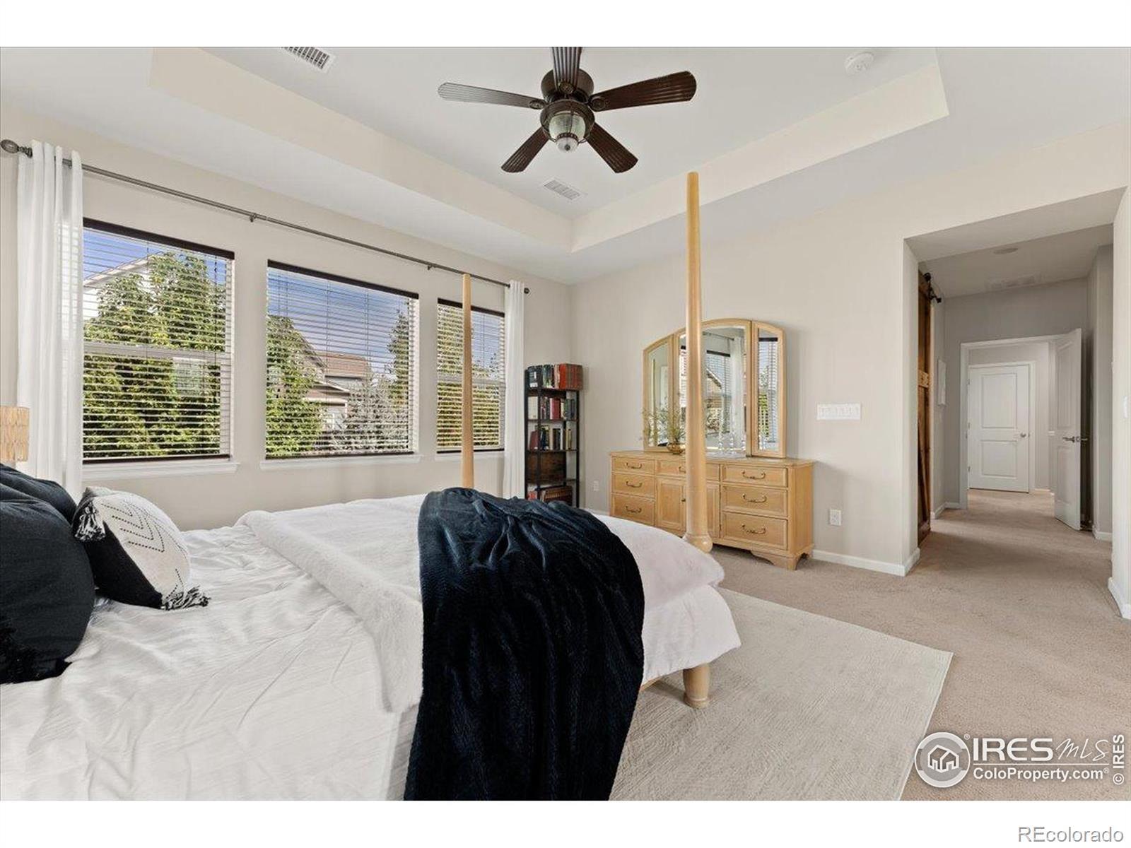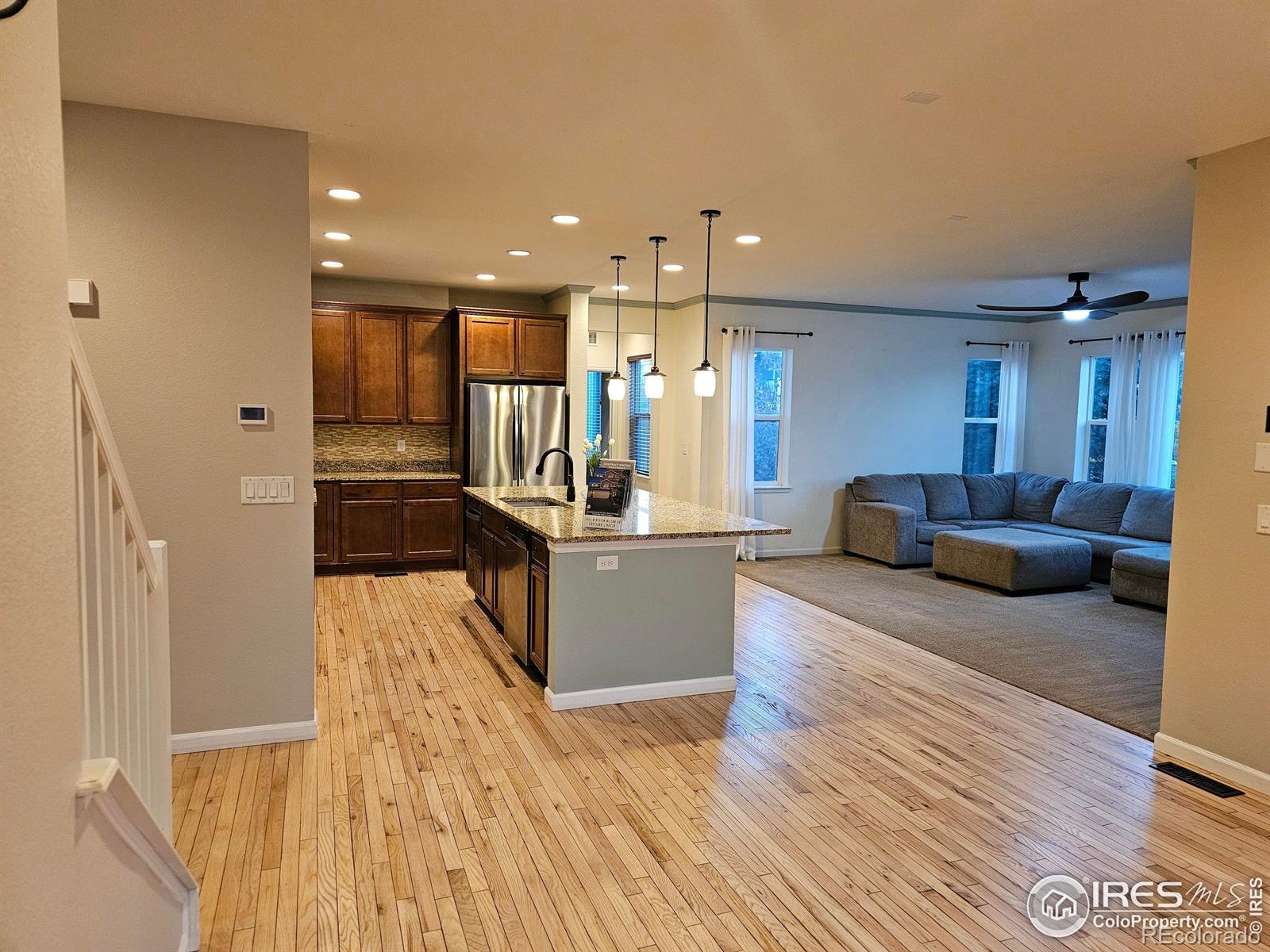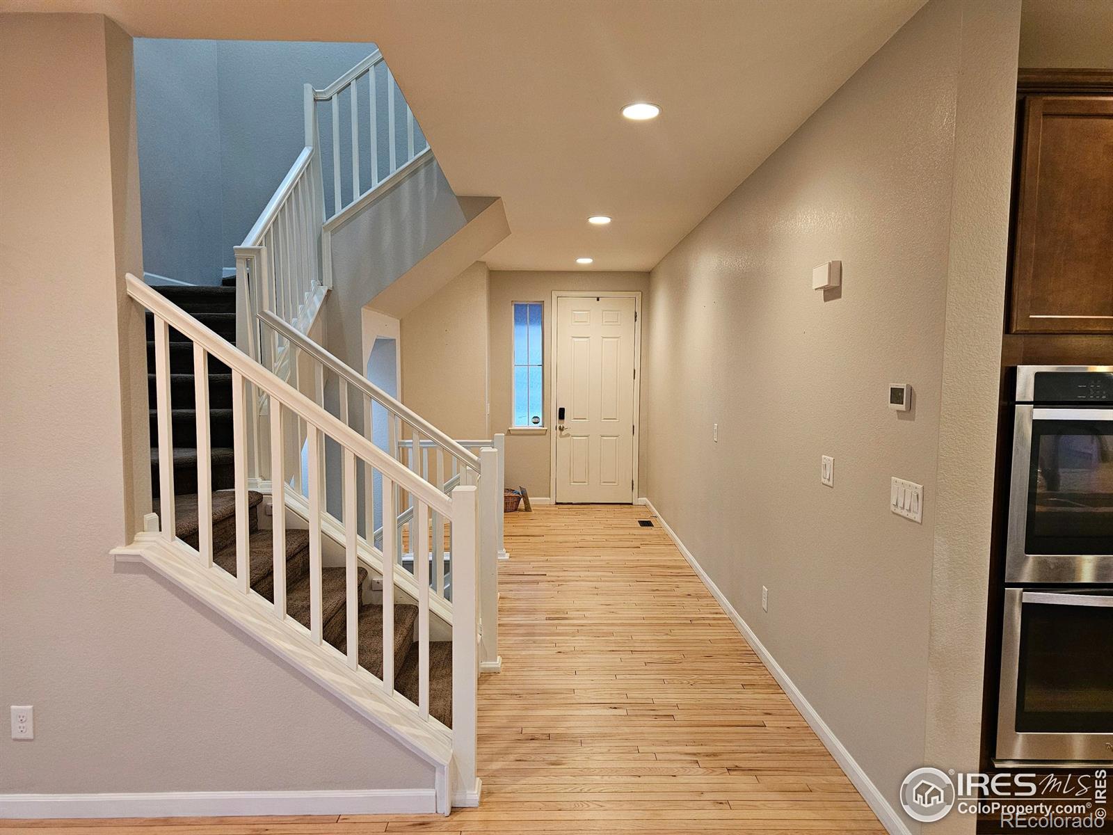 From the moment you step inside, freshly refinished real wood floors and an airy, light-filled layout set the stage for festive gatherings and cozy winter nights. Even better-brand-new carpet will be installed right after Thanksgiving, giving you that fresh, move-in-ready feel for the holidays. A striking three-story open staircase adds drama and elegance, leading your eye from the main level all the way to the basement. The living room is a true holiday centerpiece, featuring a sleek stone-trimmed gas fireplace and modern white mantle-perfect for stockings and seasonal decor. The gourmet kitchen is the heart of the celebration, featuring granite counters, 42" cabinets, a touch-activated faucet, drawer microwave, full tile backsplash, double ovens, and a gas cooktop with vent hood. A brand-new Samsung refrigerator makes entertaining a breeze, whether you're hosting dinner or prepping holiday treats. A main-floor bedroom with an adjacent 3/4 bath provides ideal flexibility for guests, multigenerational living, or a quiet home office. Upstairs, the primary suite is a retreat of its own with coffered ceilings, a spa-inspired 4-piece bath, and a generous walk-in closet. Each additional bedroom enjoys private or shared en-suite access-perfect for comfort and convenience. Step outside to your personal oasis! The backyard features a covered patio, Trex deck, stone patio, hot tub, and AstroTurf grass means practically no maintenance, always green, and ideal for those with grass allergies. It's the perfect place to enjoy crisp Colorado evenings or twinkling holiday lights. Living in Lakes at Centerra means you're surrounded by nature and recreation: multiple scenic lakes, miles of walking trails, and neighborhood kayaking & canoeing adventures-all just steps from your front door. Bonus: This home offers a VA assumable loan, and the seller is motivated. Bring your best reasonable offer and celebrate the season in your beautiful new home!