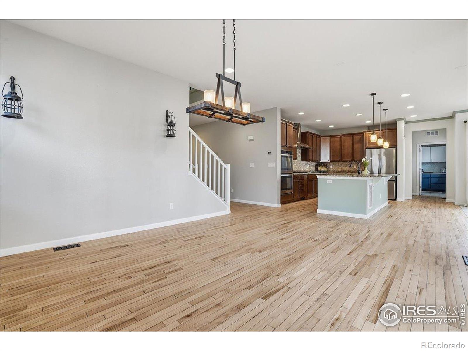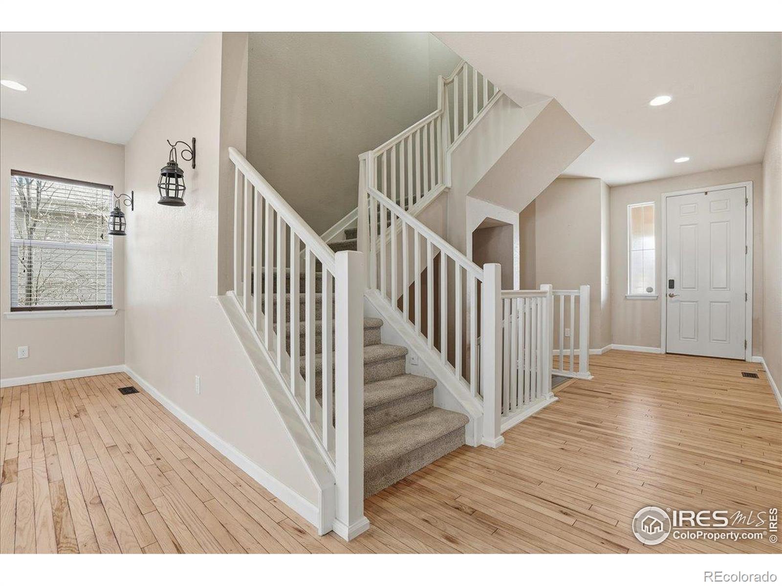 From the moment you step inside, freshly refinished real wood floors and an airy, light-filled layout set the stage for festive gatherings and cozy winter nights. Brand new carpet recently installed, giving you that fresh, move-in-ready feel for the holidays. A striking three-story open staircase adds drama and elegance, leading your eye from the main level all the way to the basement. The living room is a true holiday centerpiece, featuring a sleek stone-trimmed gas fireplace and modern white mantle-perfect for stockings and seasonal decor. The gourmet kitchen is the heart of the celebration, featuring granite counters, 42" cabinets, a touch-activated faucet, drawer microwave, full tile backsplash, double ovens, and a gas cooktop with vent hood. A brand-new Samsung refrigerator makes entertaining a breeze, whether you're hosting dinner or prepping holiday treats. A main-floor bedroom with an adjacent 3/4 bath provides ideal flexibility for guests, multigenerational living, or a quiet home office. Upstairs, the primary suite is a retreat of its own with coffered ceilings, a spa-inspired 4-piece bath, and a generous walk-in closet. Each additional bedroom enjoys private or shared en-suite access-perfect for comfort and convenience. Step outside to your personal oasis! The backyard features a covered patio, Trex deck, stone patio, hot tub, and AstroTurf grass means practically no maintenance, always green, and ideal for those with grass allergies. It's the perfect place to enjoy crisp Colorado evenings or twinkling holiday lights. Living in Lakes at Centerra means you're surrounded by nature and recreation: multiple scenic lakes, miles of walking trails, and neighborhood kayaking & canoeing adventures-all just steps from your front door. Bonus: This home offers a VA assumable loan, and the seller is motivated. Bring your best reasonable offer and celebrate the season in your beautiful new home!