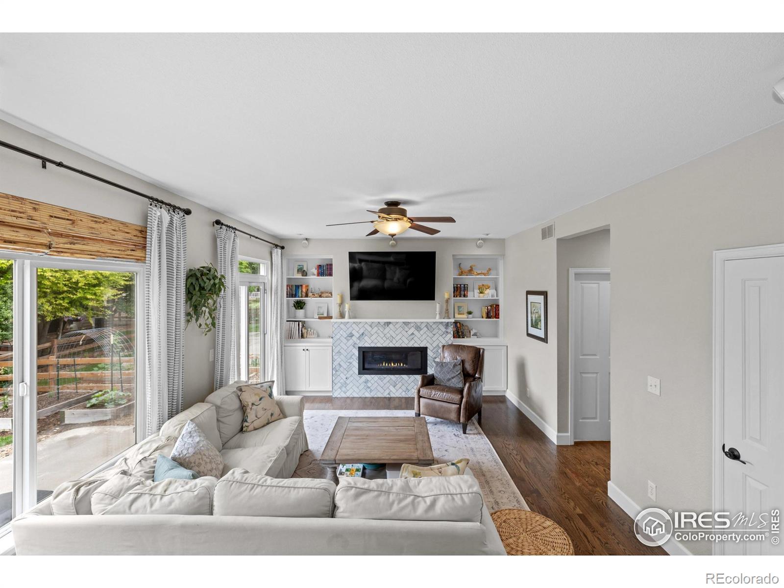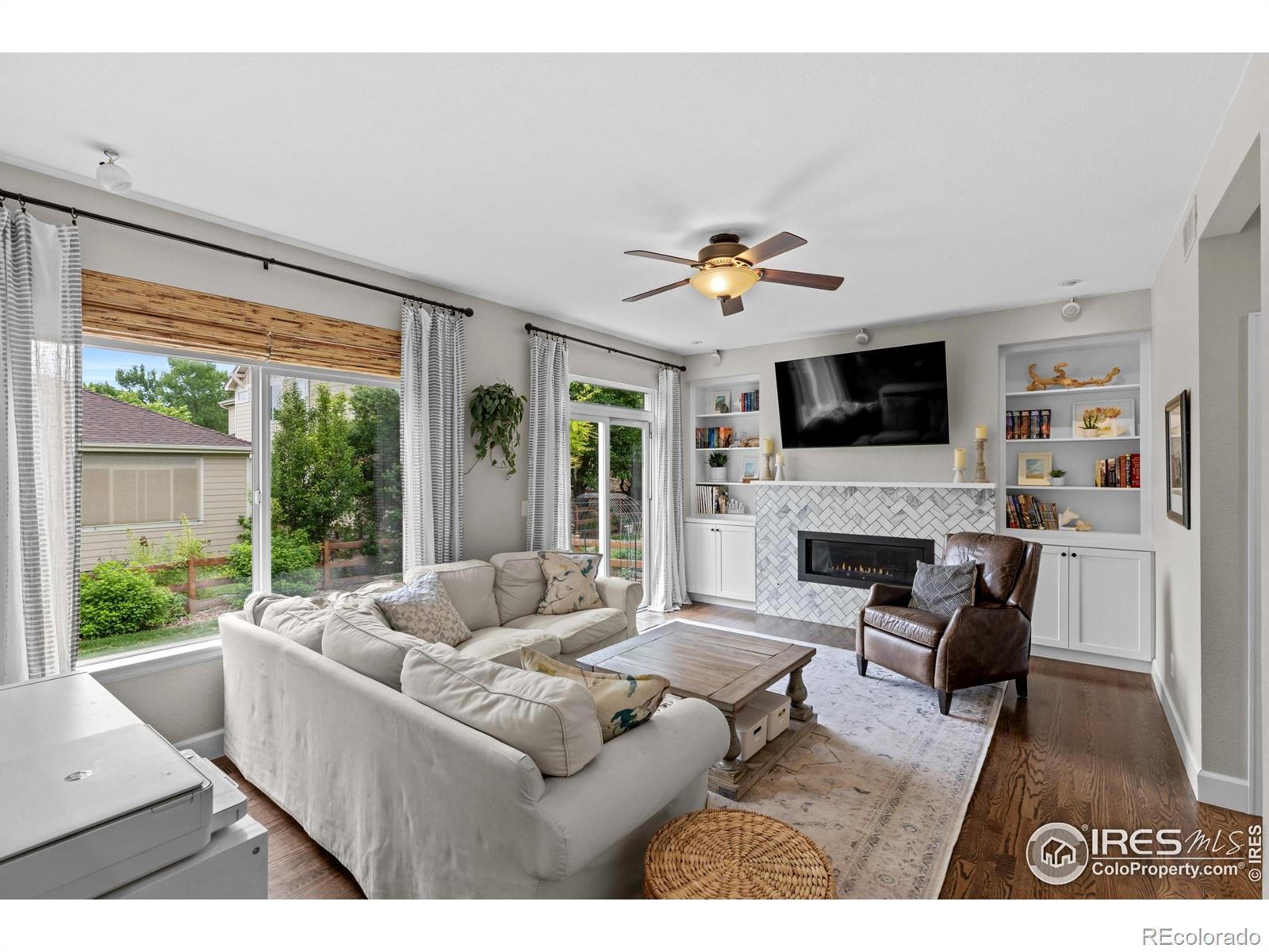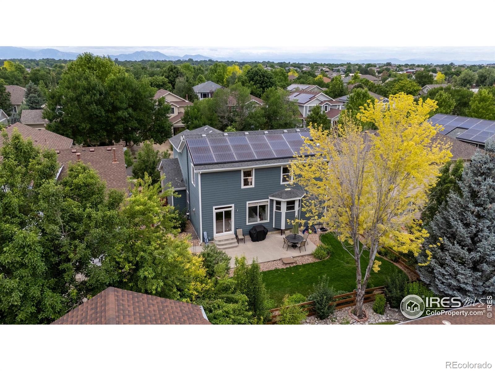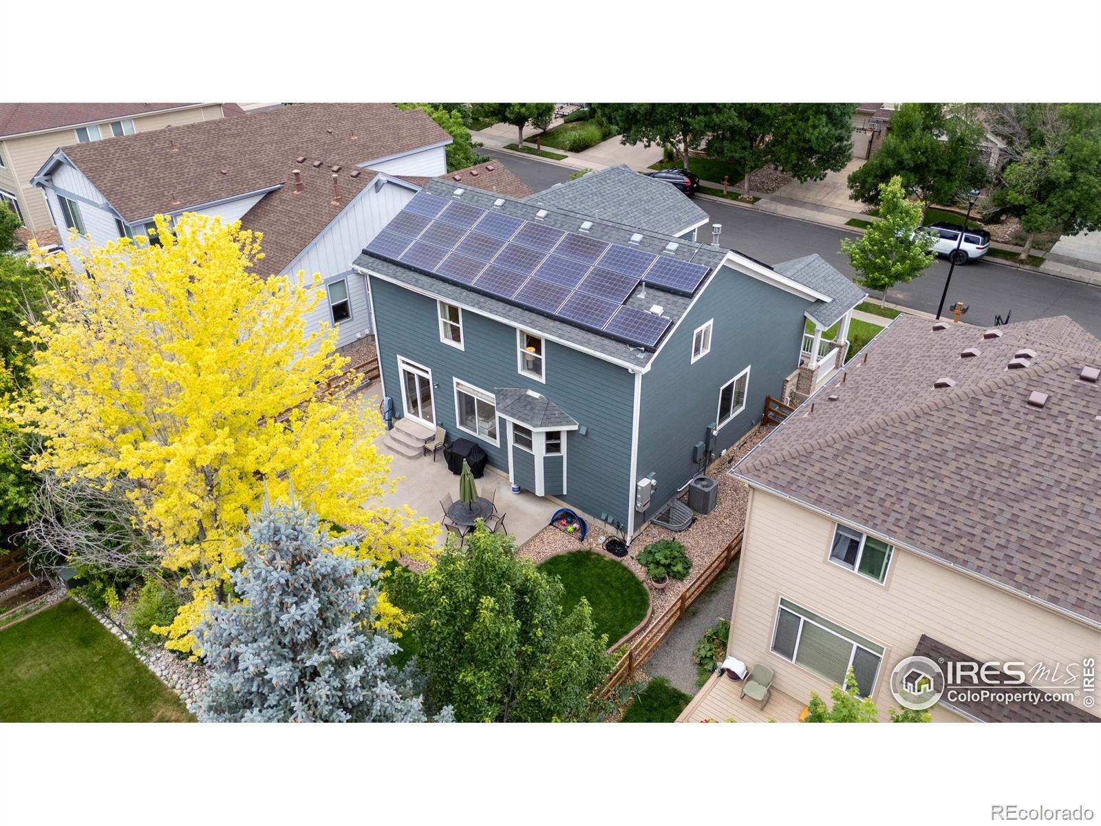 Stunningly updated two-story home in the highly desirable Red Leaf community, offering excellent schools across all grade levels! Step inside to a VAULTED entryway, refinished oak HARDWOOD floors, and a BRIGHT open layout filled with thoughtful updates. The inviting and fully RENOVATED kitchen boasts stainless steel appliances, island seating, and plenty of storage. The family room with surround sound, a gas FIREPLACE with a new tile finish, and built-in cabinets flows onto a large exterior patio-perfect for enjoying refreshing morning sun or relaxing on hot afternoons as the sun sets behind the house. The beautifully landscaped backyard includes raised garden boxes, ideal for green thumbs. Upstairs you'll find 4 spacious bedrooms, of which is a Primary Bedroom with an en-suite and large WALK-IN closet. The WHOLE HOUSE FAN is an added bonus to central AC! The FINISHED basement adds an additional bedroom, creating flexible living space. Modern upgrades include NEWER double-paned WINDOWS, a 2019 water heater, and updated fixtures and finishes throughout. Main floor laundry adds everyday convenience. Enjoy the OVERSIZED garage, welcoming covered front porch, and unbeatable location with easy access to Tunnel Park, Broomfield Commons, miles of trails, and the Paul Derda Rec Center. The solar system helps offset energy costs-providing valuable long-term savings. This home blends comfort, style, and location-don't miss your chance to live in one of Broomfield's most desirable neighborhoods! Sellers would love a post closing occupancy if possible.