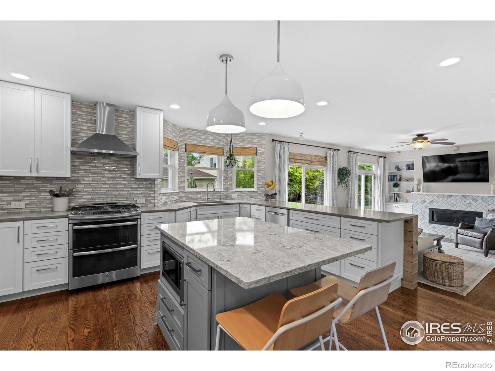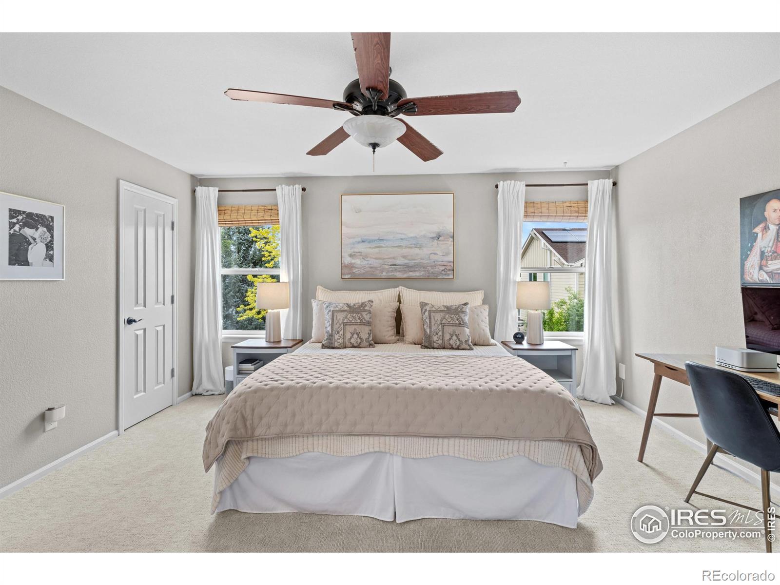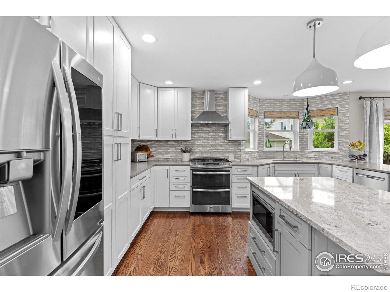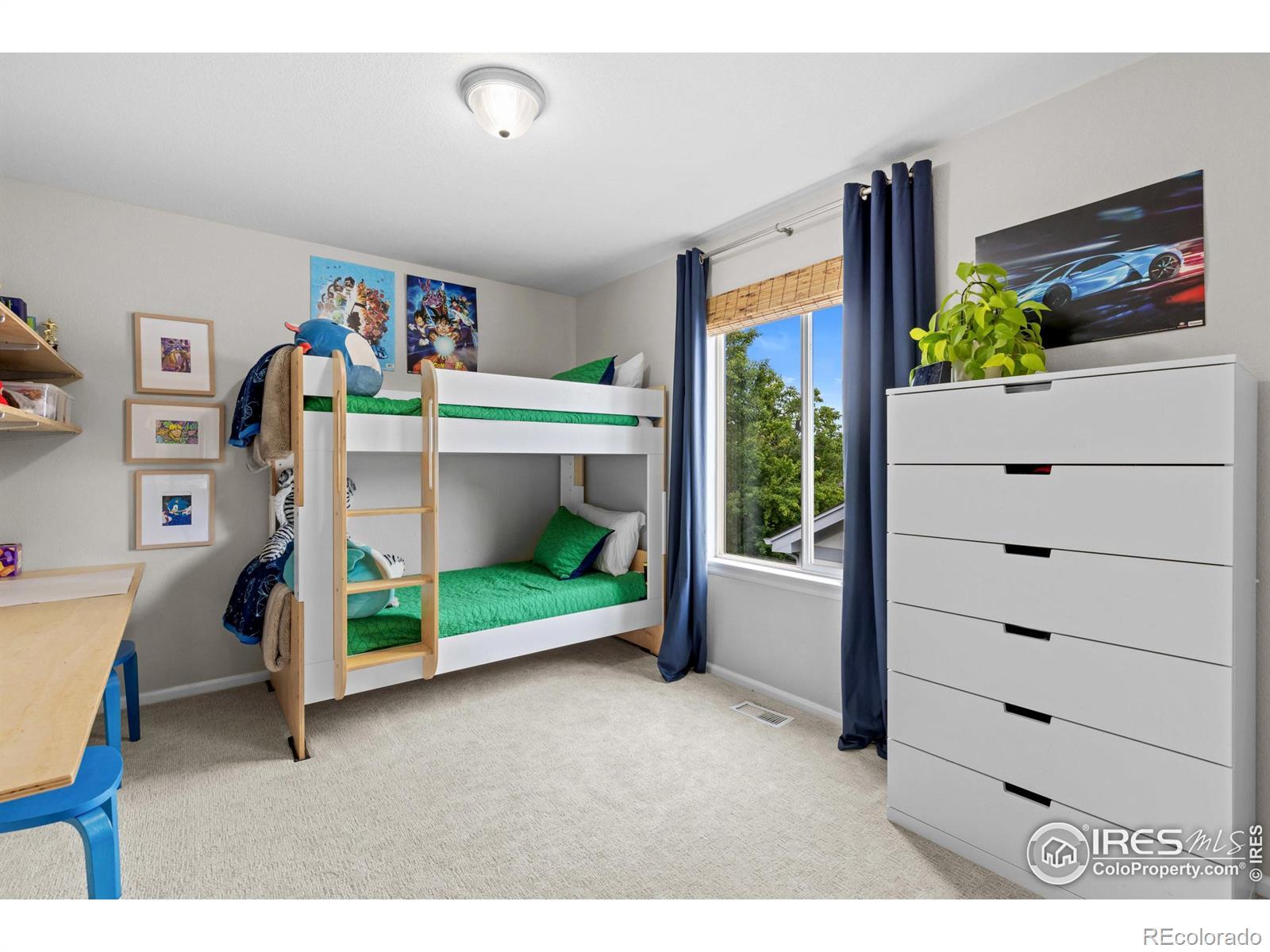 Stunningly updated two-story home in the highly desirable Red Leaf community, offering excellent schools across all grade levels! Step inside to a VAULTED entryway, refinished oak HARDWOOD floors, and a BRIGHT open layout filled with thoughtful updates. The inviting and fully RENOVATED kitchen boasts stainless steel appliances, island seating, and plenty of storage. The family room with surround sound, a gas FIREPLACE with a new tile finish, and built-in cabinets flows onto a large exterior patio-perfect for enjoying refreshing morning sun or relaxing on hot afternoons as the sun sets behind the house. The beautifully landscaped backyard includes raised garden boxes, ideal for green thumbs. Upstairs you'll find 4 spacious bedrooms, of which is a Primary Bedroom with an en-suite and large WALK-IN closet. The WHOLE HOUSE FAN is an added bonus to central AC! The FINISHED basement adds an additional bedroom, creating flexible living space. Modern upgrades include NEWER double-paned WINDOWS, a 2019 water heater, and updated fixtures and finishes throughout. Main floor laundry adds everyday convenience. Enjoy the OVERSIZED garage, welcoming covered front porch, and unbeatable location with easy access to Tunnel Park, Broomfield Commons, miles of trails, and the Paul Derda Rec Center. The solar system helps offset energy costs-providing valuable long-term savings. This home blends comfort, style, and location-don't miss your chance to live in one of Broomfield's most desirable neighborhoods! Sellers would love a post closing occupancy if possible.