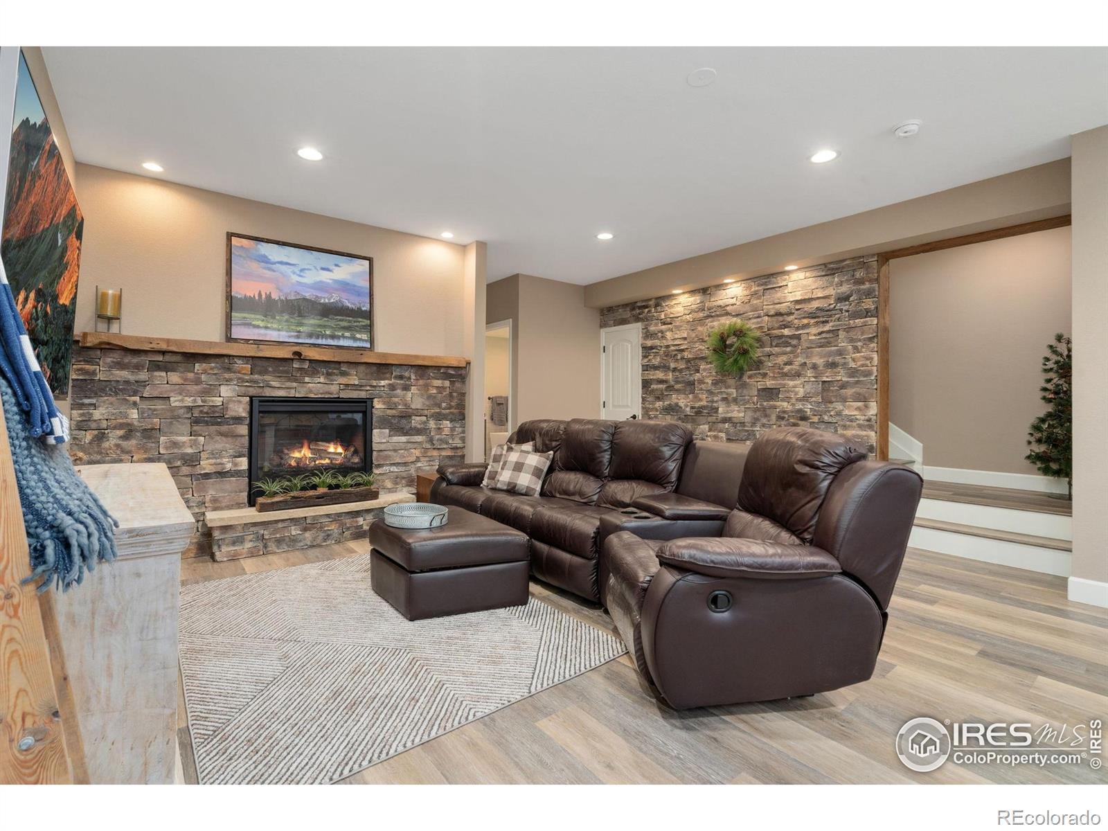 Discover the perfect blend of luxury and comfort in this amazing 3-level home located at 4952 Silverwood Drive in Thompson River Ranch. With over 4,000 square feet of meticulously maintained living space, this property has been completely updated and boasts an array of high-end features. The bright and inviting main level offers an abundance of natural light, a cozy stone fireplace, and a luxurious study, along with a gourmet kitchen equipped with top-of-the-line appliances and elegant engineered hardwood flooring. The upper level includes four spacious bedrooms and a versatile bonus room, ideal for a secondary study or playroom. Ascend to the finished attic space, where you'll find a private theater room and a recreation room, perfect for family movie nights or entertaining guests. The professionally finished basement takes luxury to the next level, featuring stunning luxury vinyl flooring, breathtaking stonework, a second fireplace, a large bedroom, and a lavish 5-piece bathroom. Step outside to experience an outdoor oasis, with a terraced back yard that includes multiple gathering spaces, a fire pit, stamped concrete, and a pergola. The breathtaking landscaping backs up to peaceful farmland, providing a serene backdrop for outdoor entertaining. Additional highlights of this home include a tankless water heater, a dual-zoned HVAC system, radon rough-in, and a spacious 3-car garage. Thompson River Ranch offers endless open spaces, trails, two pools, a recreation center and a K-8 school inside the subdivision. Pre-inspected.