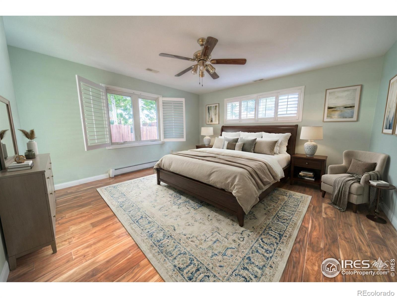 WELCOME HOME TO THIS BEAUTIFUL BRICK RANCH LOCATED ON A QUIET CUL-DE-SAC IN THE HIGHLY COVETED BROOMFIELD COUNTRY CLUB SUBDIVISION. Enter to gleaming tiled floors, plantation shutters, newer Anderson windows, and a formal dining room with a bay window and ceiling fan. The eat-in kitchen features granite countertops, a granite backsplash, an under-mount sink, custom cabinets with glass accents, crown molding, a ceiling fan, stainless steel appliances, a movable center island, and a walk-out to the back patio. The large and open living room has space for a dining table, a gas-burning fireplace, a ceiling fan, and easy access to the patio. The main floor primary suite features gleaming hardwood floors in a hand-scraped finish, a walk-in closet with custom built-ins, a gorgeous tiled bath with granite countertops, a double vanity, and a walk-in shower. Bedroom two has built-ins in the closet, a ceiling fan, hardwood floors, and easy access to a full bath with a custom vanity and tiled floors. The full-footprint basement features a third bedroom, a three-quarter bath with a pedestal sink, a large laundry area, a wash basin, a pantry, and a wide-open family room with a wood-burning fireplace, as well as a craft/bonus room with a wall of storage cabinets. A newer boiler provides affordable hot water heat, and there is central air conditioning. The fully fenced backyard features a stamped and stained concrete patio, and the home boasts a leafless gutter system. A location that is tough to beat, just a pitching wedge away from the 12th green of Eagle Trace Golf Club, walking distance to Broomfield's top top-rated schools, and easy access to Boulder and Denver via Hwy 36 and the Denver International Airport via C470. Centrally located, close to fantastic shopping, retail, restaurants, grocery stores, banking, and more. SEE STREAMING VIDEO AND FEEL FREE TO REACH OUT WITH ANY QUESTIONS!