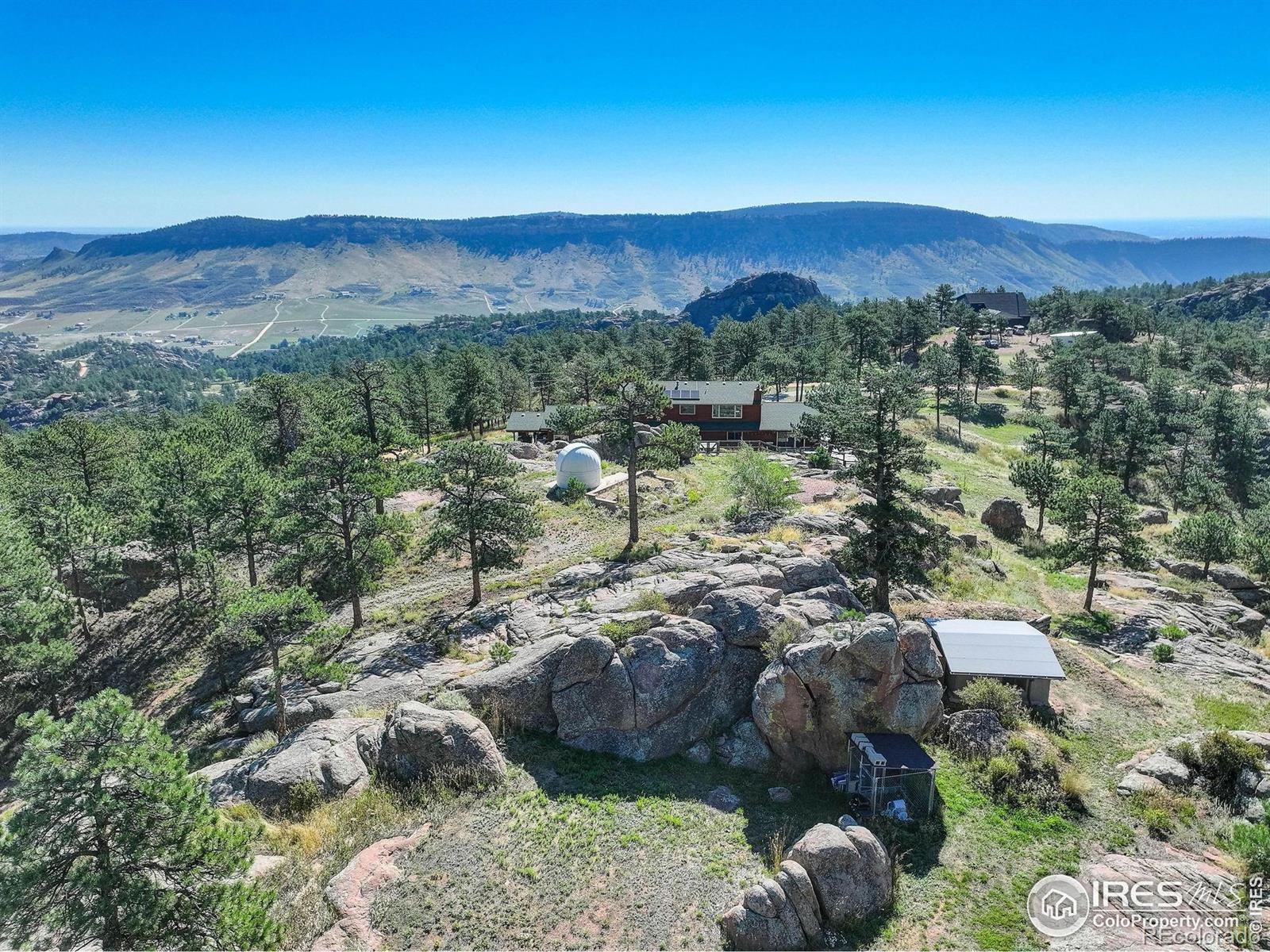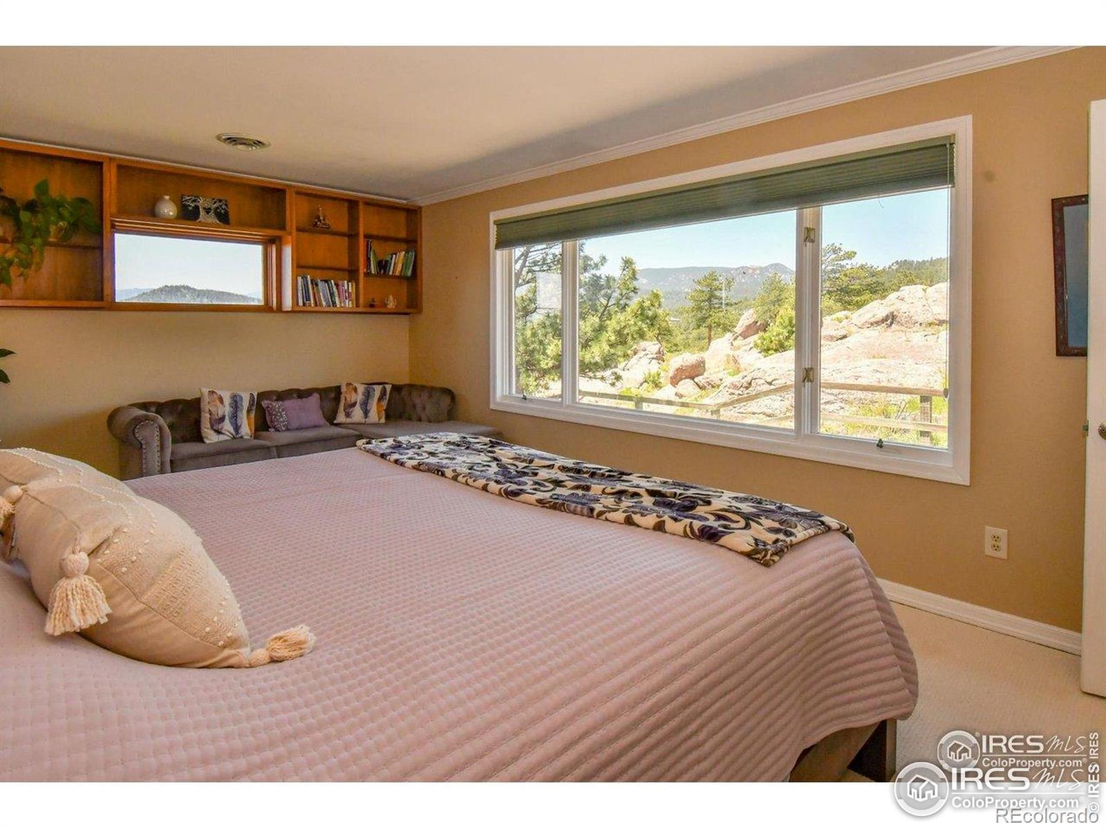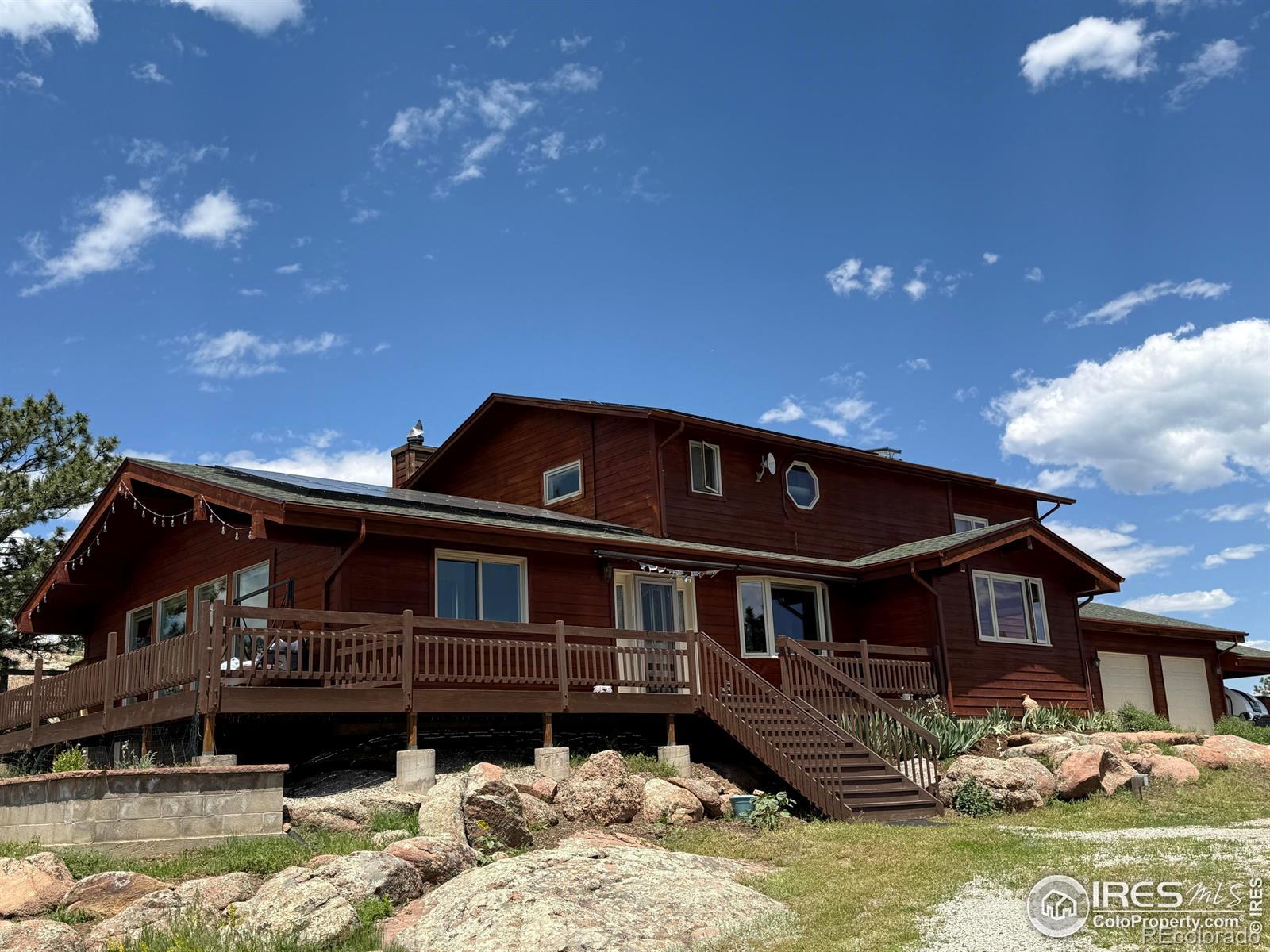 Spring Gulch Ranch. A rare dream home in a coveted canyon. This exquisite property is minutes to the town of Lyons and offers mountain living at its best, with extraordinary views from every room and lots of natural light. Stroll the gorgeous walking path that weaves through this 14.8 acre wonderland. Enjoy the amazing rock outcrops and many usable areas...great for meditation, camping, outdoor concerts and more. Fifty paces behind the house, a beautiful cabin sanctuary with electricity awaits you or your guests. At the end of the day, soak under the stars in the new hot tub! You will love the luxury and flow of the newly remodeled kitchen with high end quartzite countertops, a large island, new stainless appliances, induction stove, double oven & modern floor tile with views of the canyon and trees. The master suite also has incredible views with a newly remodeled 5 piece bath with marble and quartzite including a soaking tub, separated toilet and huge attached walk-in closet. The exquisite living room has vaulted ceilings with a wall of windows looking south out to the canyon and mountains and rock outcrops. The wood stove brings added heat and ambiance then flows into the dining area and kitchen. This all electric, newly updated 400 amp electric home has low energy carbon footprint and energy bills, because of the 31 solar roof panels, electric boiler heat (retains humidity) and on-demand electric hot water. An oversized 2 car garage has lots of cabinets with an attached carport for a 3rd vehicle and several storage sheds outside. The Well produces enough water for a family of 3 with an extra 4800 gallon cistern for back-up or watering gardens, and the well developed flower gardens have a sprinkler system and several raised garden beds. Start living your mountain retreat!