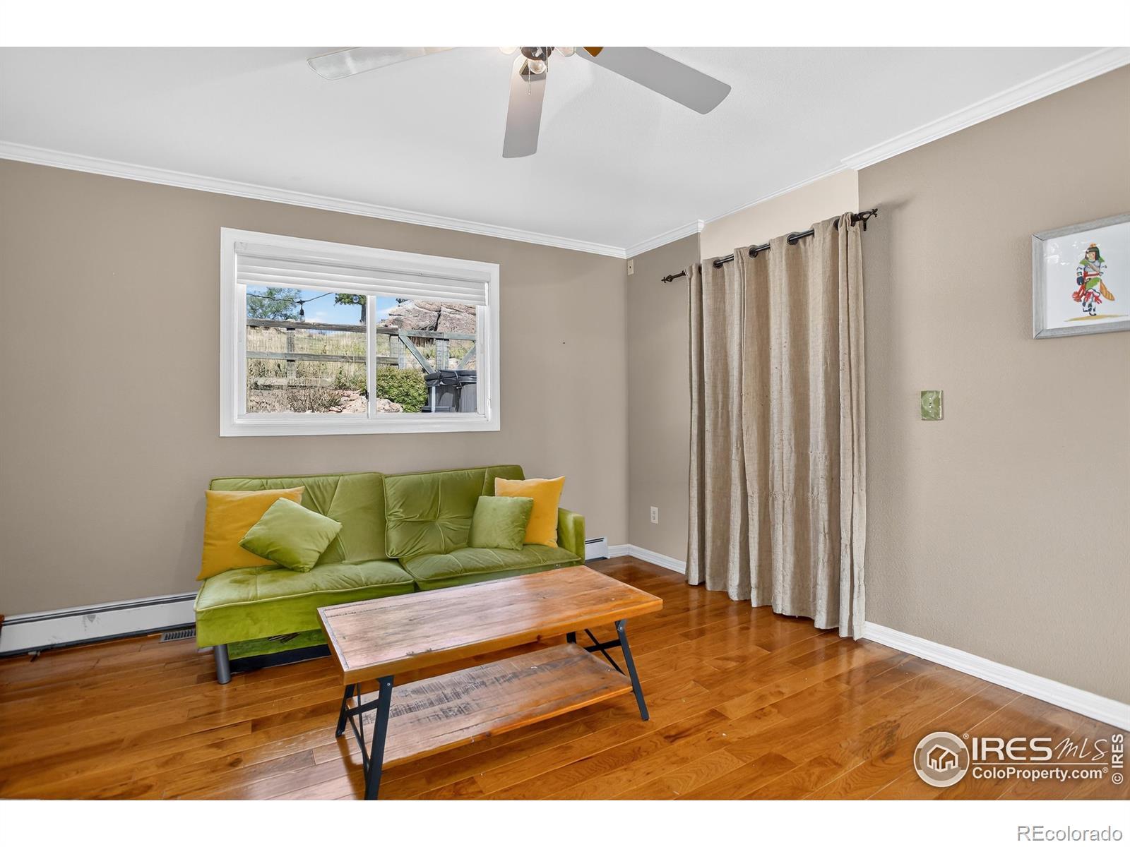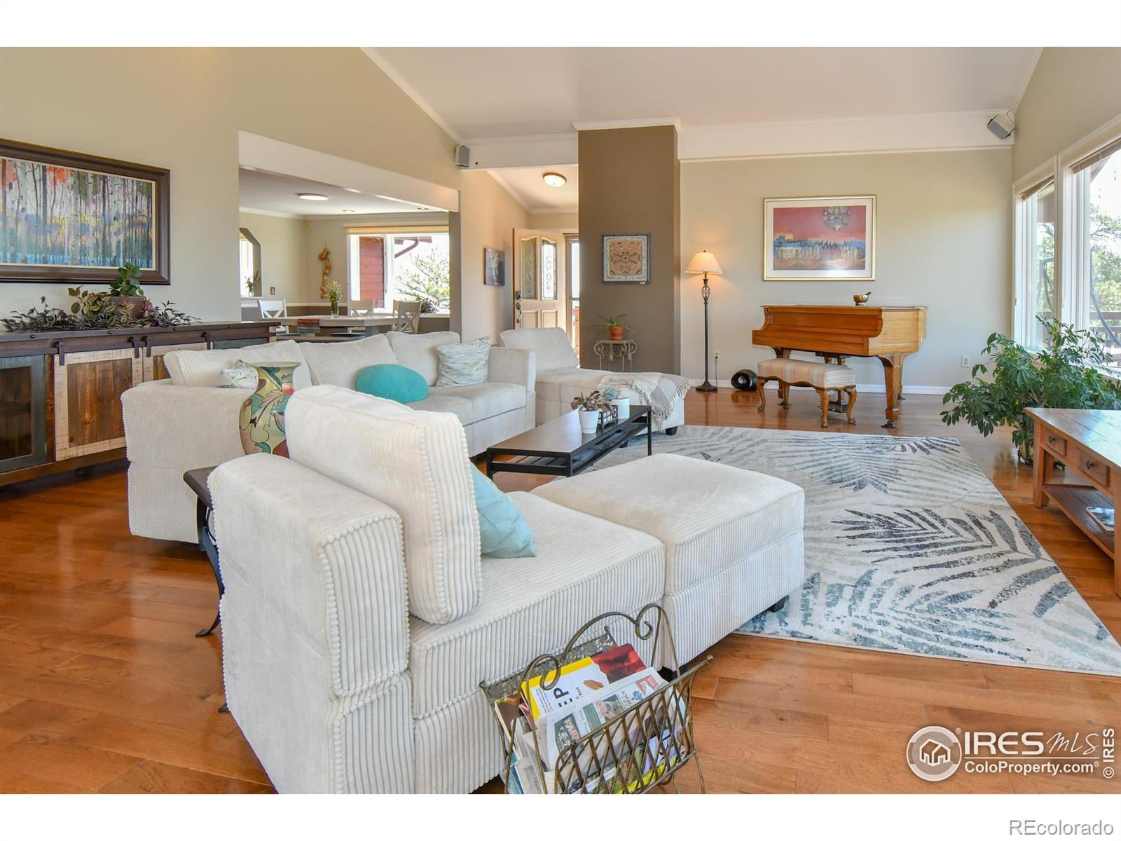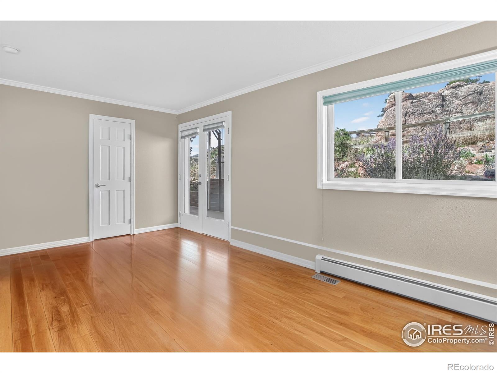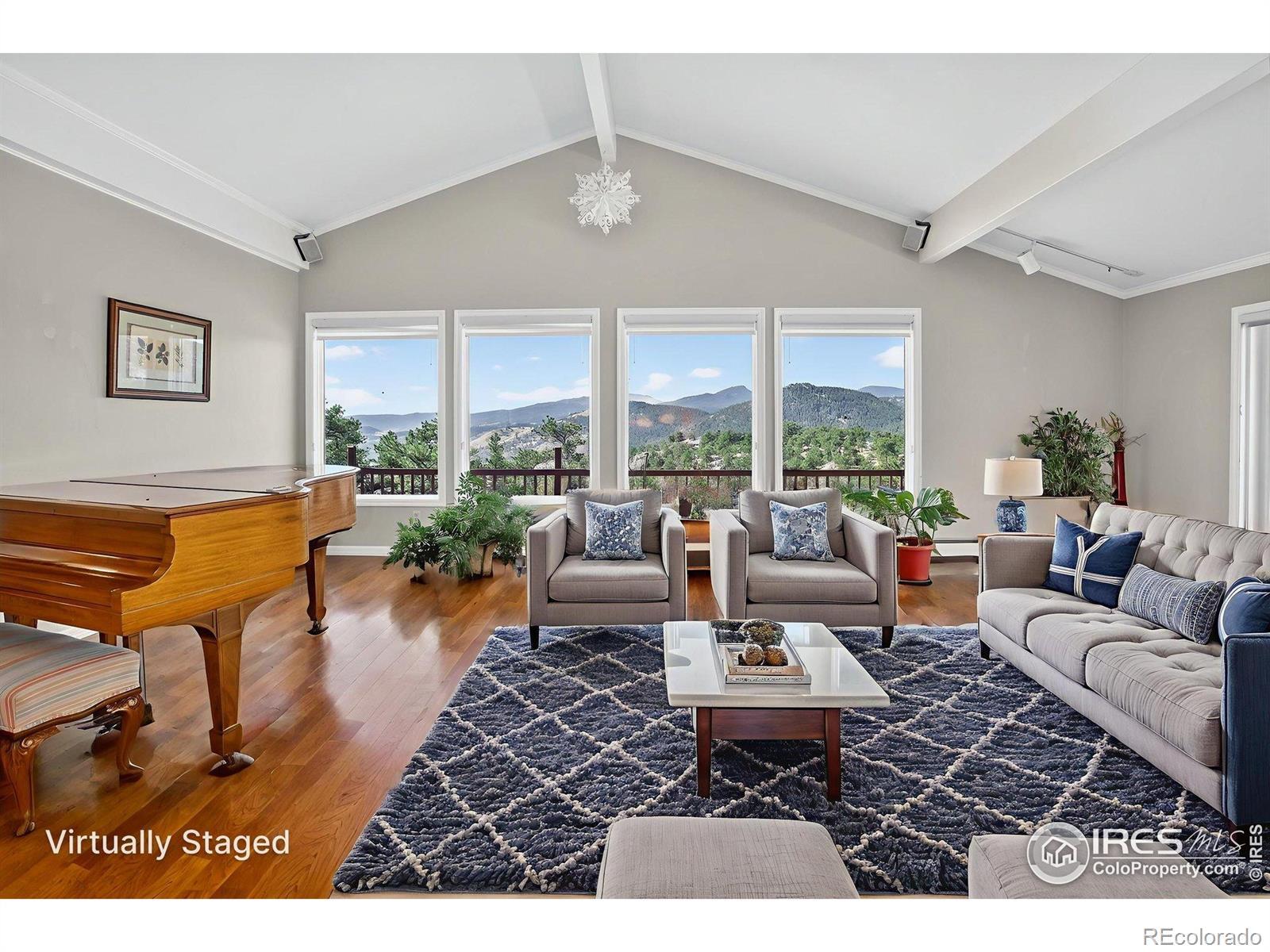 Spring Gulch Ranch. A rare dream home in a coveted canyon. This exquisite property is minutes to the town of Lyons and offers mountain living at its best, with extraordinary views from every room and lots of natural light. Stroll the gorgeous walking path that weaves through this 14.8 acre wonderland. Enjoy the amazing rock outcrops and many usable areas...great for meditation, camping, outdoor concerts and more. Fifty paces behind the house, a beautiful cabin sanctuary with electricity awaits you or your guests. At the end of the day, soak under the stars in the new hot tub! You will love the luxury and flow of the newly remodeled kitchen with high end quartzite countertops, a large island, new stainless appliances, induction stove, double oven & modern floor tile with views of the canyon and trees. The master suite also has incredible views with a newly remodeled 5 piece bath with marble and quartzite including a soaking tub, separated toilet and huge attached walk-in closet. The exquisite living room has vaulted ceilings with a wall of windows looking south out to the canyon and mountains and rock outcrops. The wood stove brings added heat and ambiance then flows into the dining area and kitchen. This all electric, newly updated 400 amp electric home has low energy carbon footprint and energy bills, because of the 31 solar roof panels, electric boiler heat (retains humidity) and on-demand electric hot water. An oversized 2 car garage has lots of cabinets with an attached carport for a 3rd vehicle and several storage sheds outside. The Well produces enough water for a family of 3 with an extra 4800 gallon cistern for back-up or watering gardens, and the well developed flower gardens have a sprinkler system and several raised garden beds. Start living your mountain retreat!