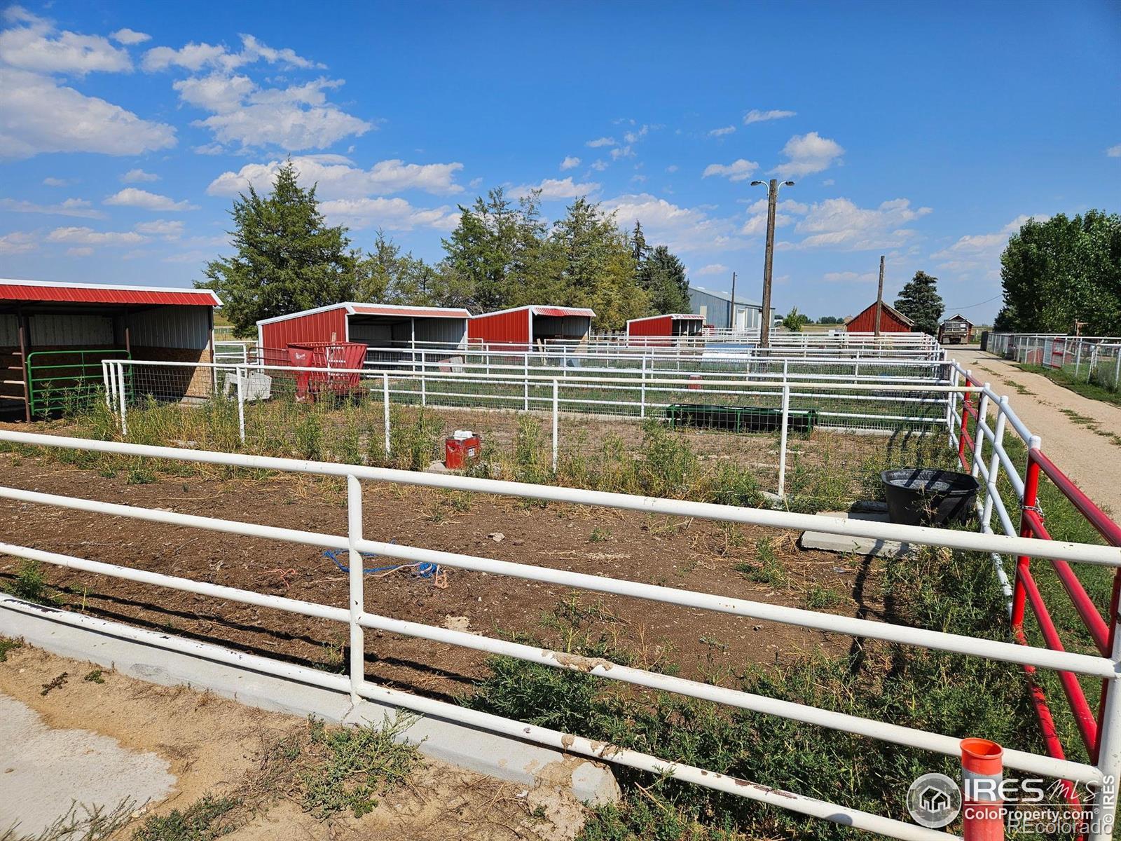 Unique 12 acre livestock and dog breeding facility located in west Greeley, this property features an irrigated grass pasture, 4 lean-to sheds with pipe fencing corrals that will accommodate horses, cattle, sheep, other large animals.104 X 40 metal shed, 48 X 24 metal building with office space & 6 dog kennels, 2nd dog kennel is 13 X 28 with 4 dog kennels. RV hookup, flower gardens, piped fencing with mesh that goes around the entire property. 1/7 interest in a Non Tributary Irrigation well. Come and see this property it has a lot of possibilities.
