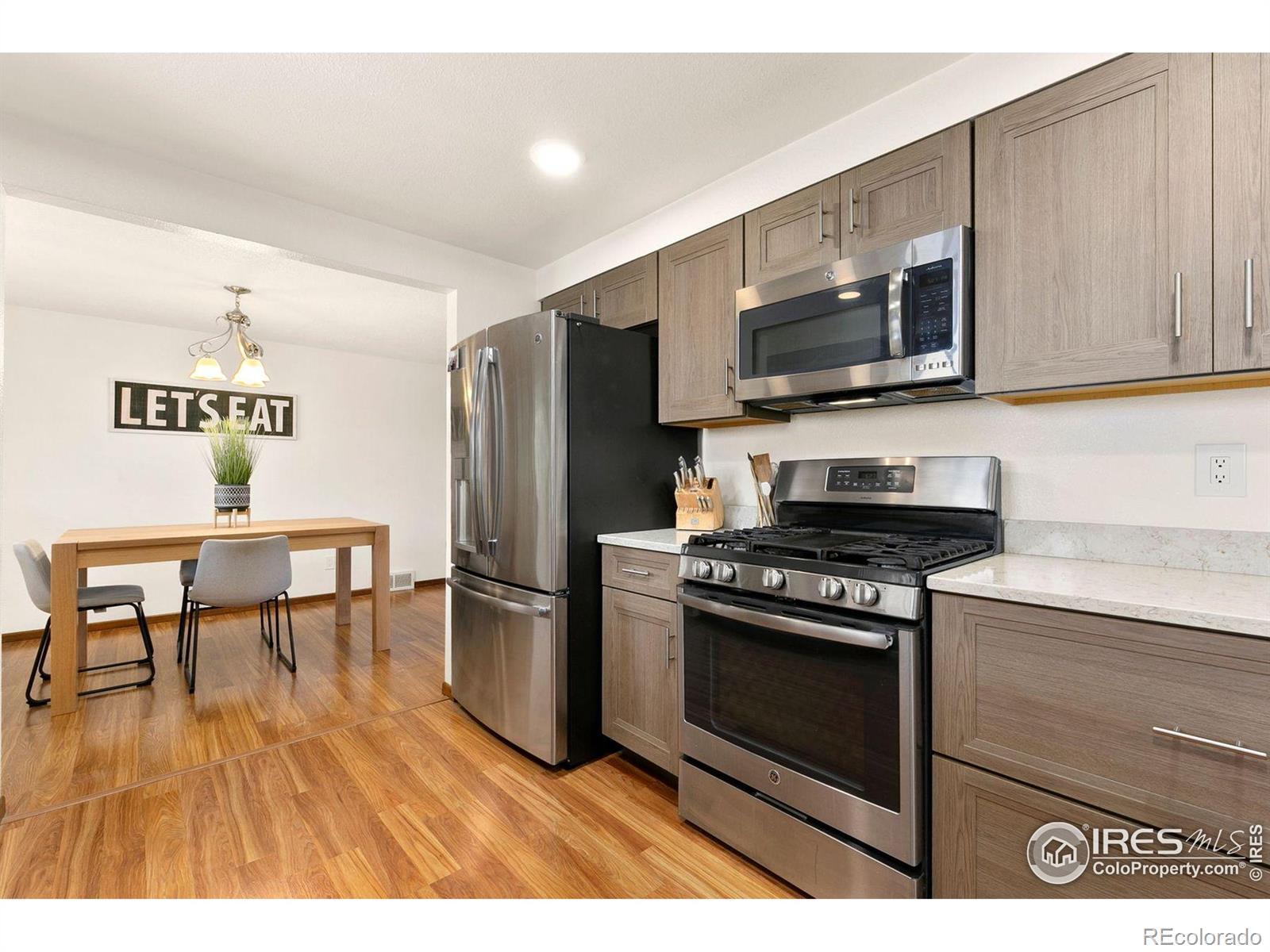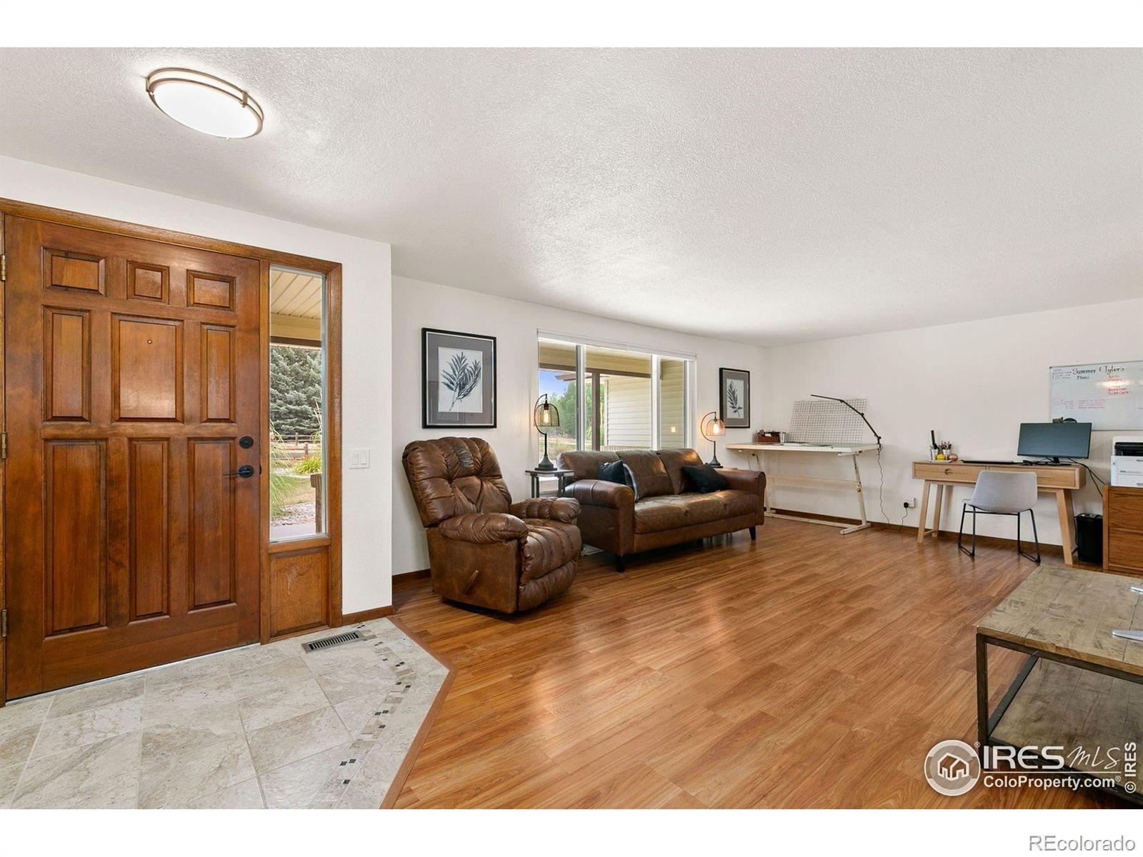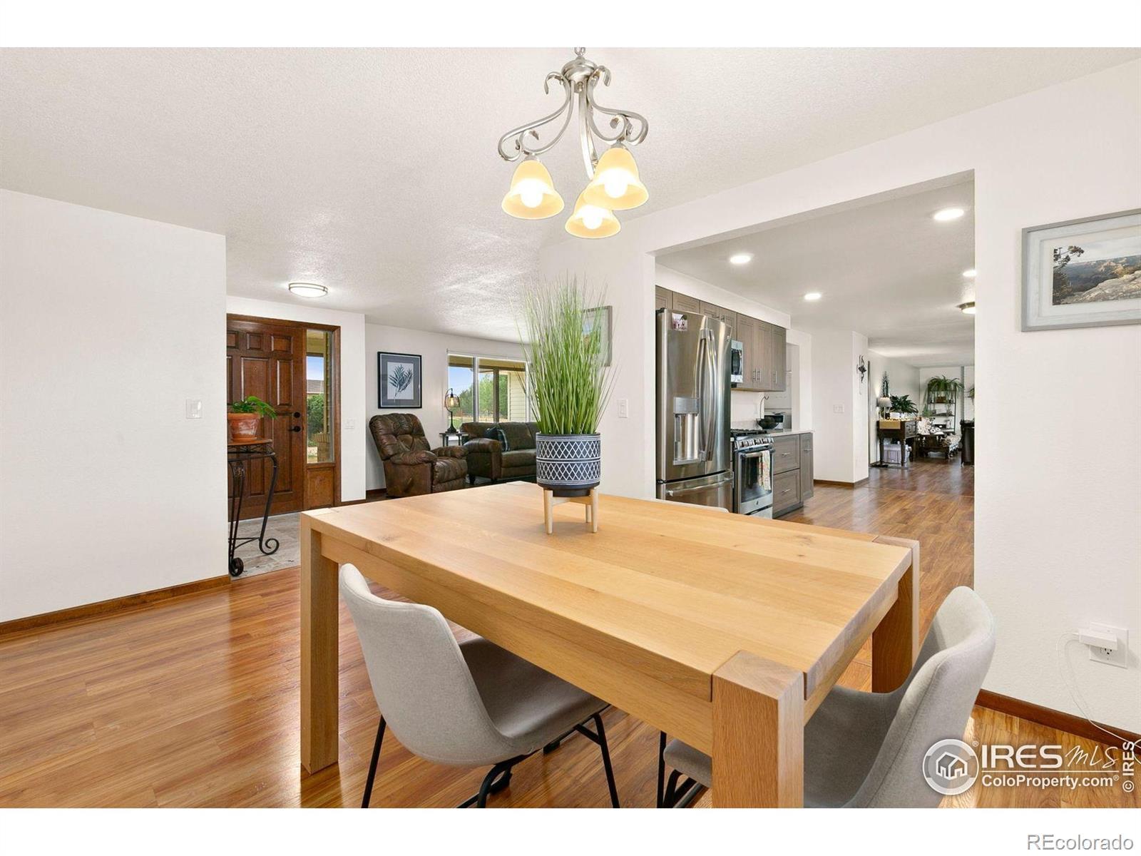 A rare opportunity to own a property that combines space, upgrades, and location in one remarkable package. Set on a generous 1.06-acre lot in the peaceful Indianhead Subdivision, this beautifully updated 3-bed, 3-bath home offers the elbow room you crave with convenient proximity to thriving Northern Colorado amenities. Recent improvements include new carpet, a new water heater, newer roof, windows, and a high-efficiency furnace. The bright and modern kitchen features soft-close cabinets, slide-out pantry drawers, and quartz countertops, while bathrooms have been tastefully refreshed. Enjoy two separate living areas both with picture windows for ample natural light and the family room featuring a cozy and modern brick fireplace. The oversized two-car attached garage offers abundant storage, and the large heated shop is a standout - complete with RV parking, 50-amp plug, 9 16 door, and 10 ceilings, perfect for hobbies, RV/boat storage, or a workshop. The fenced backyard is an entertainer's dream with a new patio, pull-down shade, fire pit area, and stone bench to take in the mountain views. Two mature apple trees and boxed garden beds add charm and function. This location delivers the best of both worlds: peaceful rural living with immediate access to vibrant amenities like the 2534 retail corridor, Centerra, and Downtown Loveland. It's also strategically positioned just 2 miles from the upcoming Cascadia entertainment district in Greeley-featuring a new Colorado Eagles hockey arena, water park, hotel, retail, and transit hub-poised to enhance regional home values and opportunity. Properties with this combination of land, shop space, modern updates, and prime location rarely come to market-don't miss your chance.