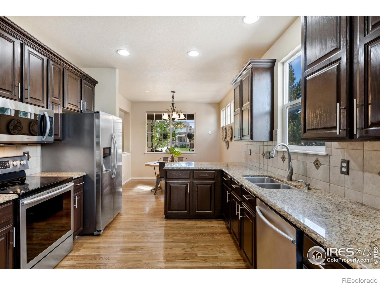 Just an incredible 2-story home, adjacent to HOA green space, with a main floor primary bedroom and bathroom! SELLER IS WILLING TO PROVIDE A SELLER CONCESSION TO ASSIST IN NEW EXTERIOR PAINT AFTER CLOSING! After purchasing in 2017, the Seller fully remodeled the walk out basement to include a full kitchenette, gas fireplace and double door walking out to the covered concrete patio. Brand new carpet on the main level and upstairs, as well as all new interior paint upstairs! The home boasts tons of natural light into the primary bedroom and living room with taller ceilings, also with a 2nd gas fireplace. The home has been set up for dual living, with laundry hook ups both on the main level and in the basement. The walk out basement can be accessed from the side of the home, without the need to traverse any stairs. The location is tough to beat, adjacent to HOA owned green space with concrete trails for walking. The home is blocks away from the HOA neighborhood pool, as well as award winning Coyote Ridge Elementary School! The home has been pre-inspected. Come take a look!