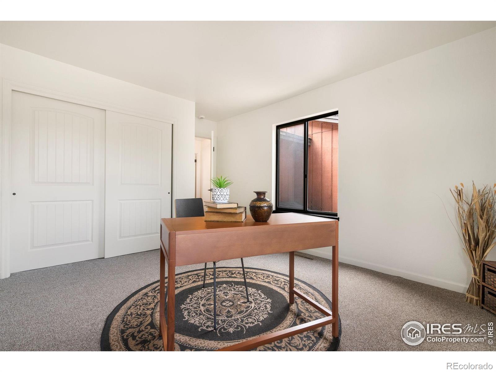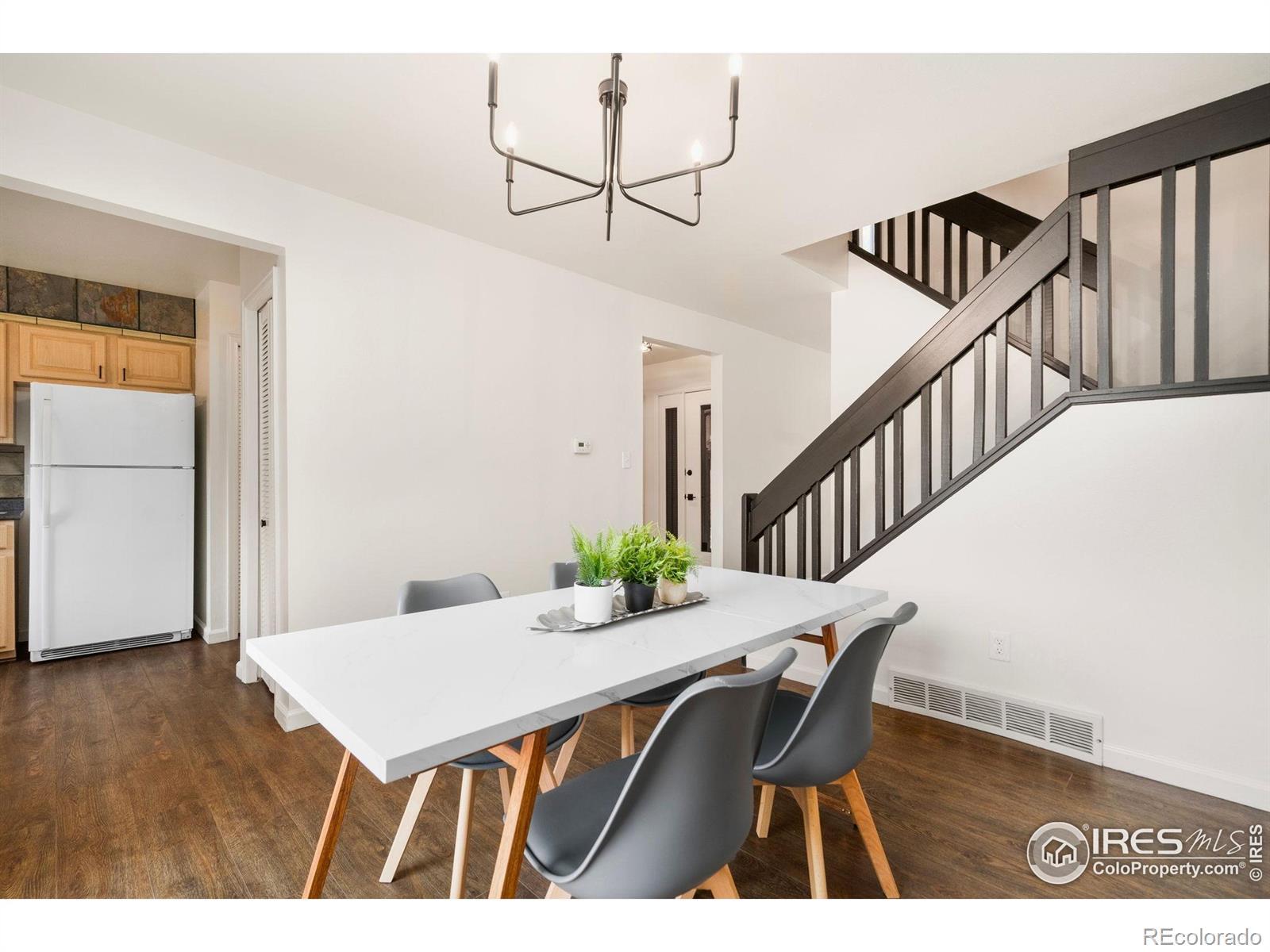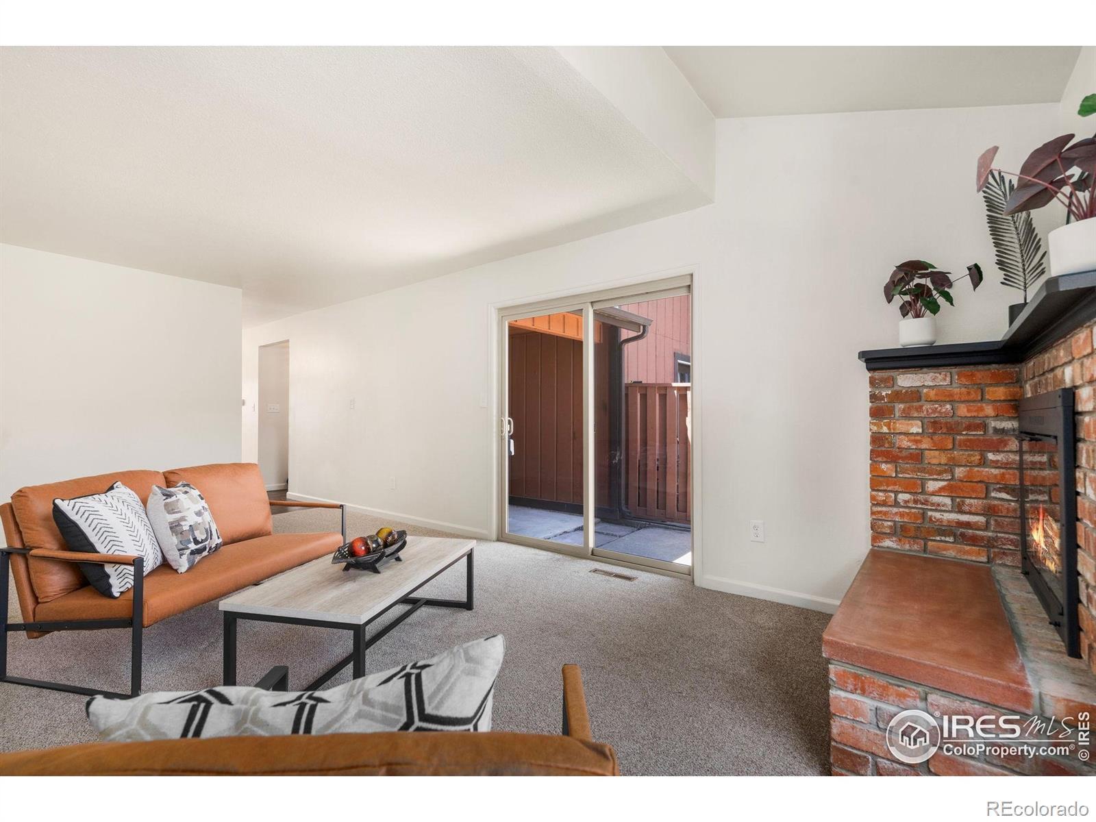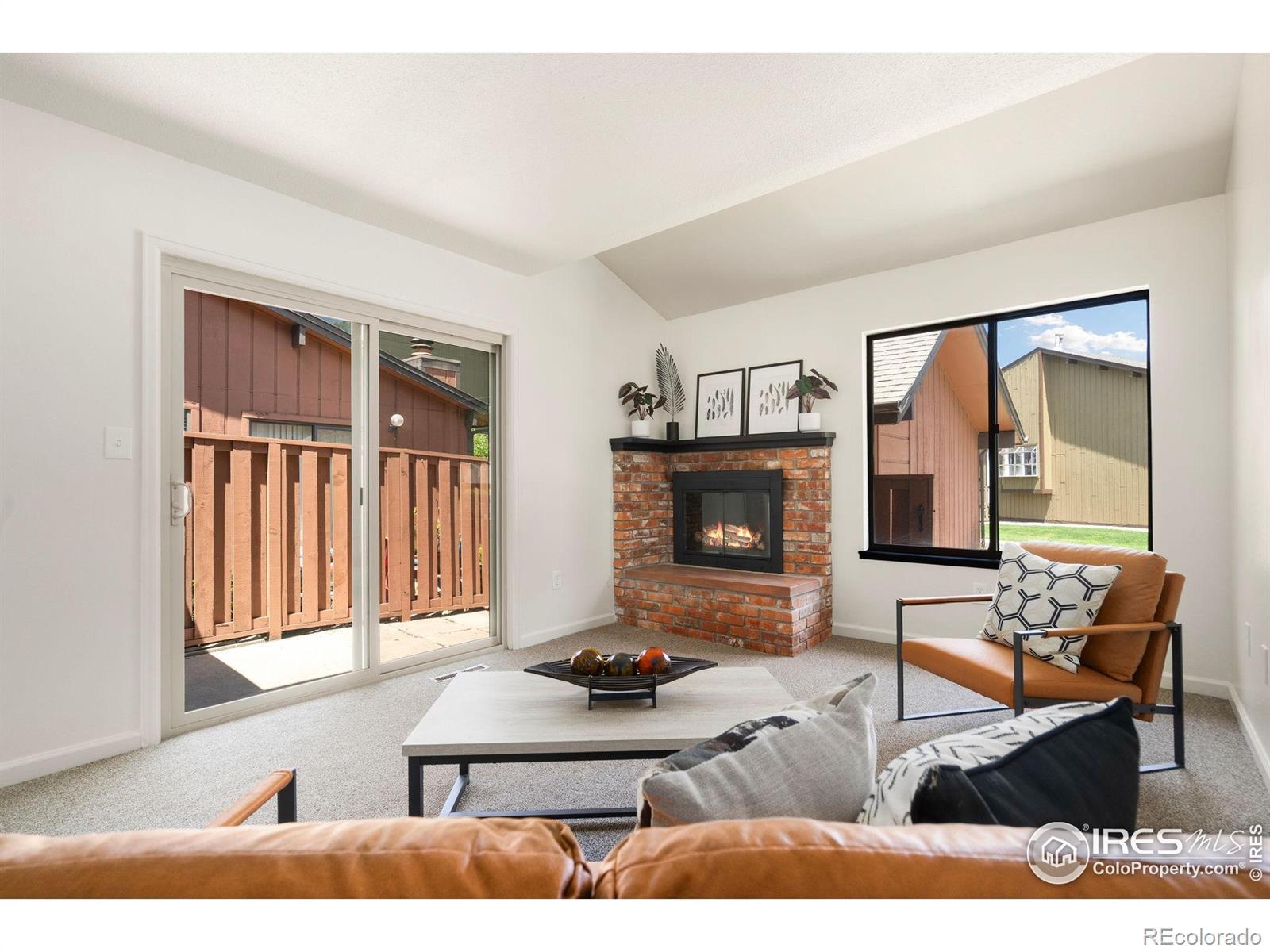 HOA Dues Paid For One Year! Located directly across from Rolland Moore Park and just moments from Spring scenic Creek Trail (great for commuting), this townhome offers the perfect blend of nature and convenience. You'll love being less than 3 miles from Old Town and even closer to CSU, the CSU Veterinary Teaching Hospital, and everything Fort Collins has to offer. Enjoy NEW carpet, newly tiled shower/tub, a welcoming main floor featuring a cozy wood-burning fireplace, a convenient half bath-ideal for entertaining-and a functional living space that opens to two private patios. Upstairs, you'll find two spacious bedrooms, the primary with a large walk-in closet, and an updated bathroom complete with a modern, . Additional features include a 1-car garage, under stair storage, coat closet, and low-maintenance living in a highly sought-after area. This is an ideal home for professionals, students, or anyone looking to enjoy the best of Fort Collins!