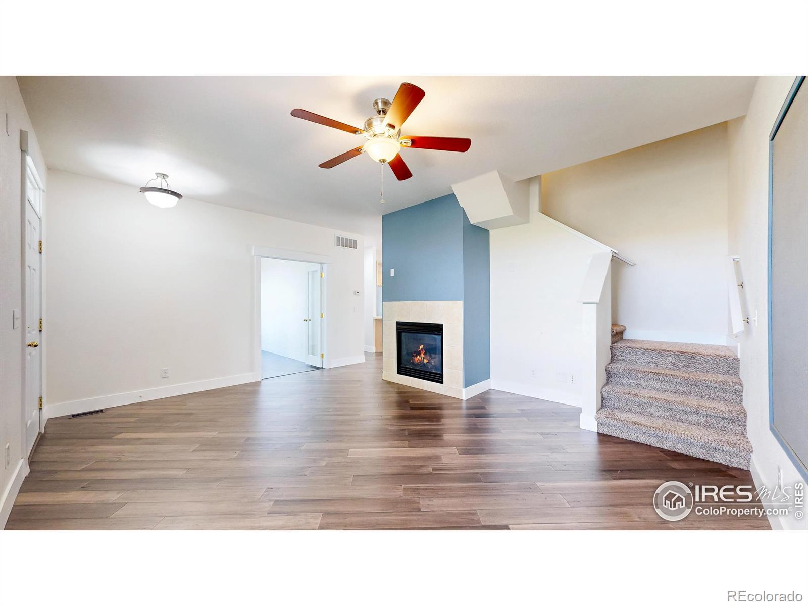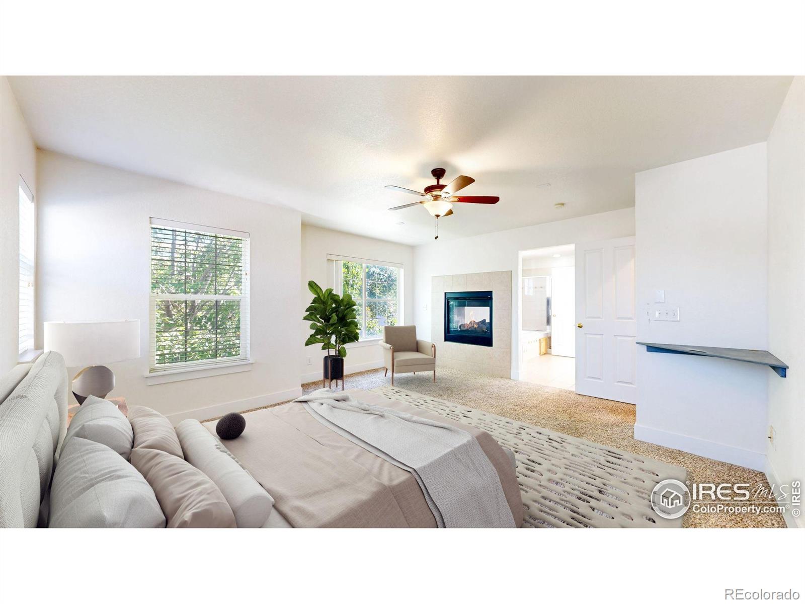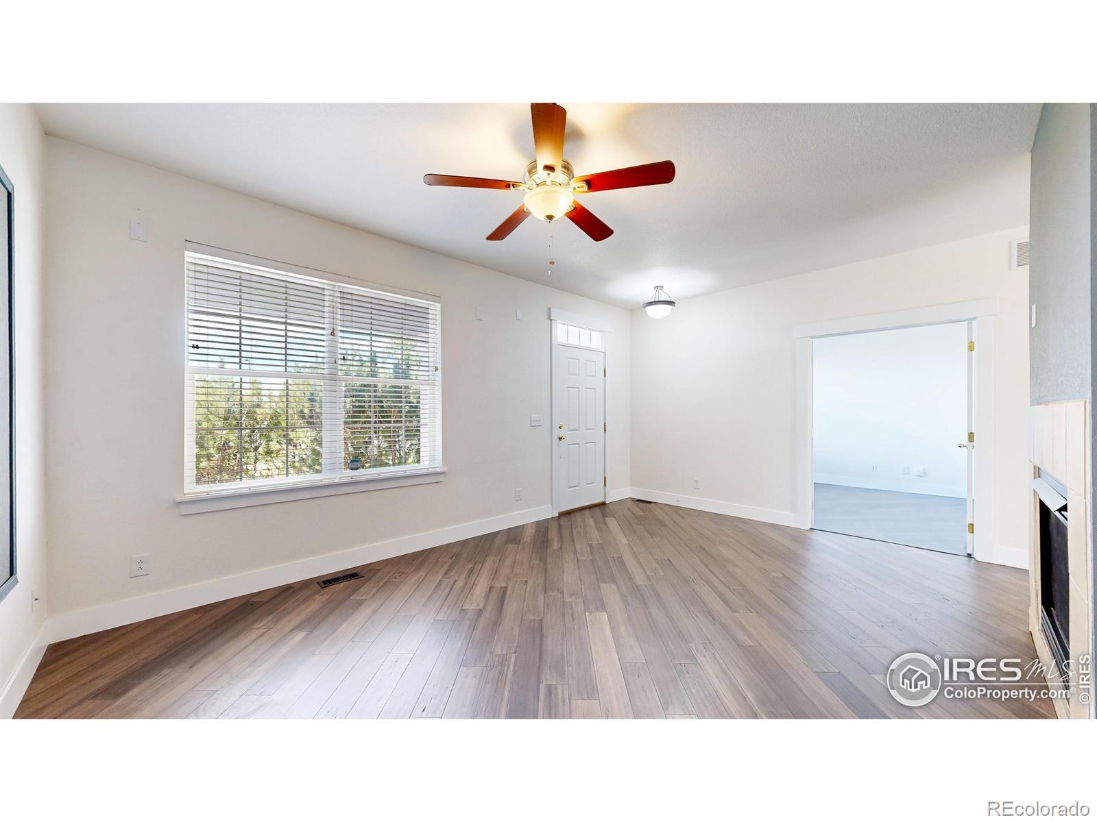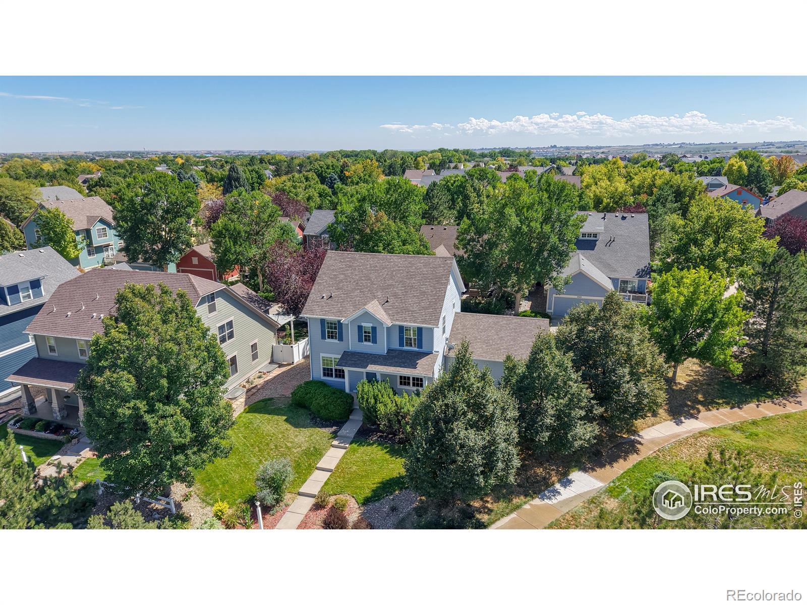 Motivated Seller will consider all offers! Very cool floor plan! Views of the mountains and Boyd Lake. This spacious home features 5 bedroom, 4 bathrooms plus an office. Engineered bamboo flooring, laid at a diagonal, on the main floor. There is a wonderful bonus space on the 3rd floor that would be perfect for a yoga studio, gym, office, or playroom. The main floor office has engineered Bamboo floors, French doors, and views of Boyd Lake and the mountains. Dining room off of kitchen has a sliding glass door leading to the back deck, great for dining al fresco! Gas fireplace in living room. Large primary bedroom features a double-sided fireplace going into the 5-piece bathroom with jetted bathtub. High Plains K-8 school is a 4 minute walk away. You'll find 2 bedrooms, a full bathroom, and a family room in the permitted basement. Back yard can be fenced. Fronts to walking trail and open space, with nothing impeding the great views. Dog Park nearby. No Metro Tax!