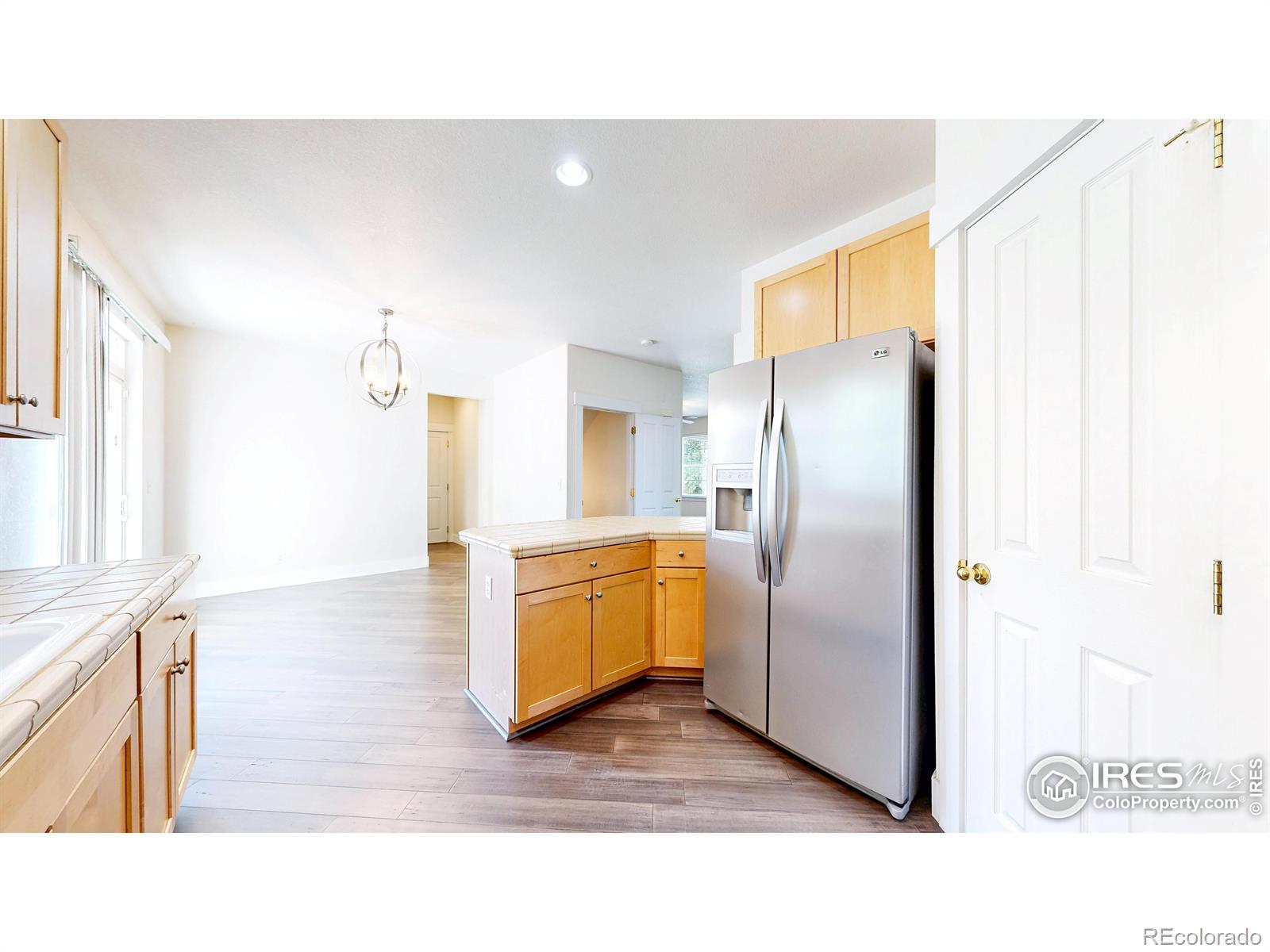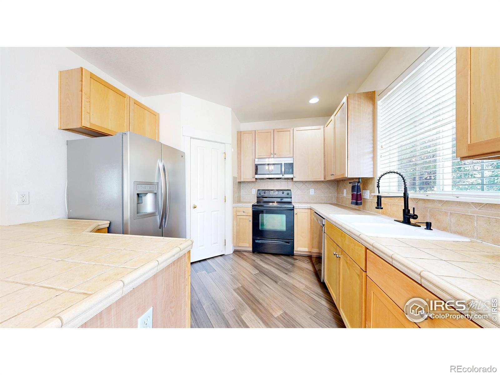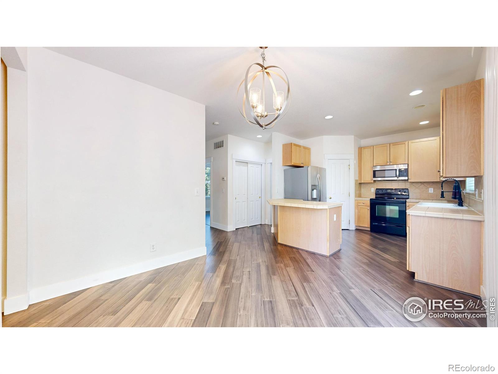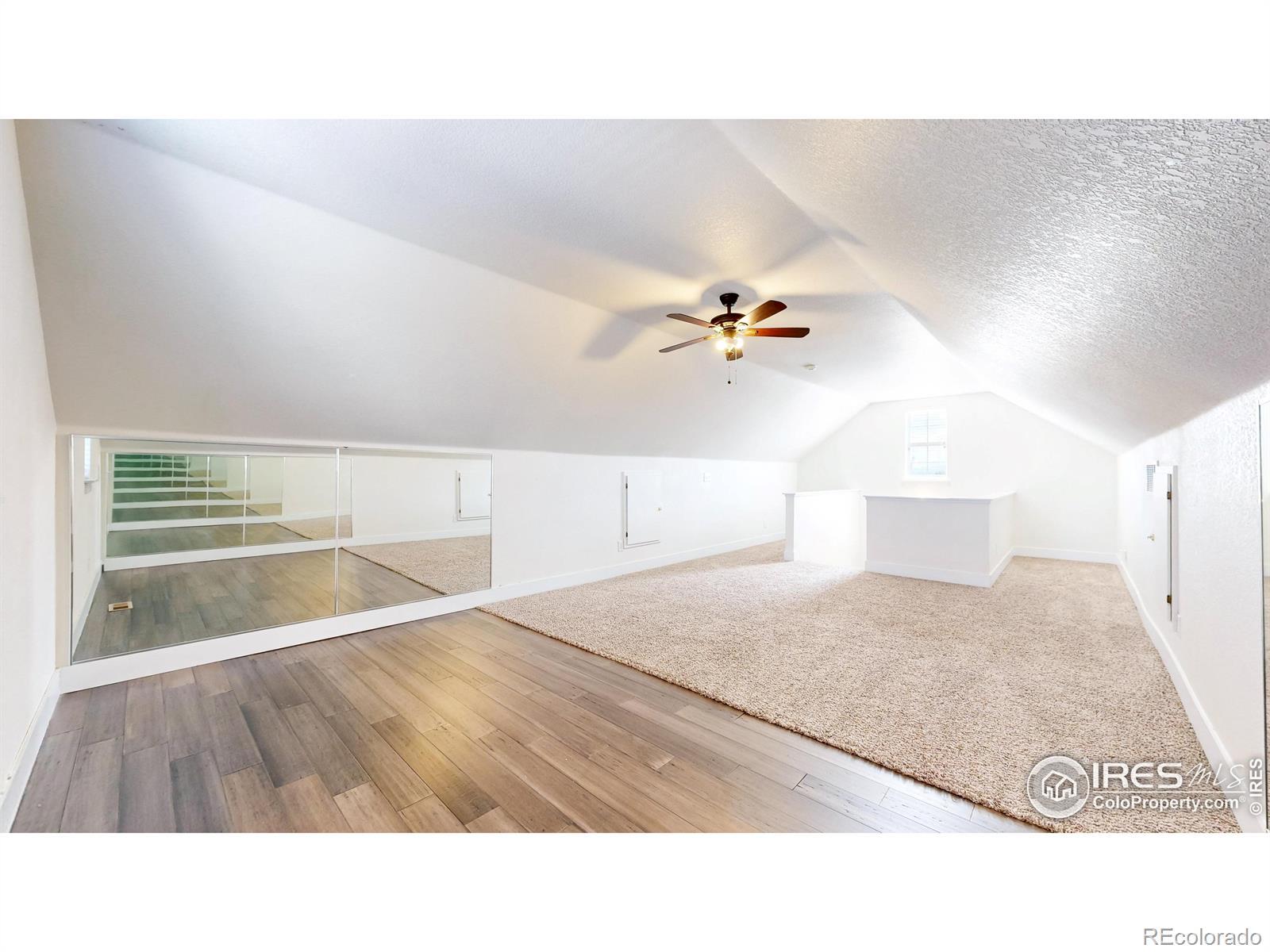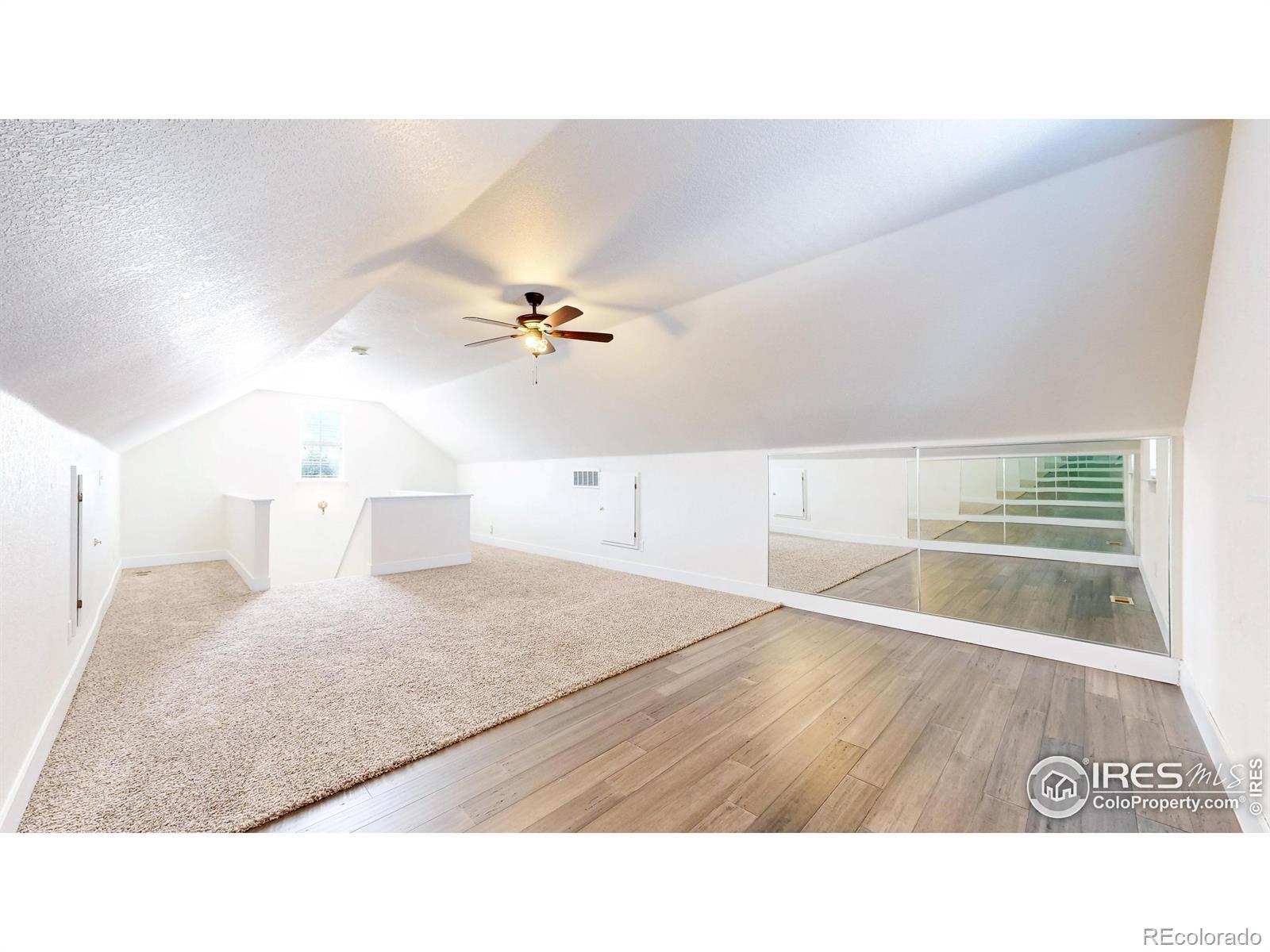 Motivated Seller will consider all offers! Very cool floor plan! Views of the mountains and Boyd Lake. This spacious home features 5 bedroom, 4 bathrooms plus an office. Engineered bamboo flooring, laid at a diagonal, on the main floor. There is a wonderful bonus space on the 3rd floor that would be perfect for a yoga studio, gym, office, or playroom. The main floor office has engineered Bamboo floors, French doors, and views of Boyd Lake and the mountains. Dining room off of kitchen has a sliding glass door leading to the back deck, great for dining al fresco! Gas fireplace in living room. Large primary bedroom features a double-sided fireplace going into the 5-piece bathroom with jetted bathtub. High Plains K-8 school is a 4 minute walk away. You'll find 2 bedrooms, a full bathroom, and a family room in the permitted basement. Back yard can be fenced. Fronts to walking trail and open space, with nothing impeding the great views. Dog Park nearby. No Metro Tax!